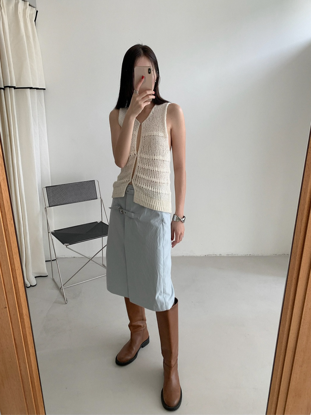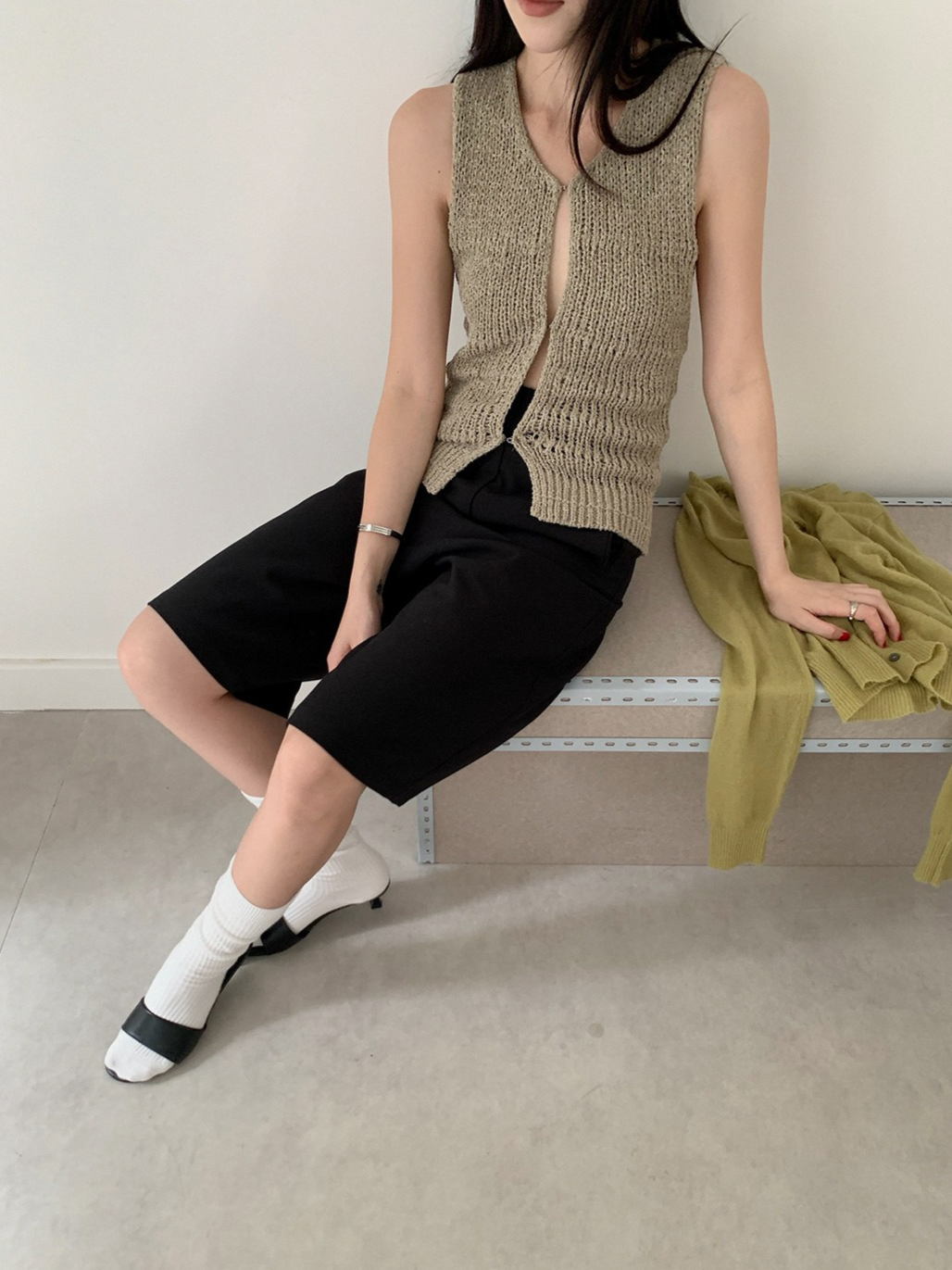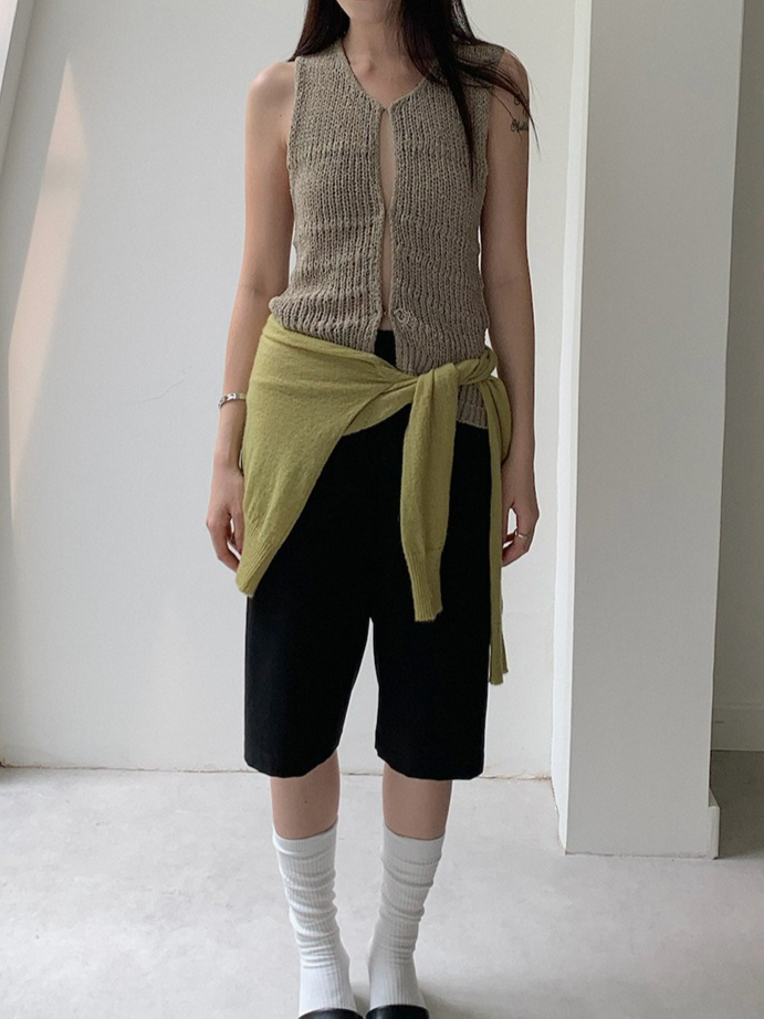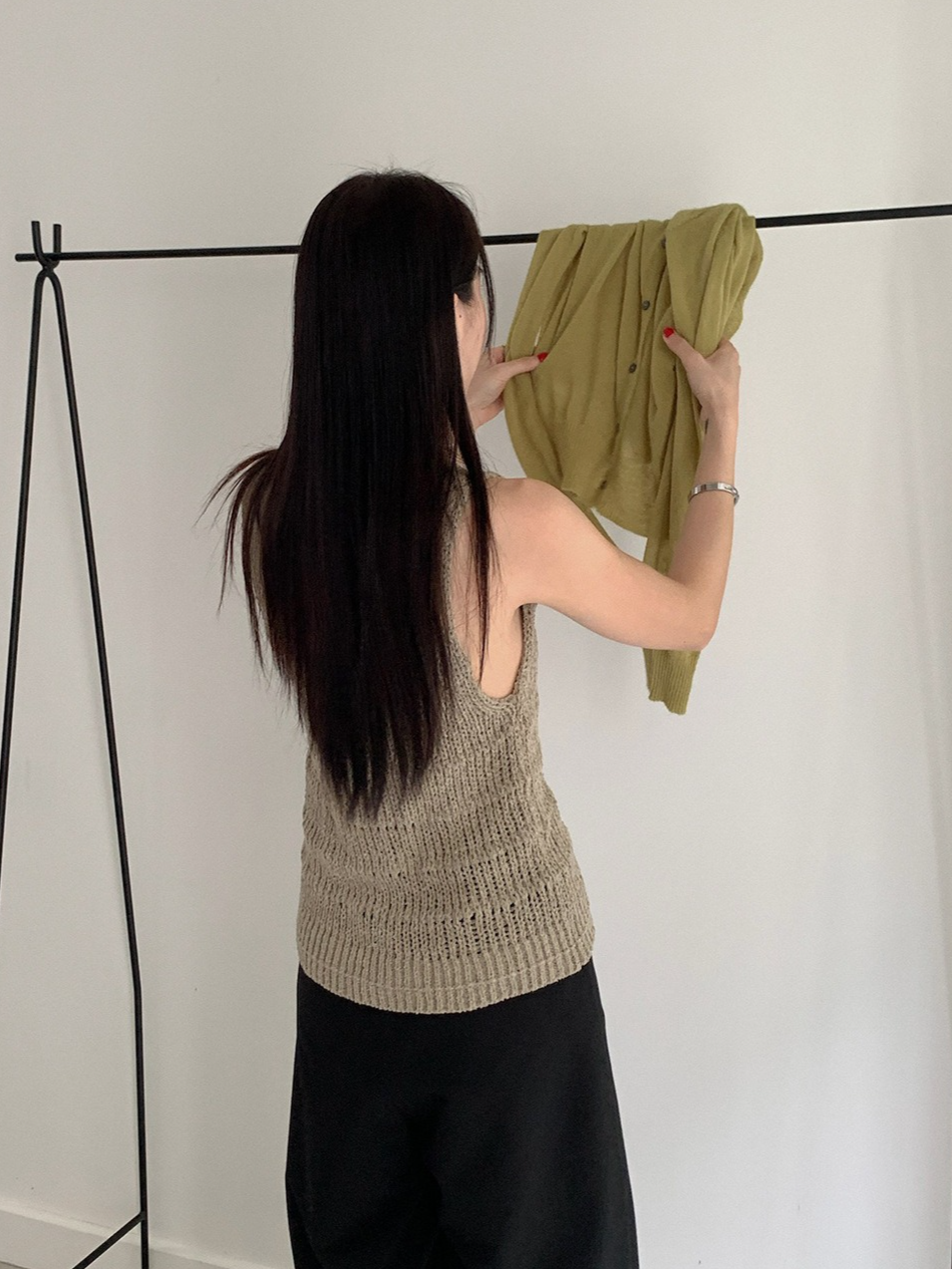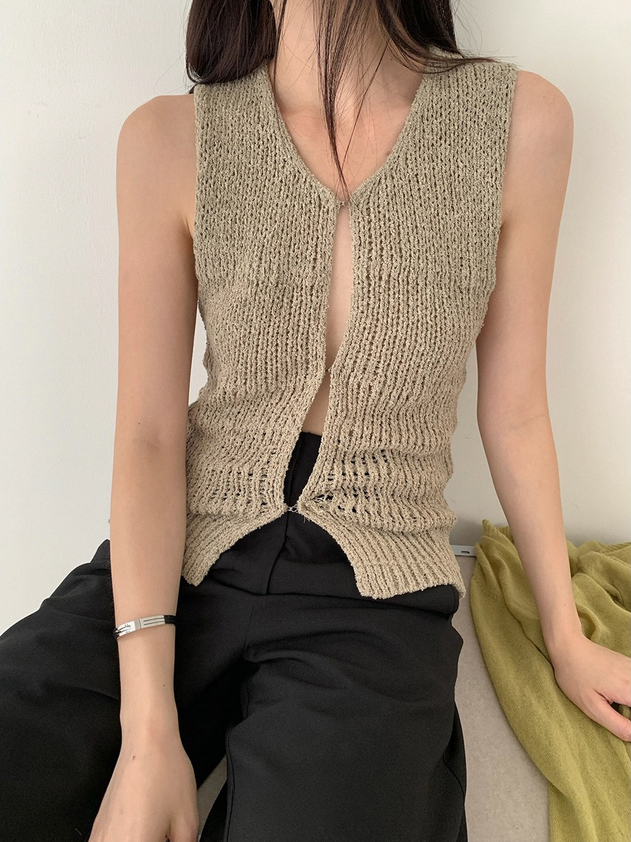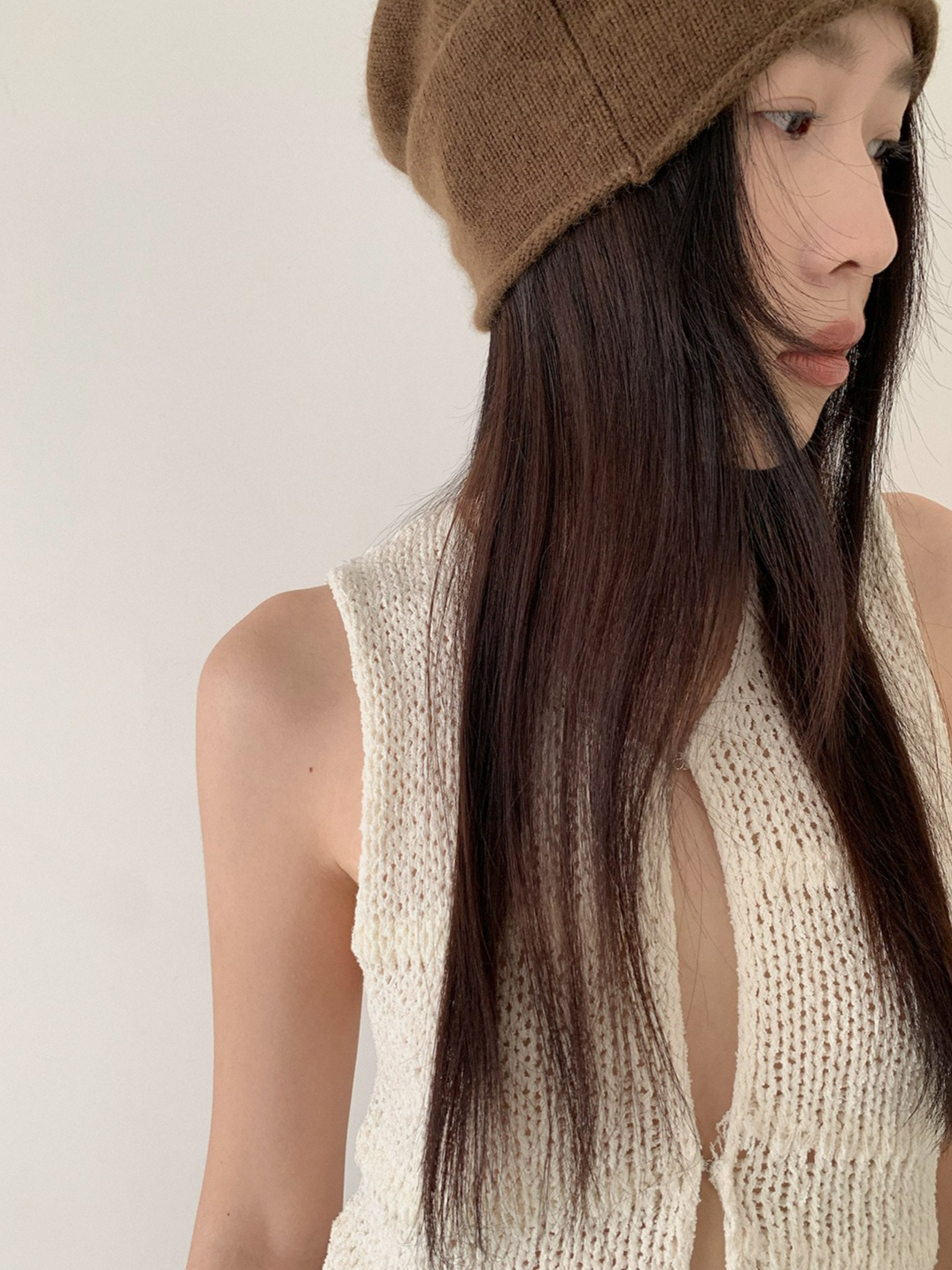 立体的な編み地と程よい透け感のある、表情豊かなミックスメッシュニットベスト。