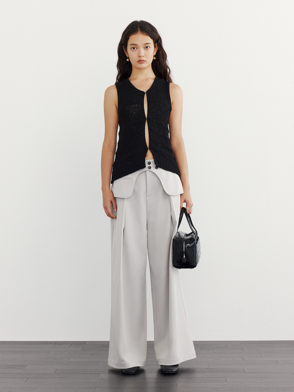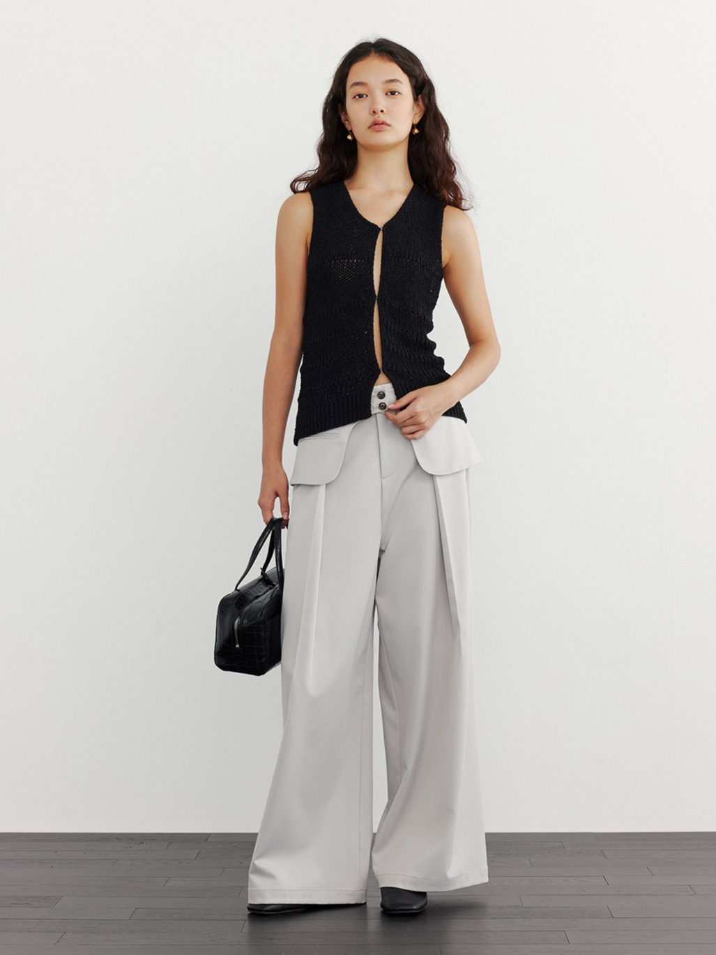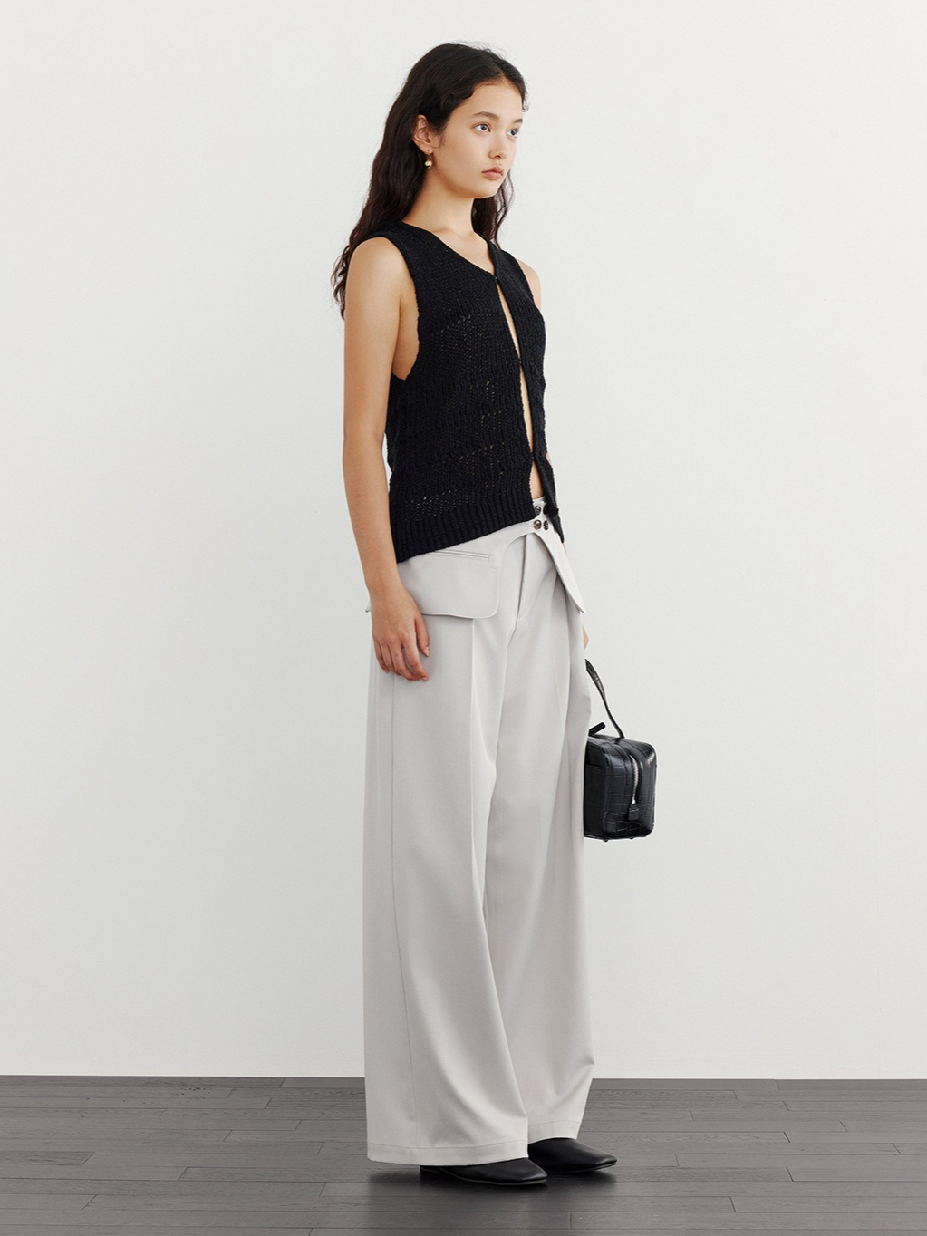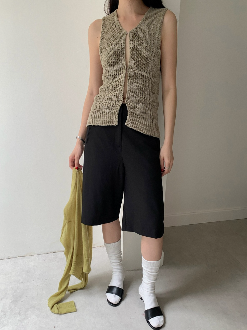 立体的な編み地と程よい透け感のある、表情豊かなミックスメッシュニットベスト。