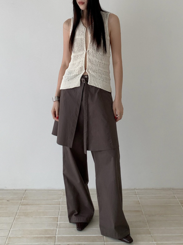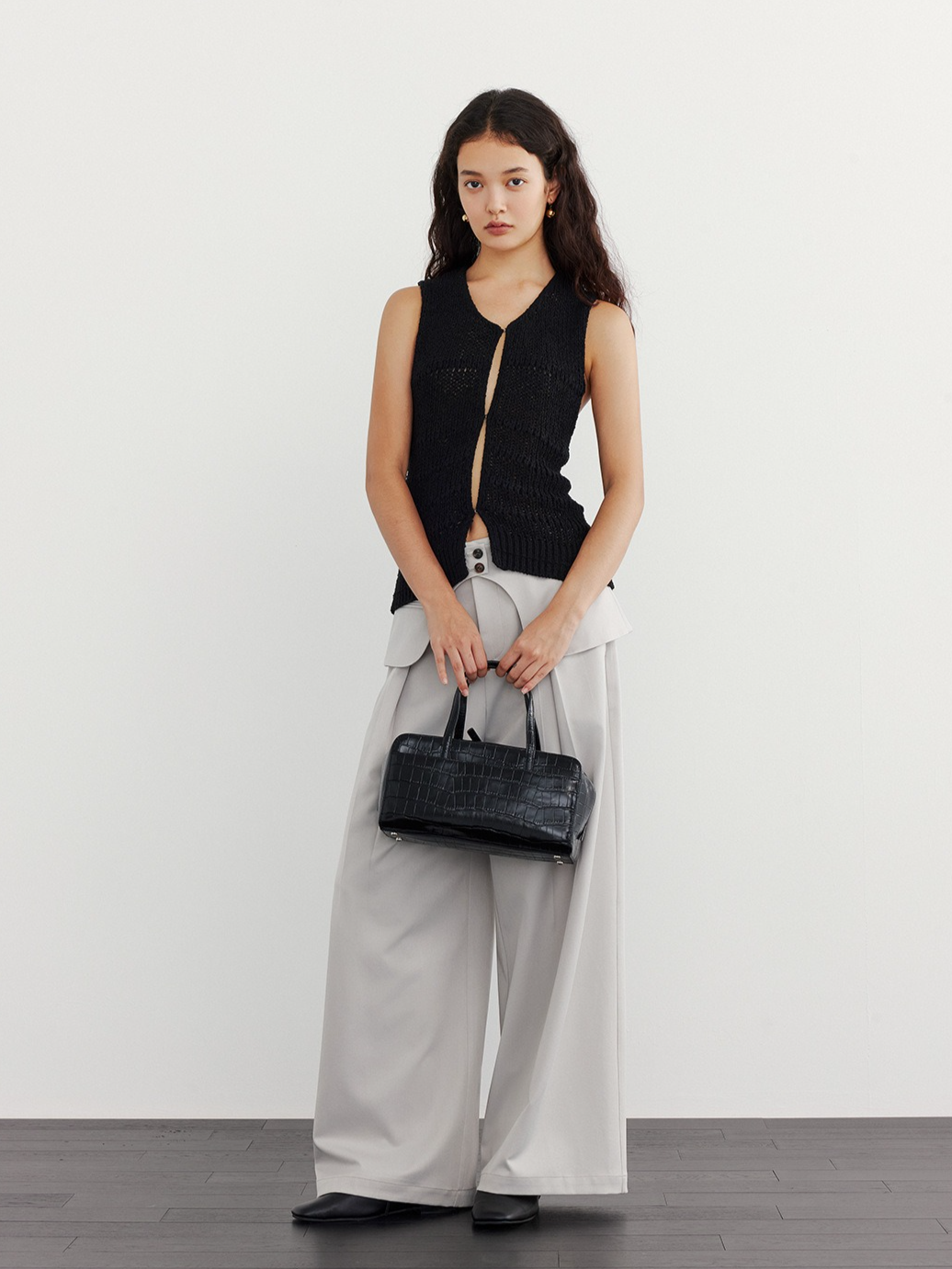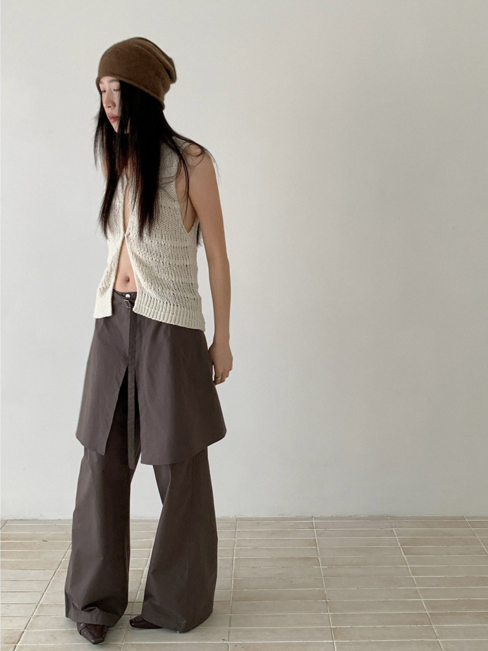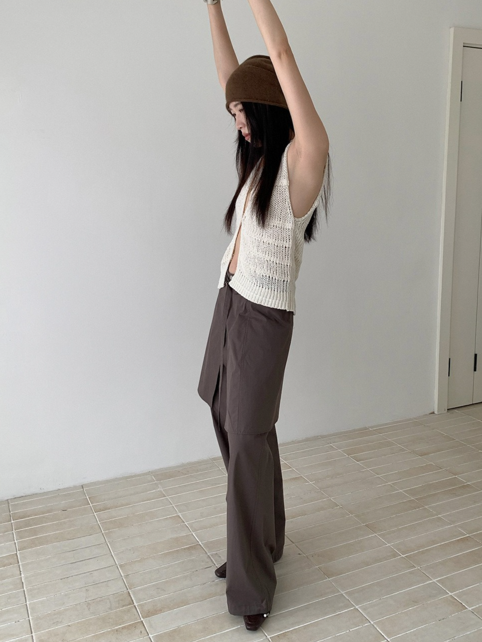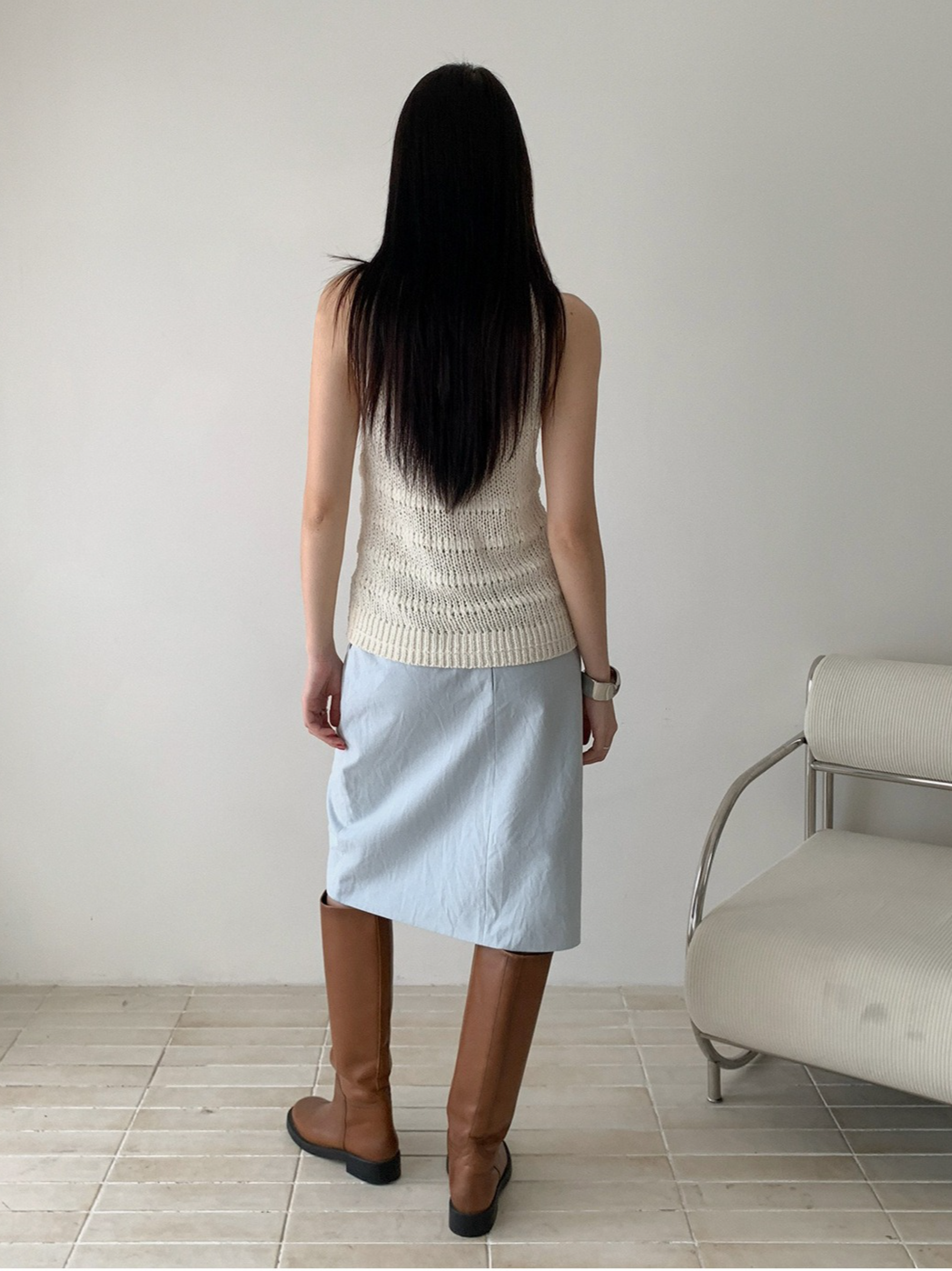 立体的な編み地と程よい透け感のある、表情豊かなミックスメッシュニットベスト。