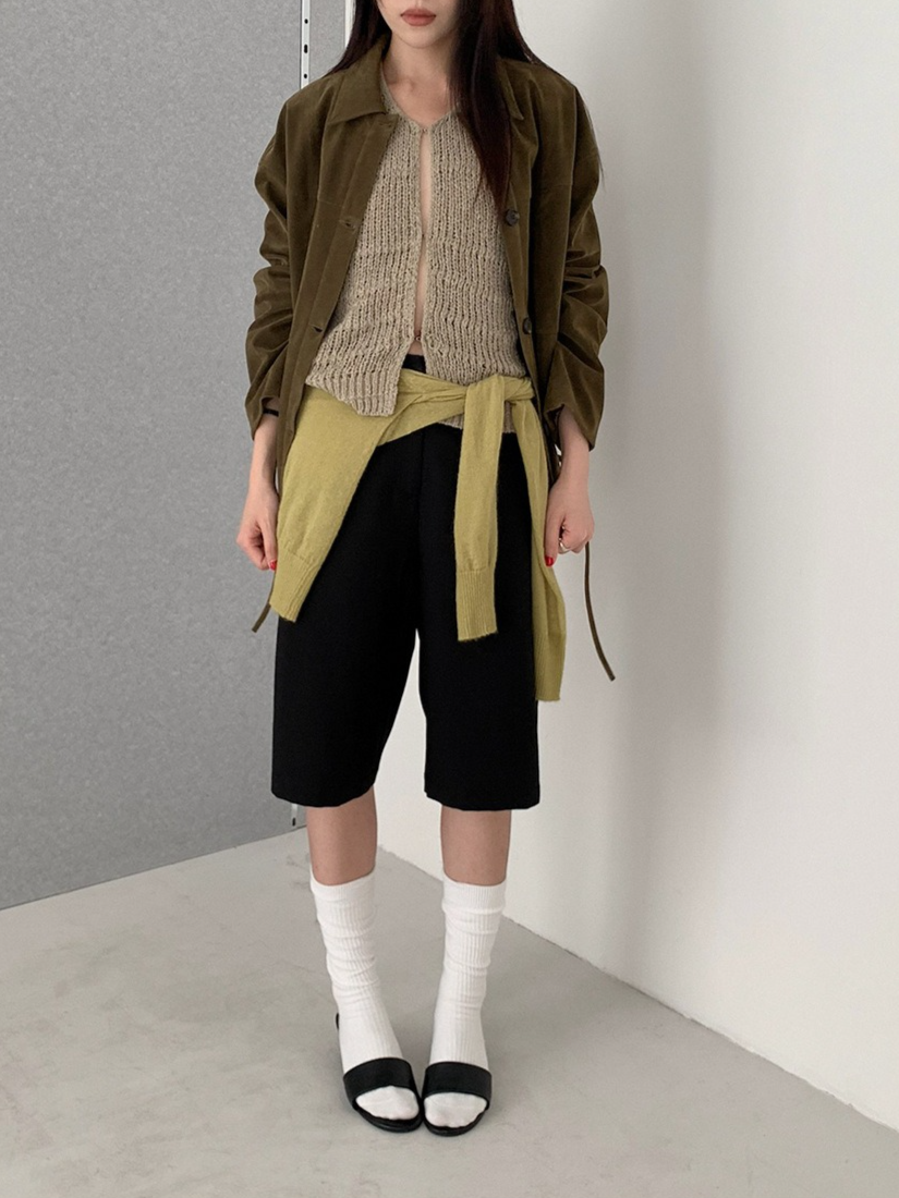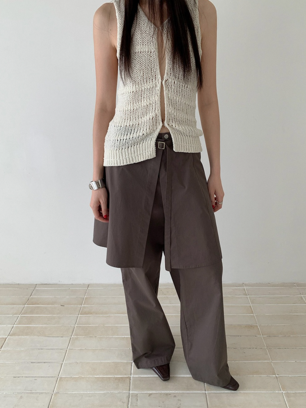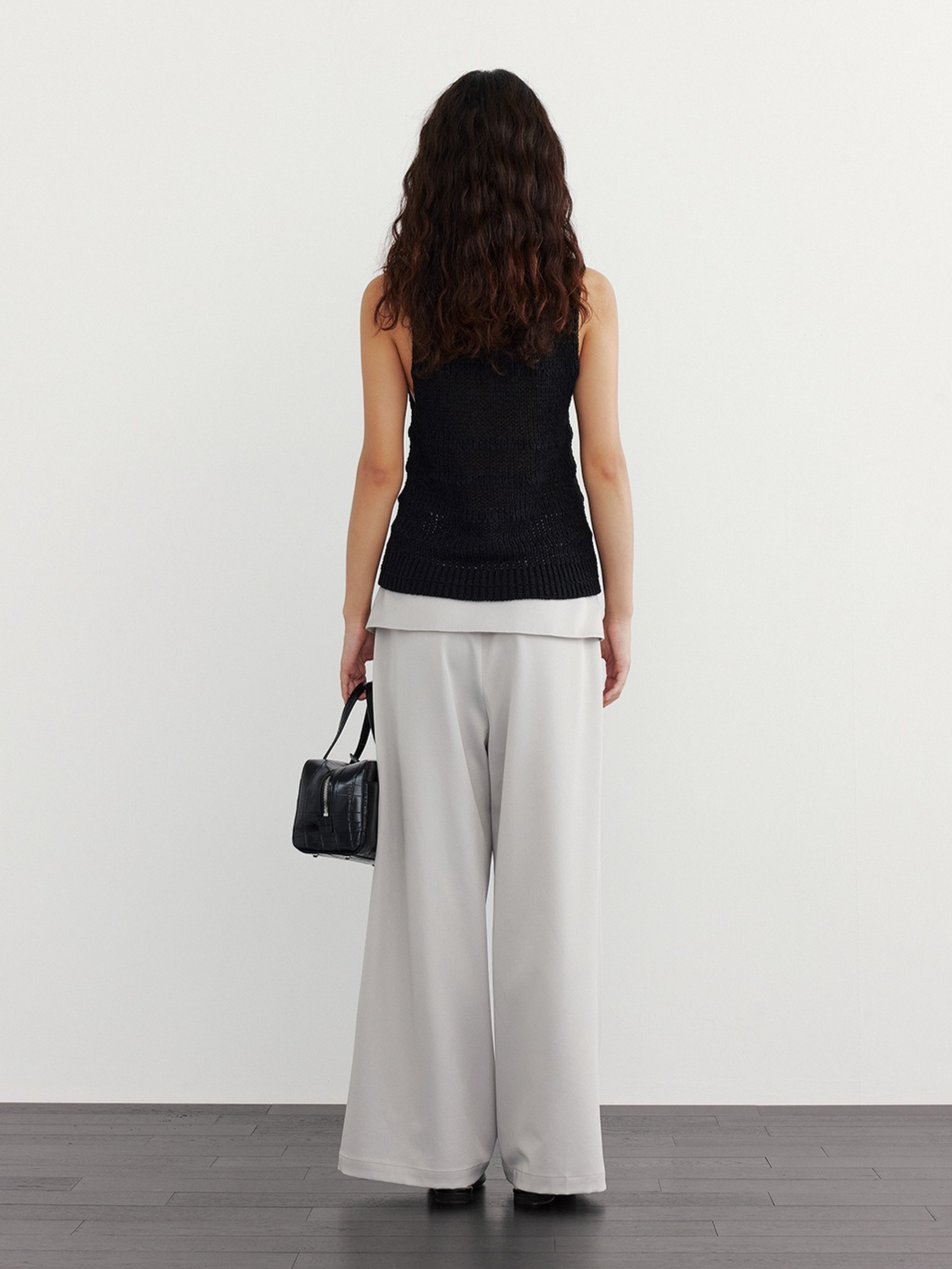 素肌をほんのり透かす編地が、レイヤードスタイルを引き立てます。