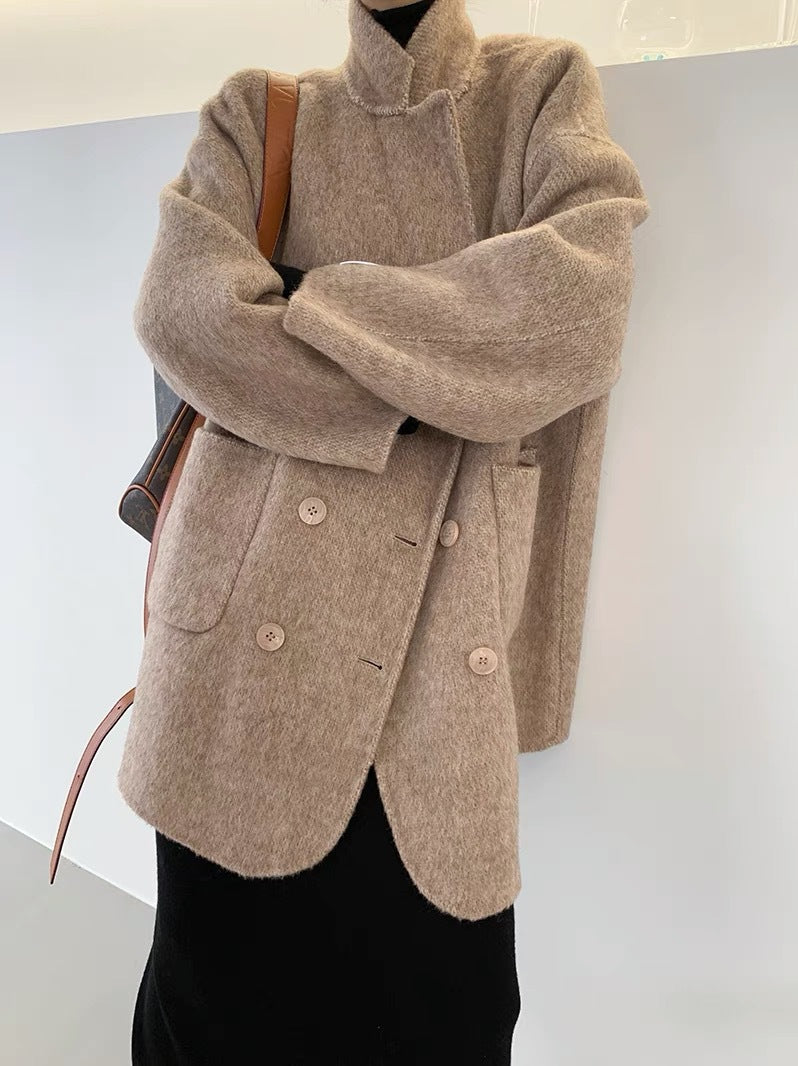 柔らかな風合いと、滑らかさが魅力のダブルブレストウールブレンドコート。