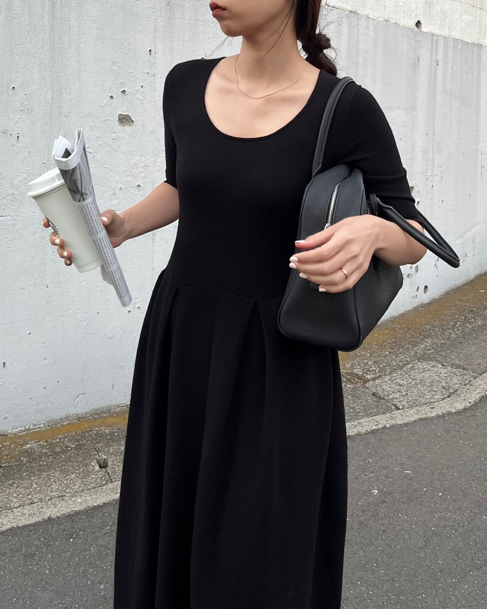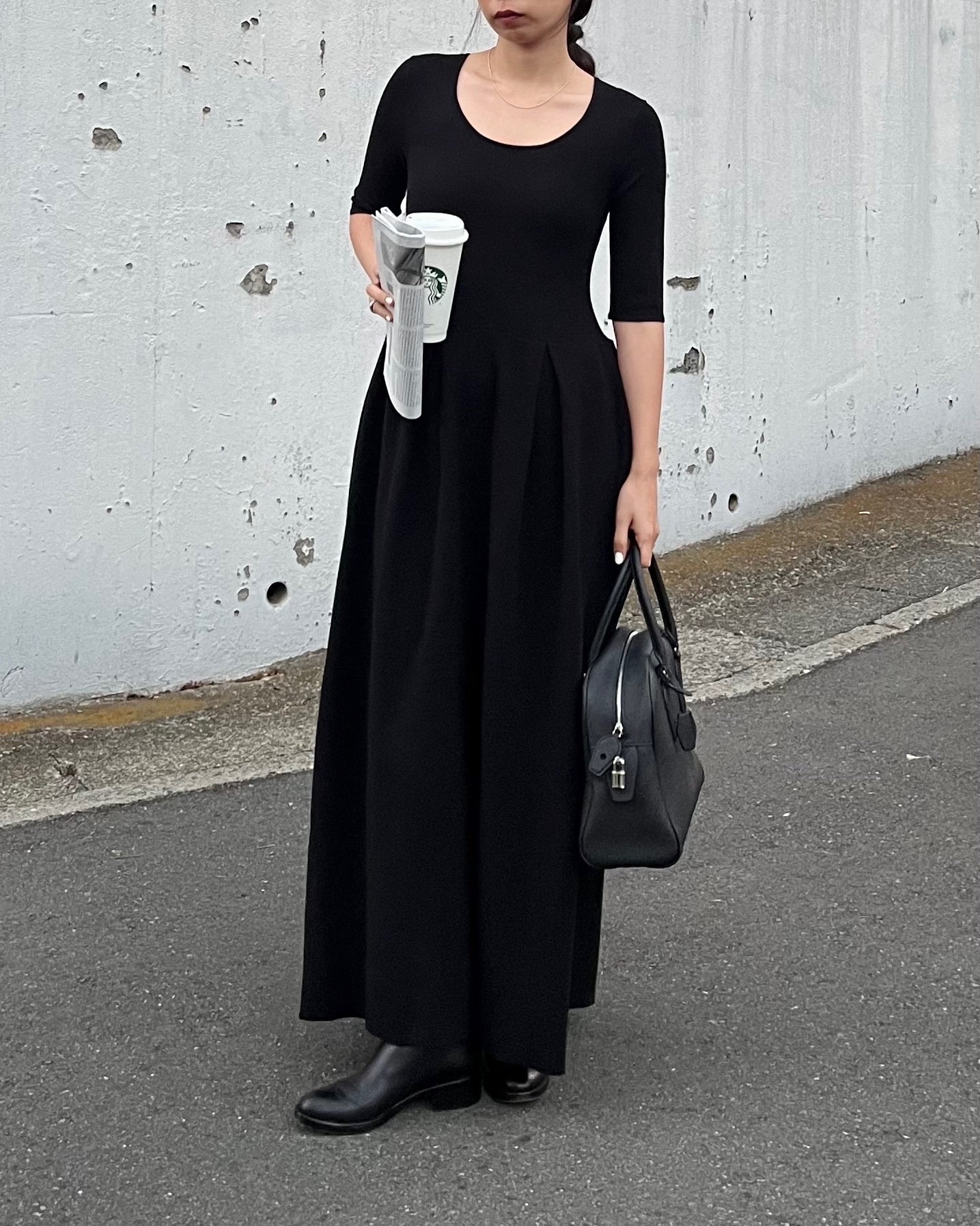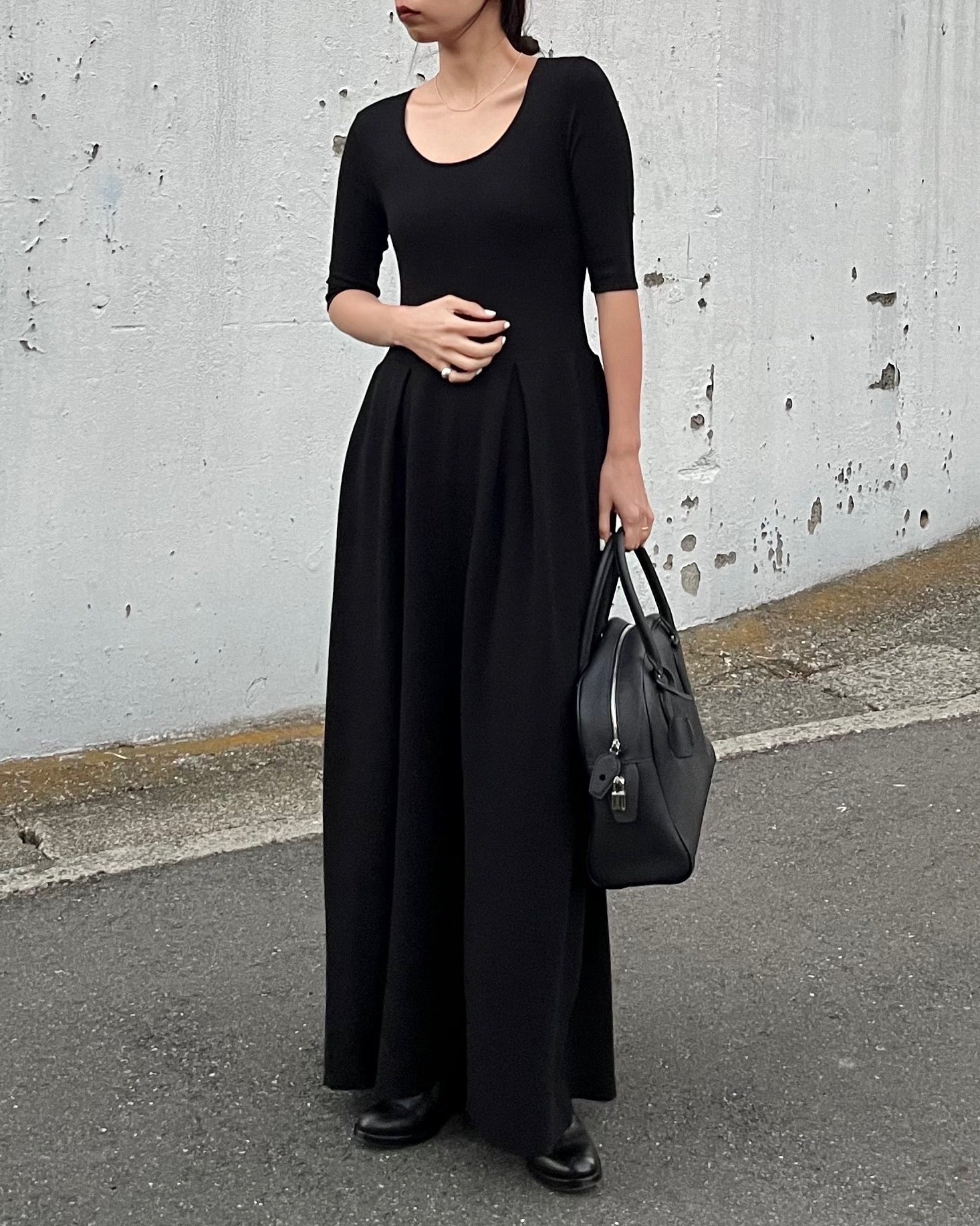 伸縮性のある素材で、ボディーラインを綺麗に見せてくれます。