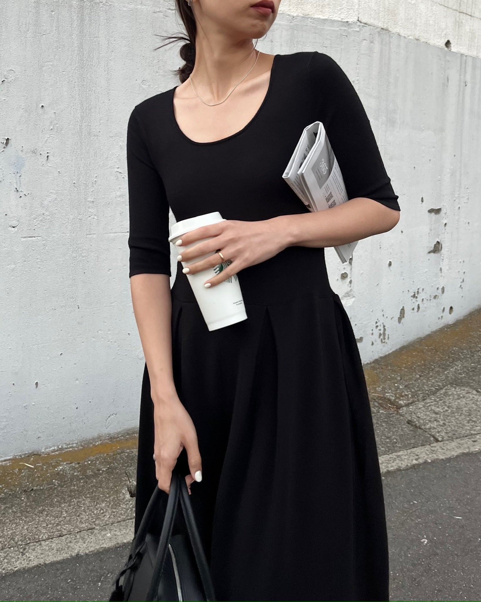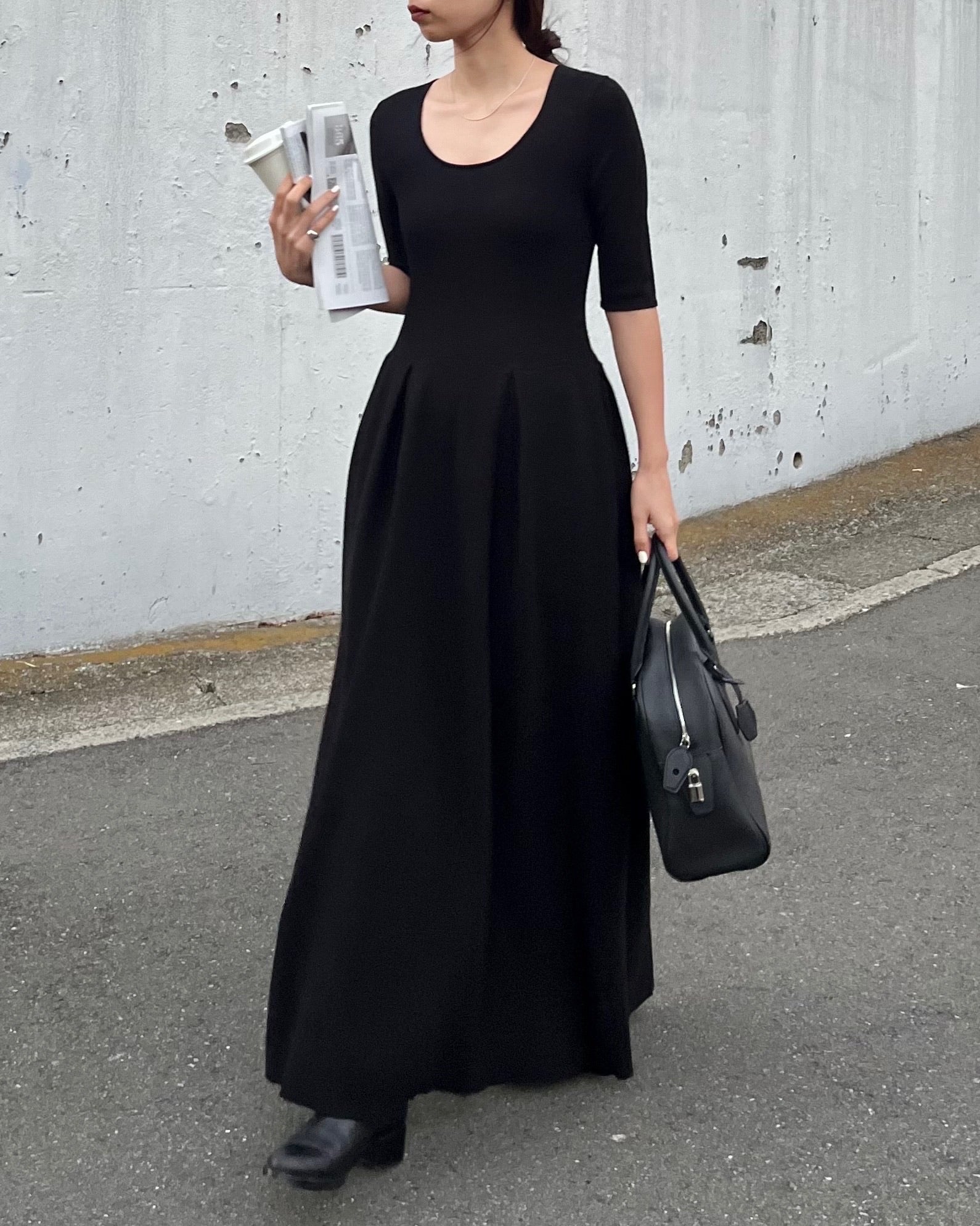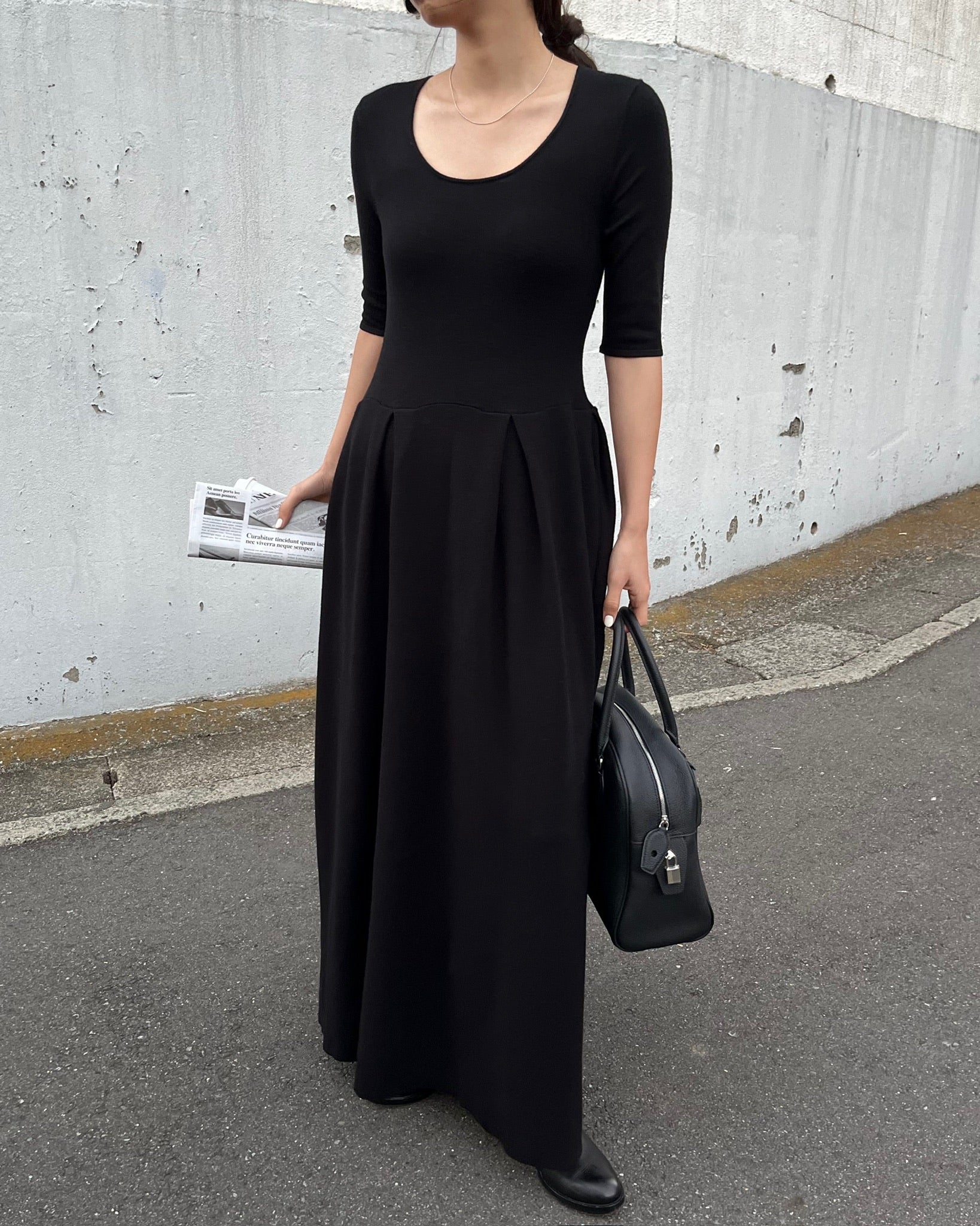 伸縮性のある素材で、ボディーラインを綺麗に見せてくれます。