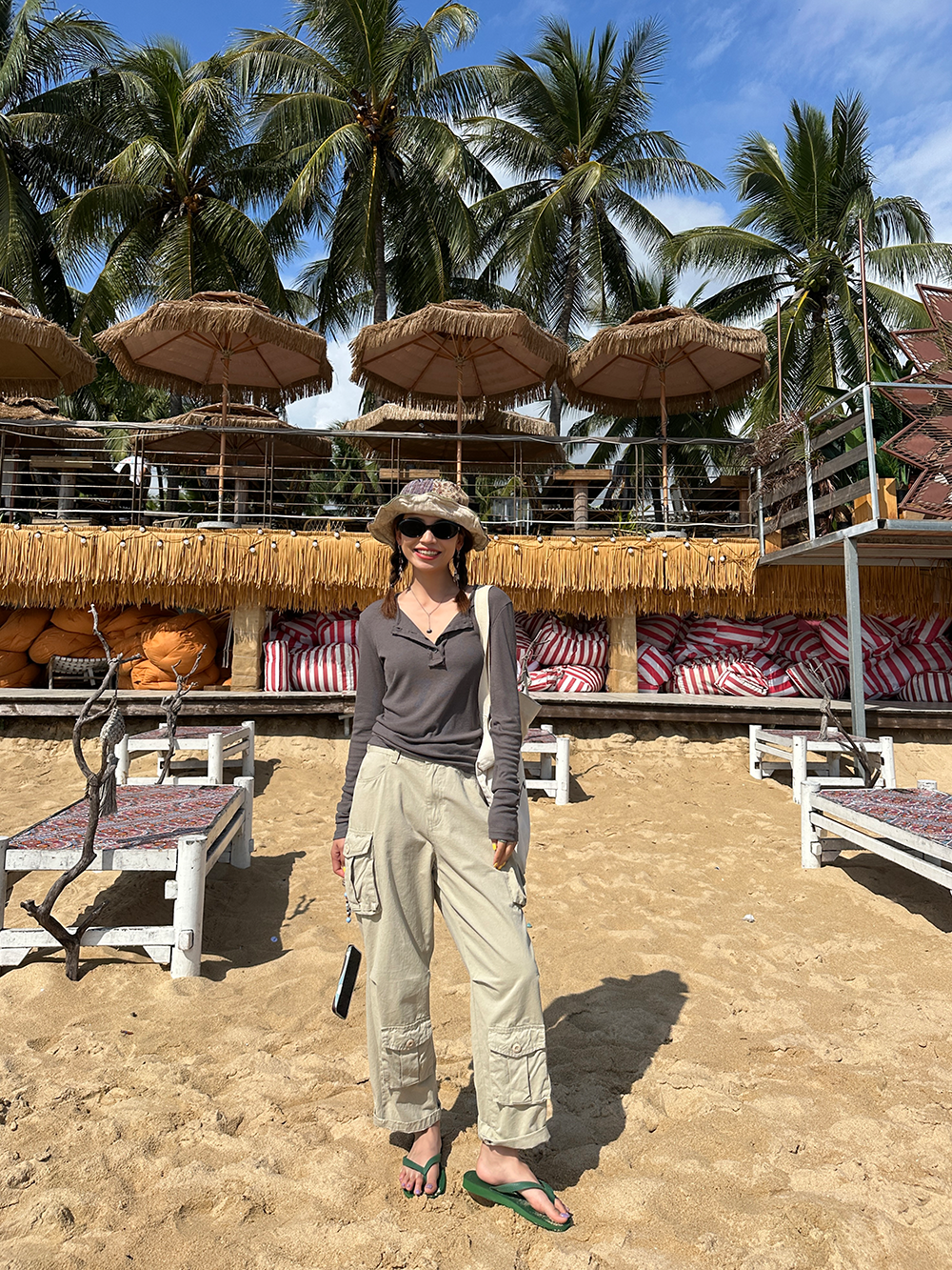 カジュアルに着こなせるヘンリーネックロングスリーブトップスです。