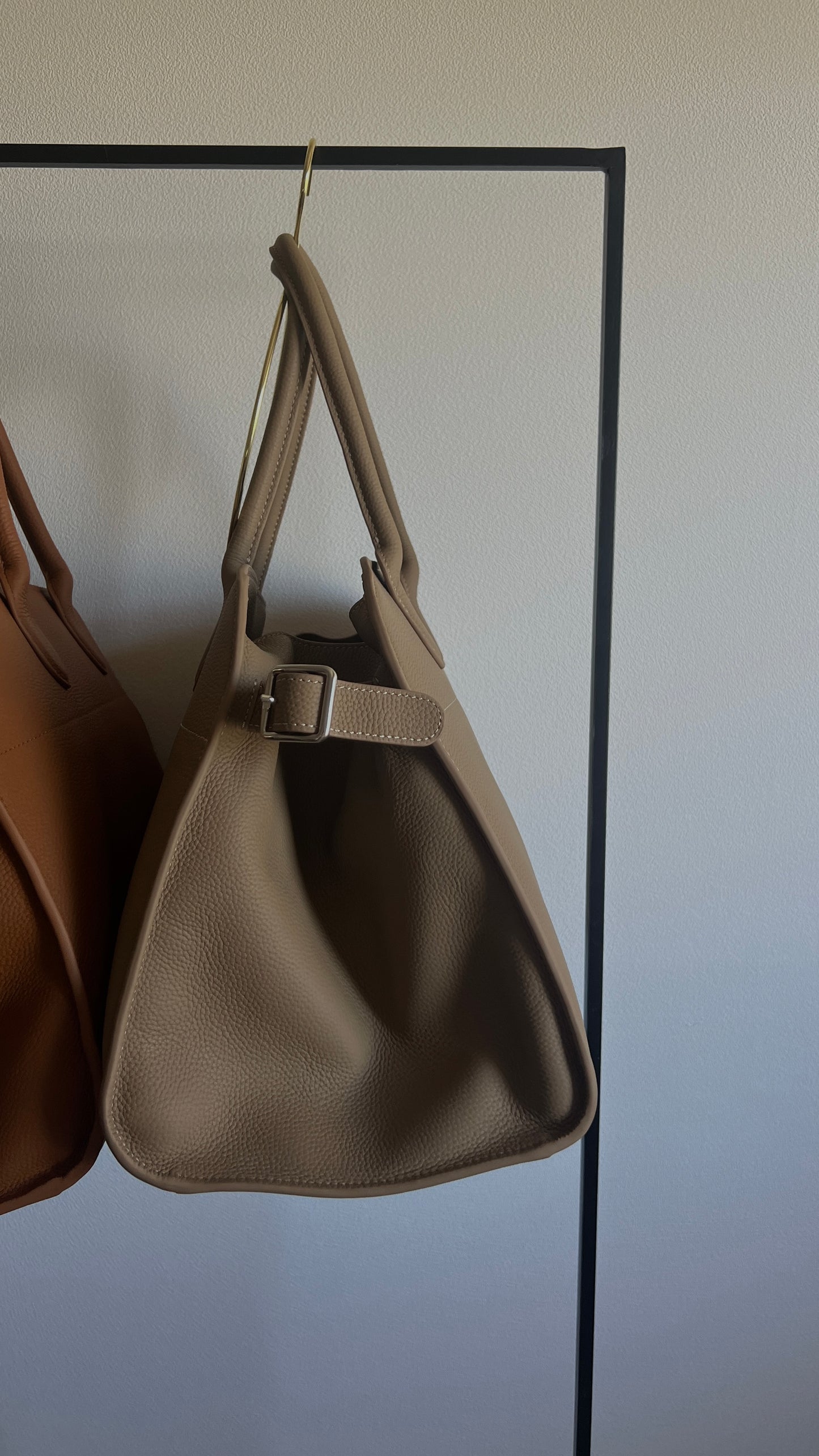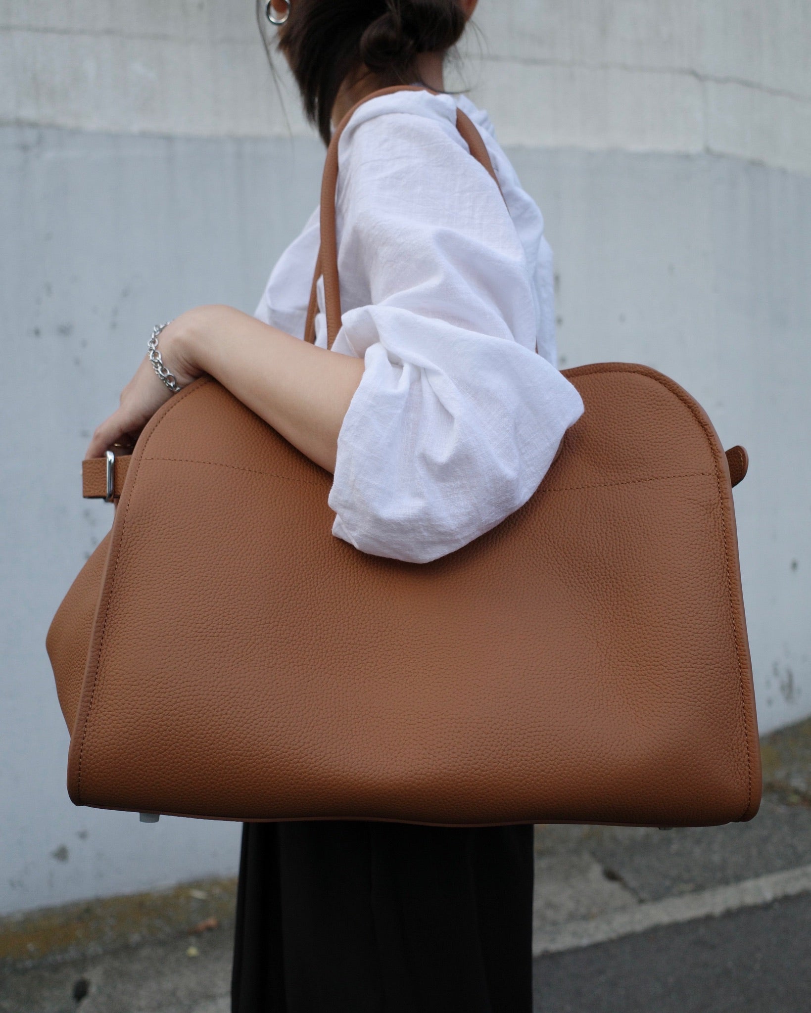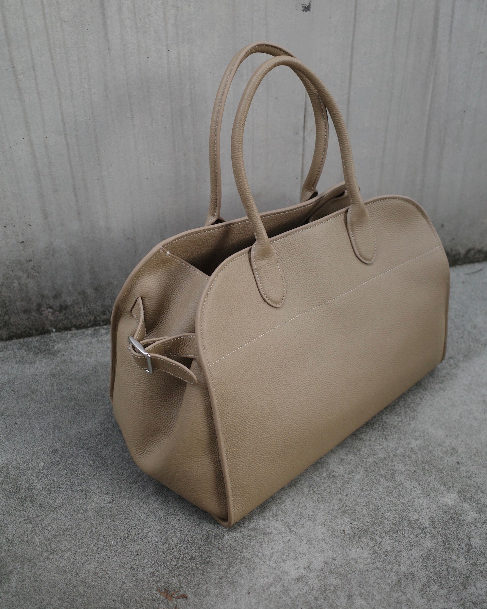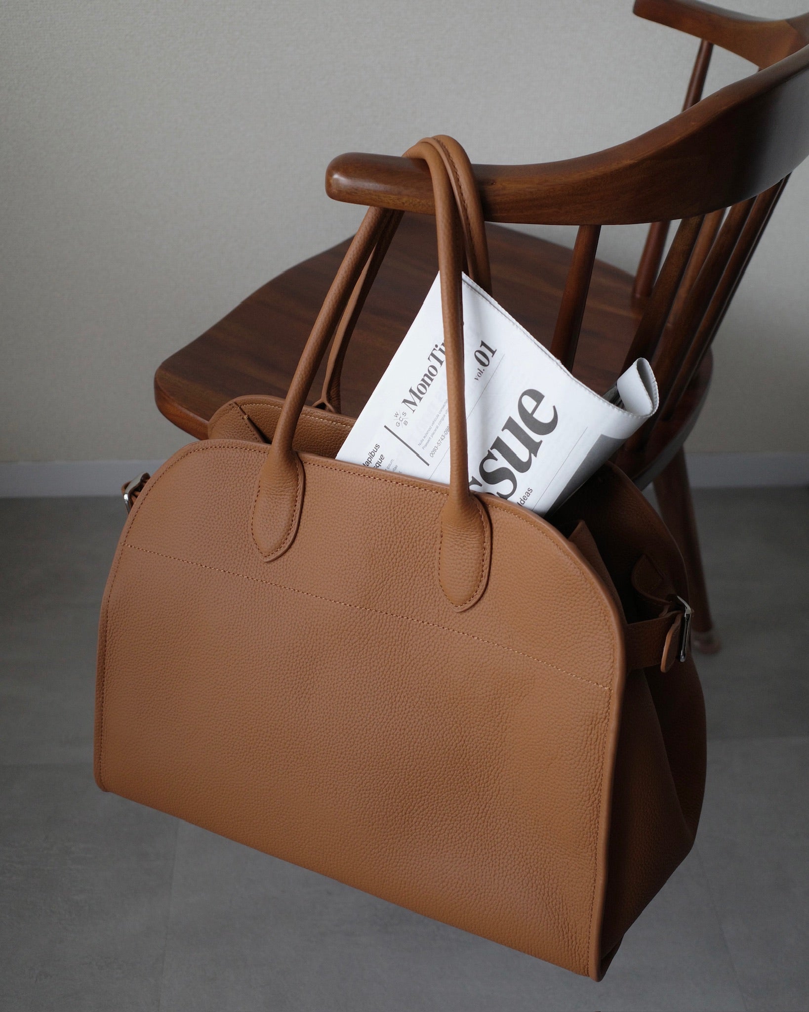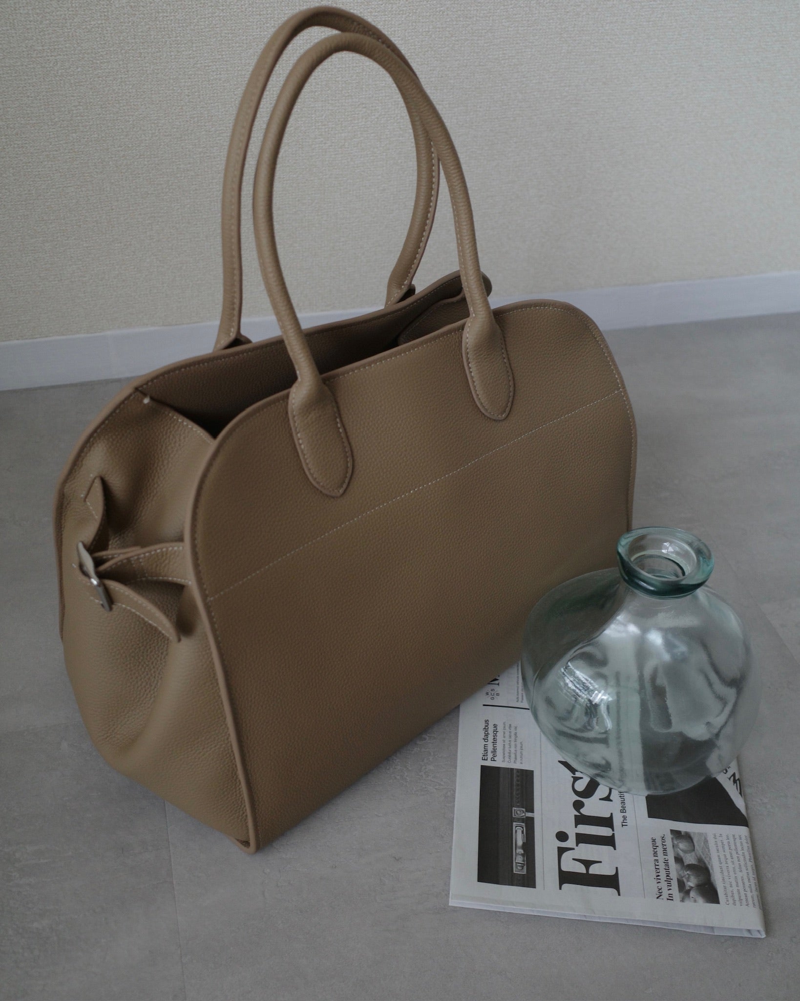 大容量に入る本革を使ったシンプルなデザインのベルトボストンバッグ