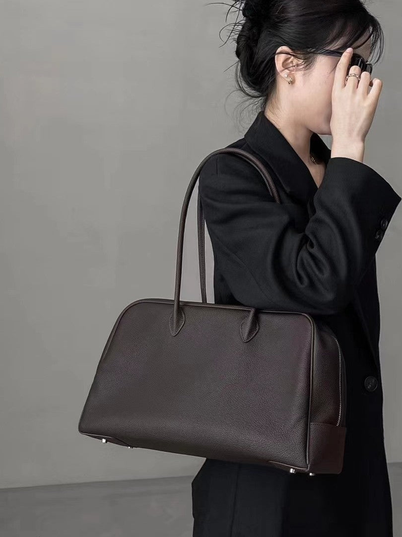 トレンドのボストンバッグは今季一つは持っておきたいアイテム。肌触りがよく使えば使うほど味の出るカウレザーを採用して高級感のあるBAGです。マチもしっかりあるので、デイリー使いから通勤にもおすすめ。今年らしくチャームをつけても◎