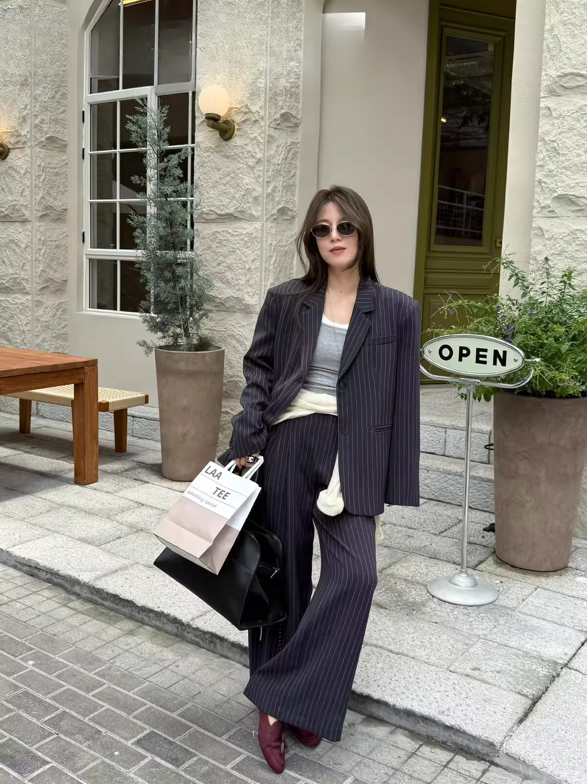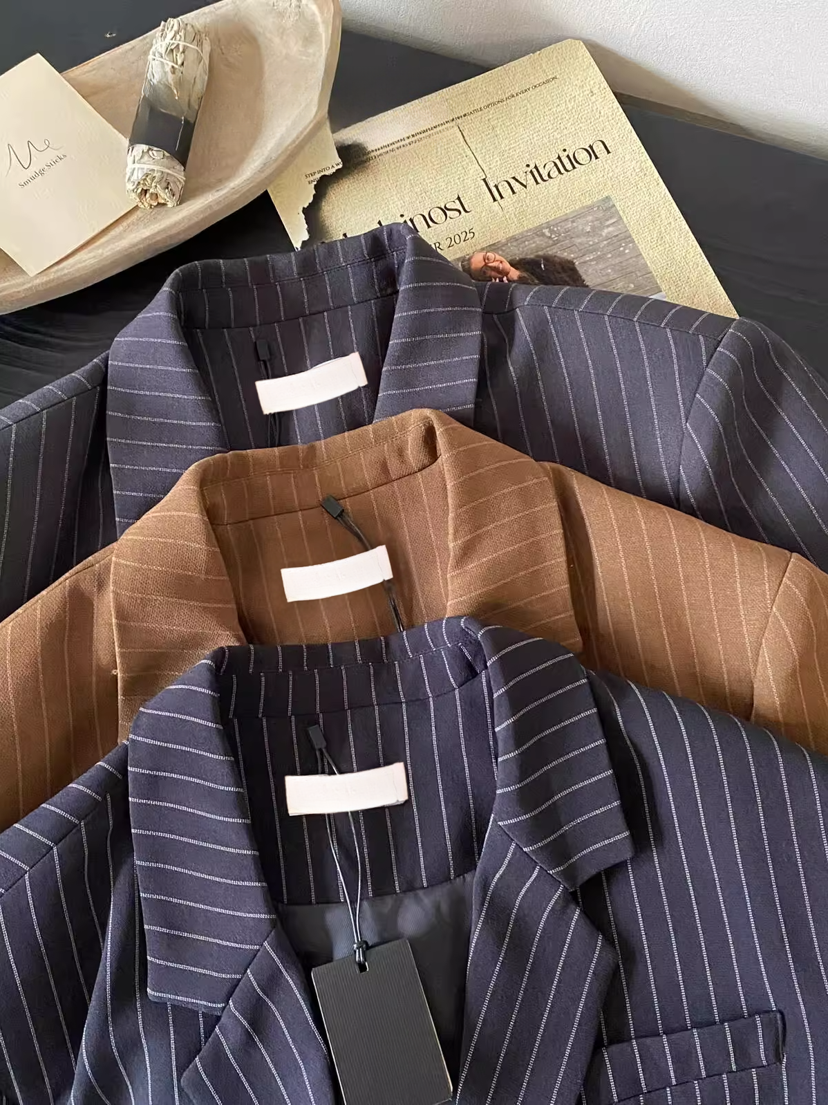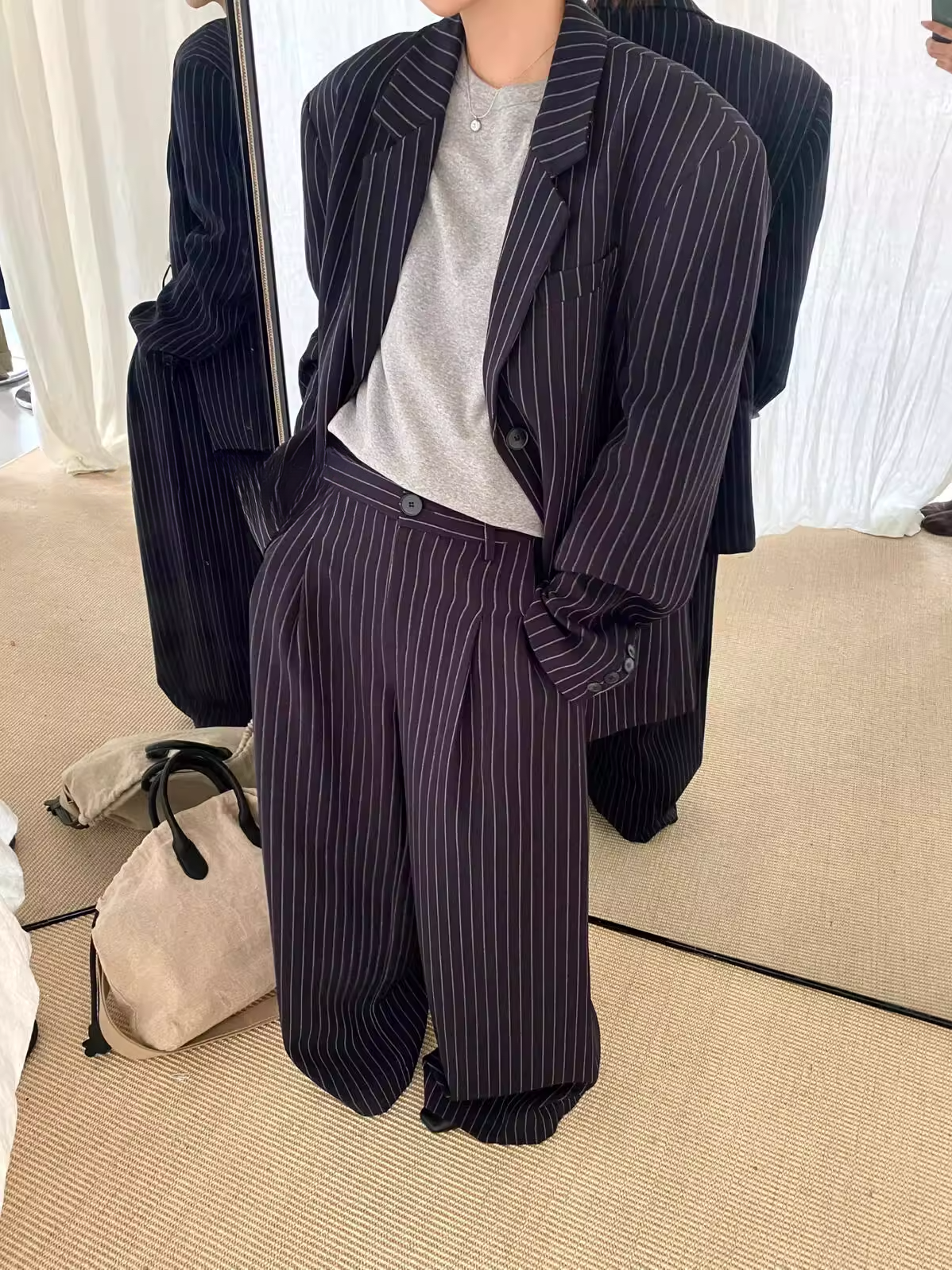 ストライプテーラードジャケット(セットアップ可) 2103