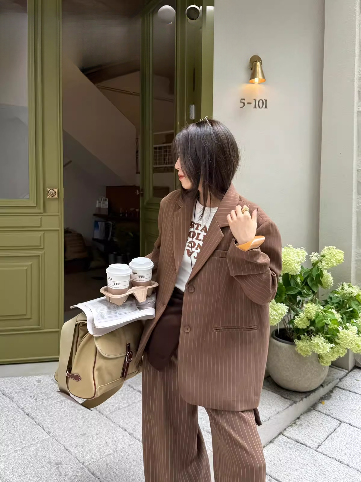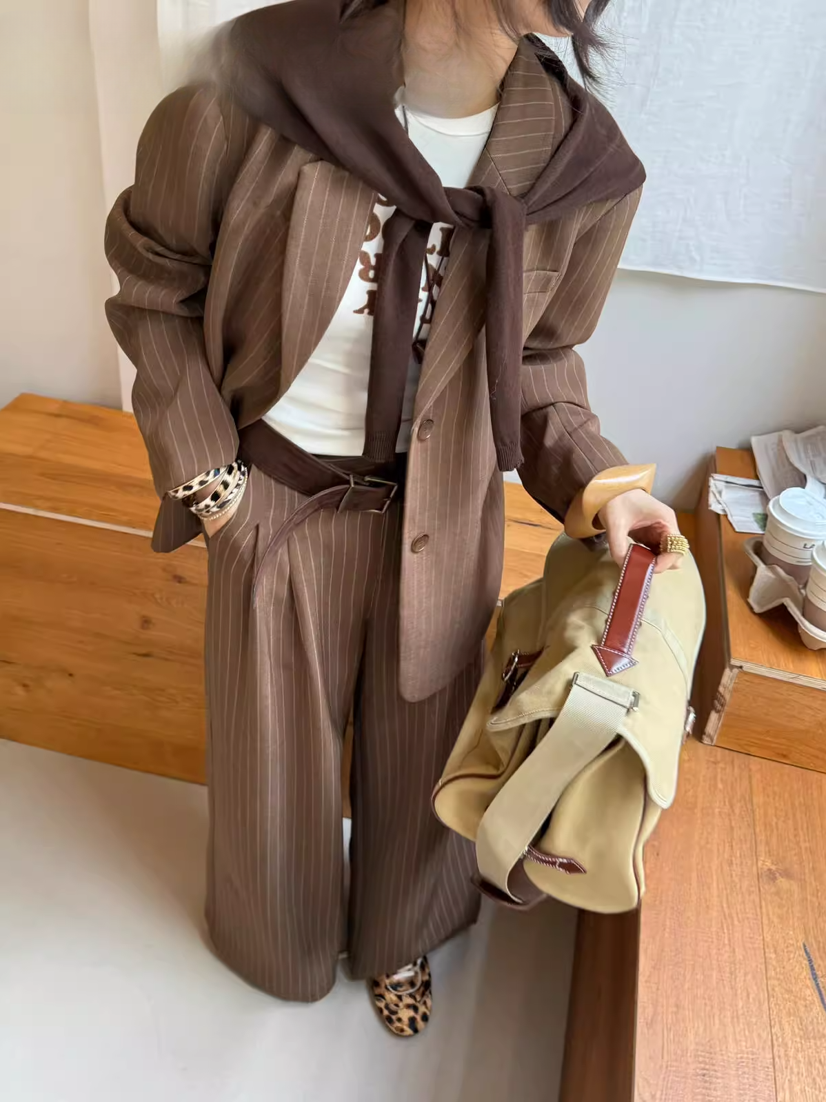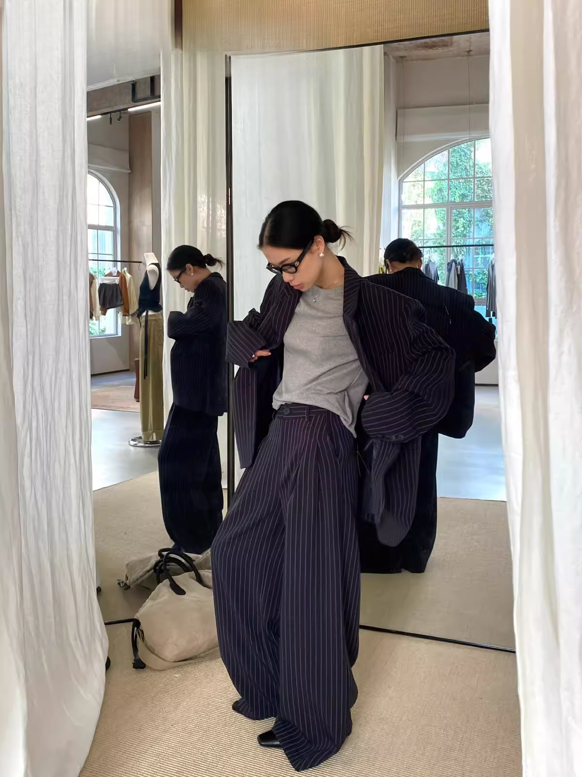 ストライプテーラードジャケット(セットアップ可) 2103
