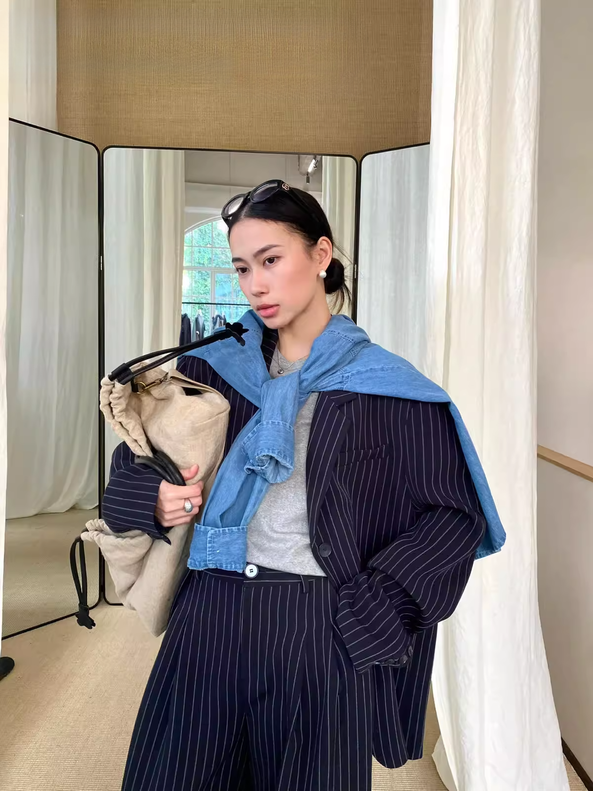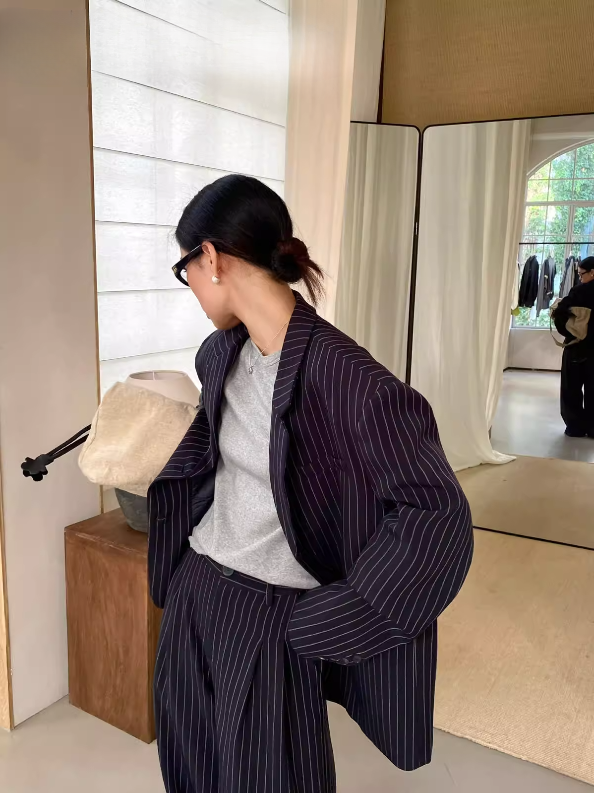 程よいメンズライクなサイズ感と、ストライプ柄が印象的なテーラードジャケット。ゆとりのあるシルエットで、羽織るだけで程よくモードカジュアルなスタイルに。セットアップで着られる同素材のパンツも展開。シーンに応じた着こなしが可能。単品使いでも、セットアップでもスタイリングを楽しめ、一着は欲しいアイテム。