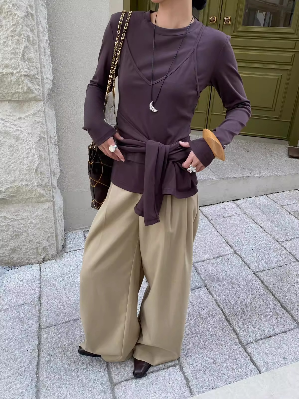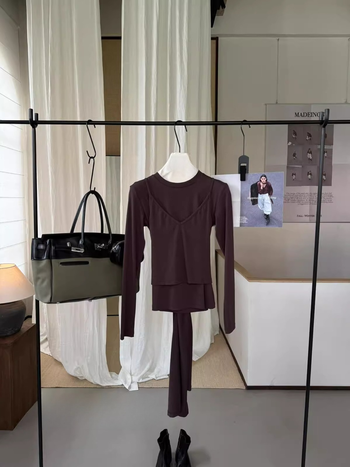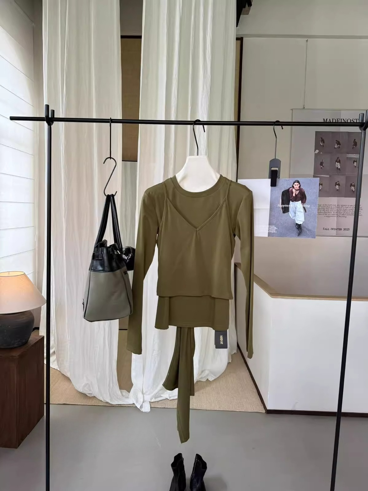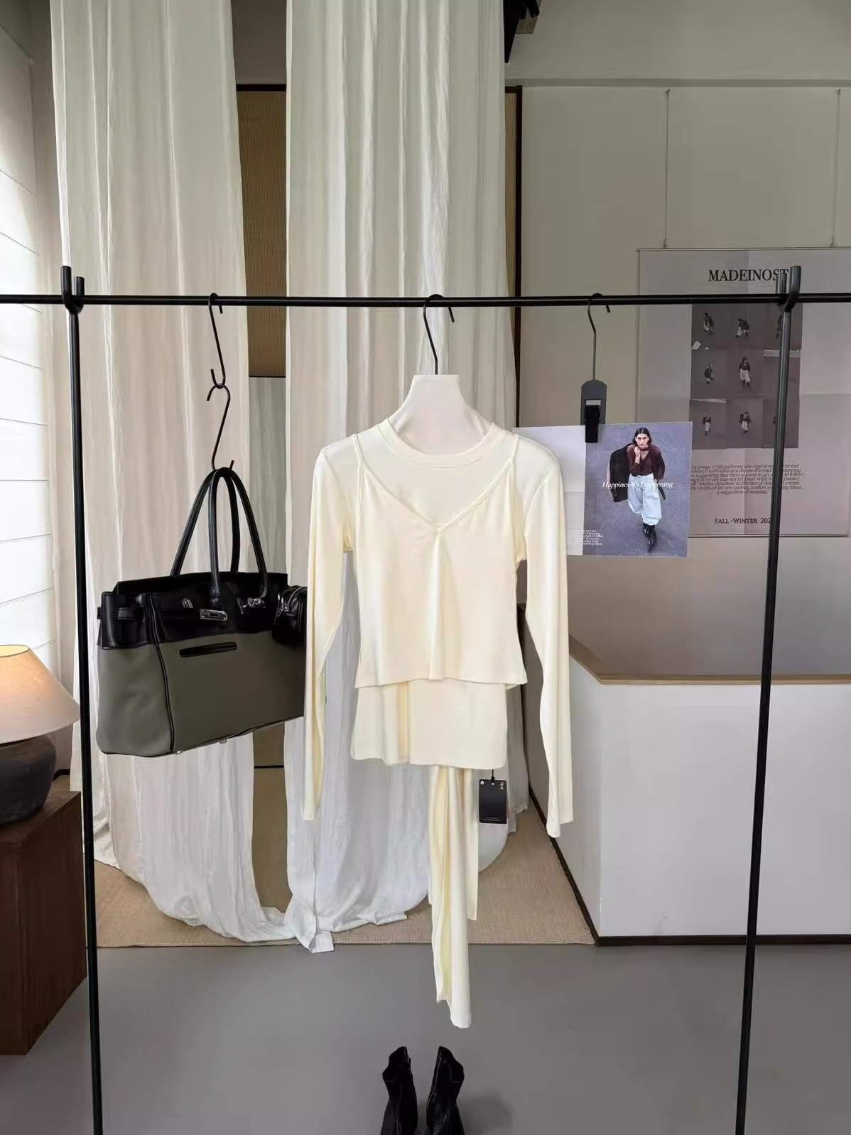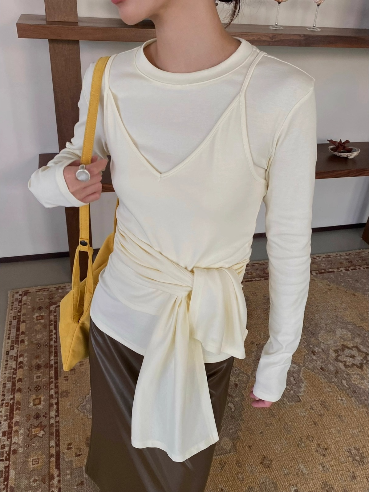キャミソールとカットソーをレイヤードしたセットトップス。