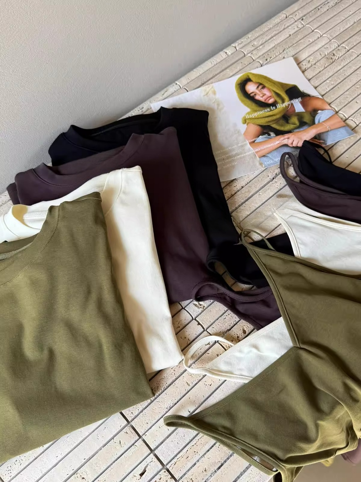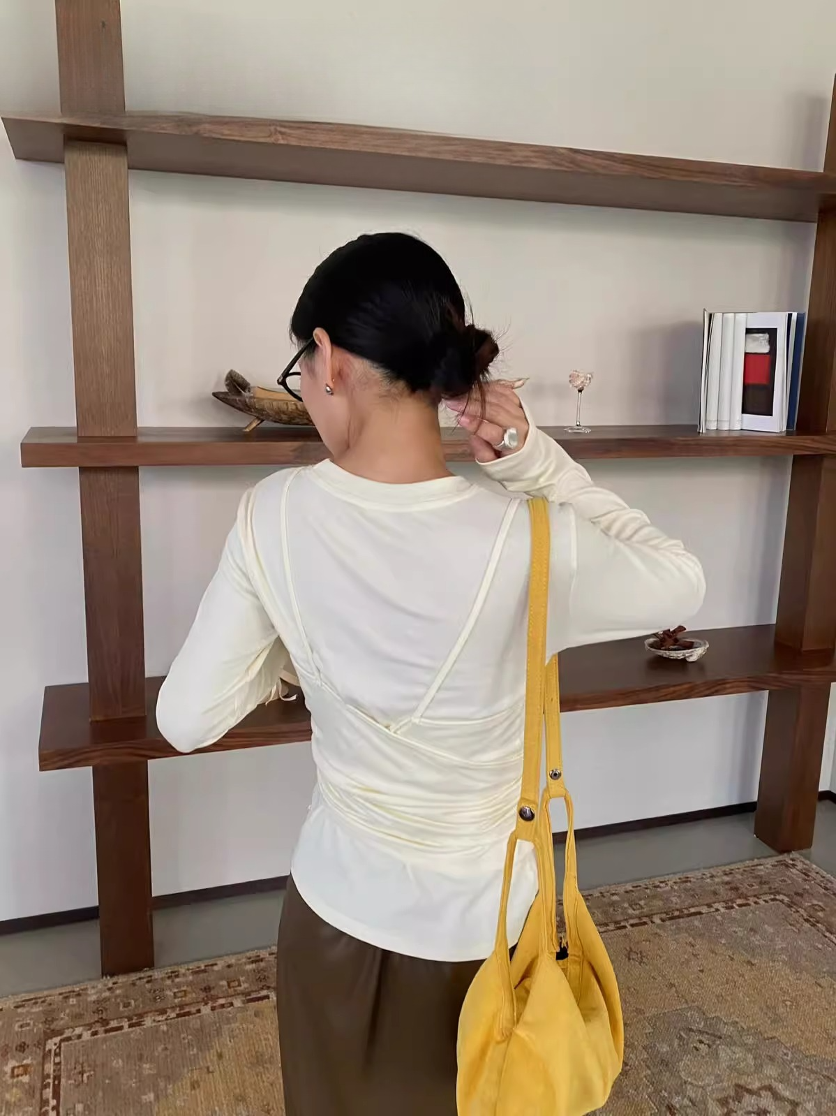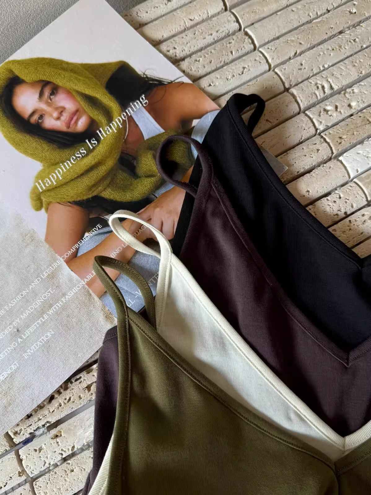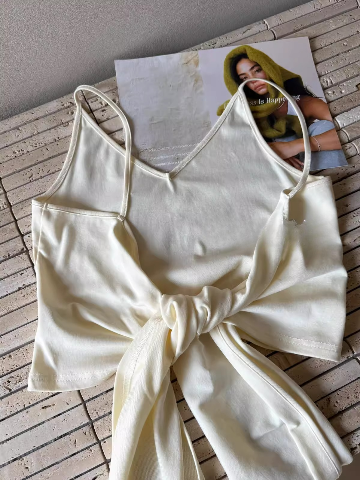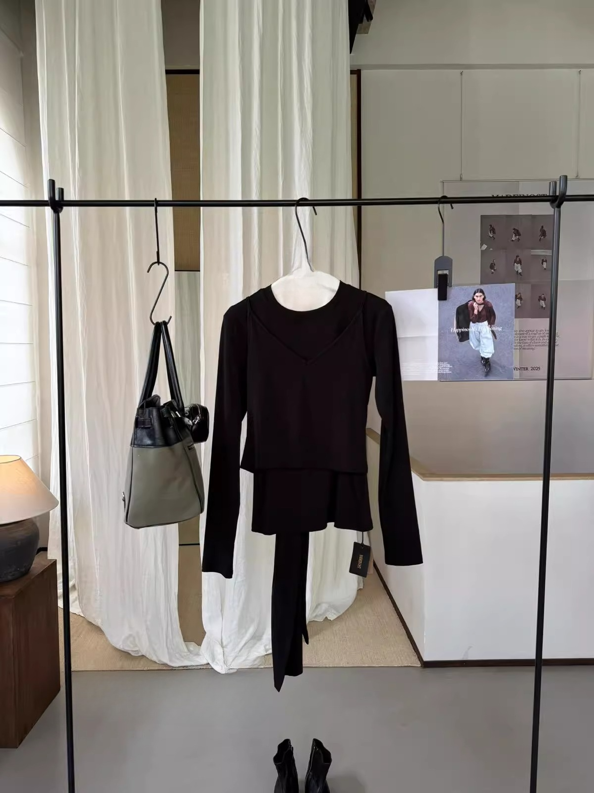 キャミソールとカットソーをレイヤードしたセットトップス。