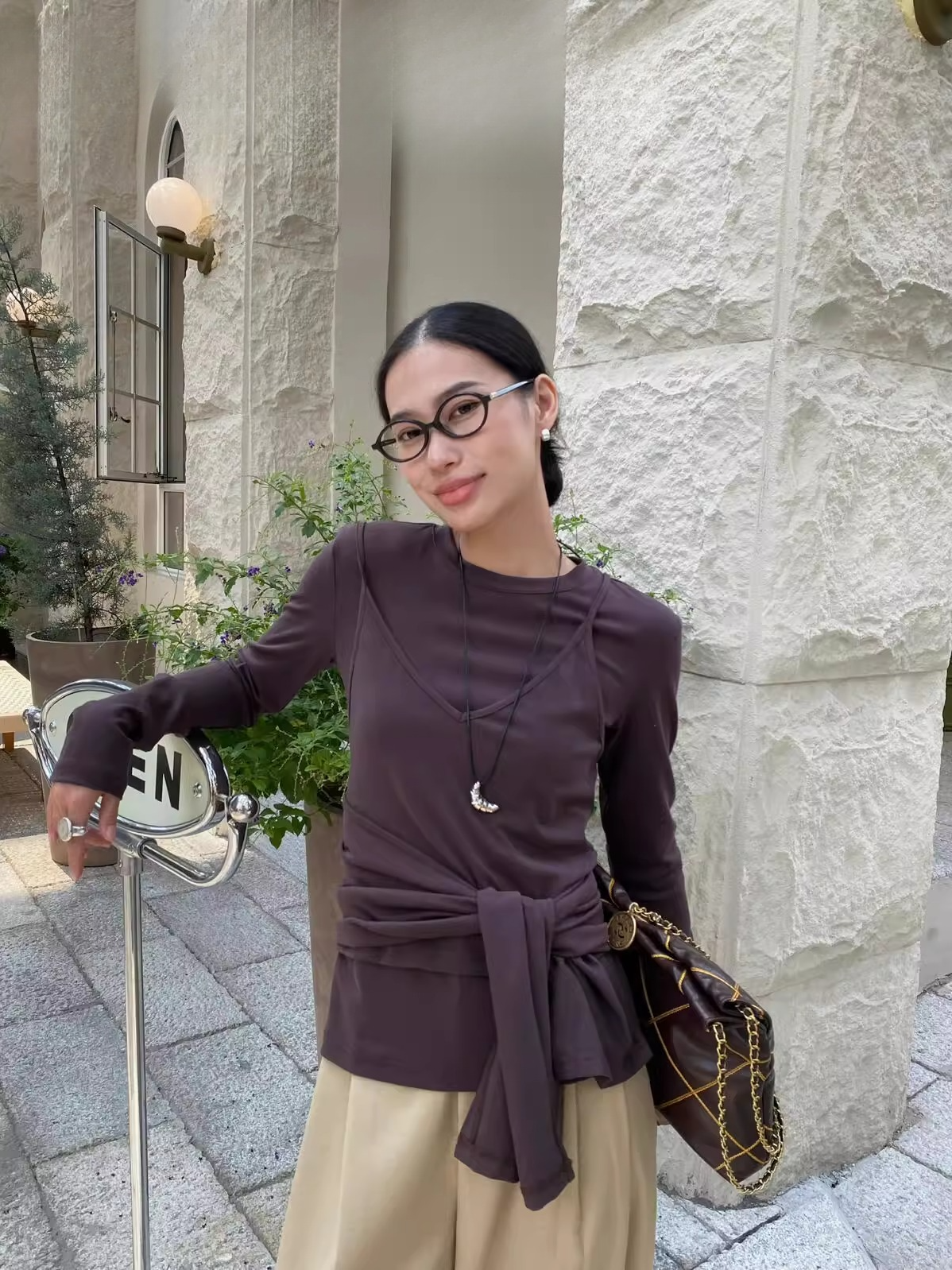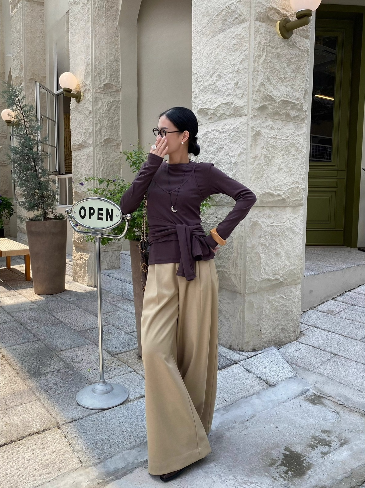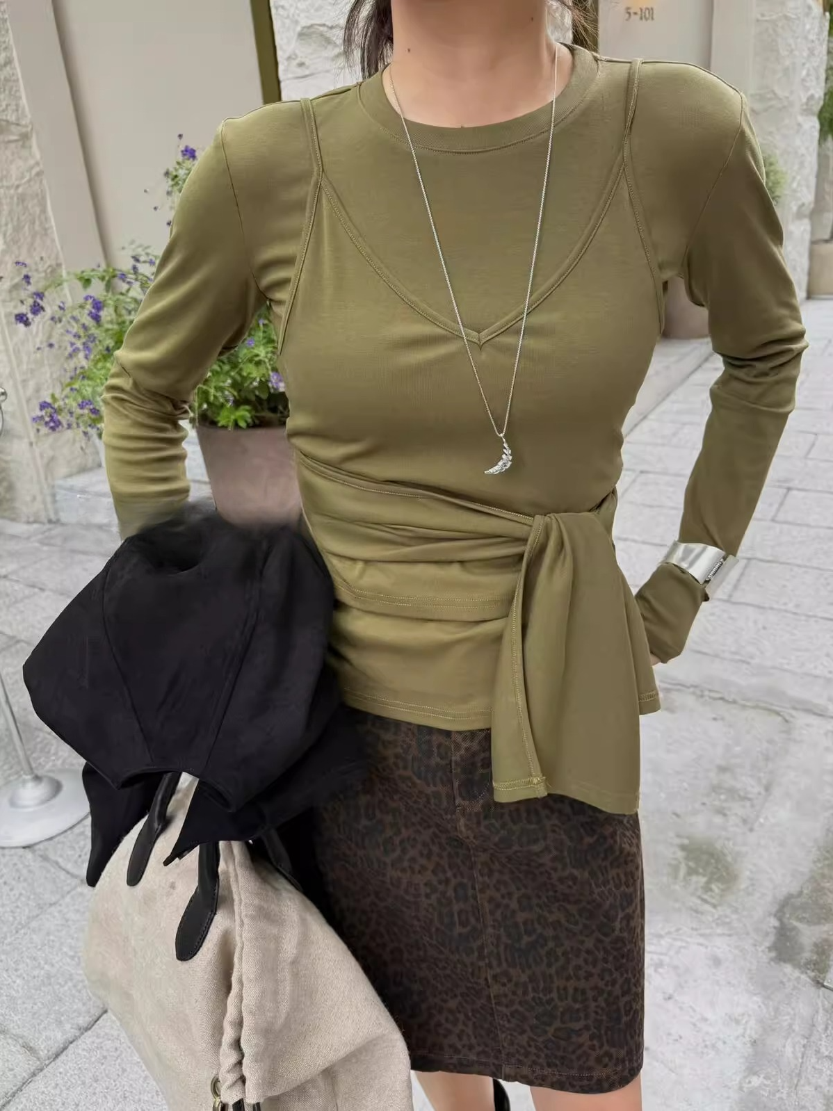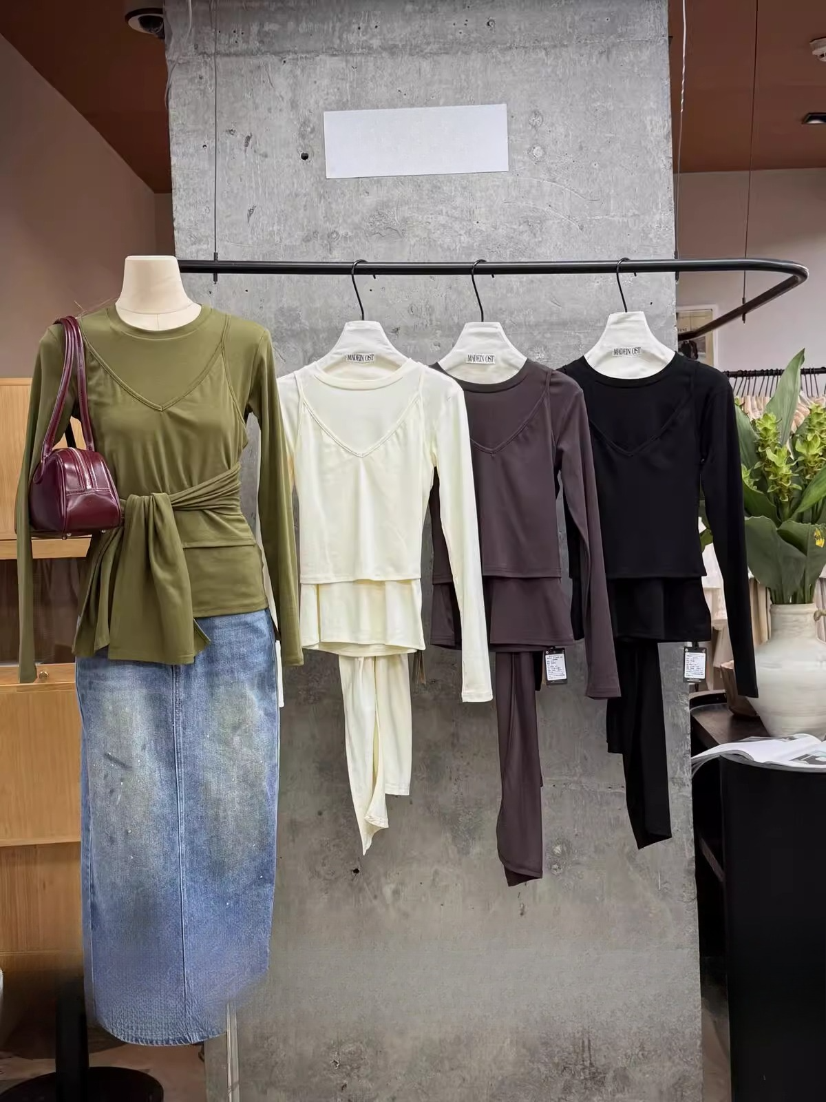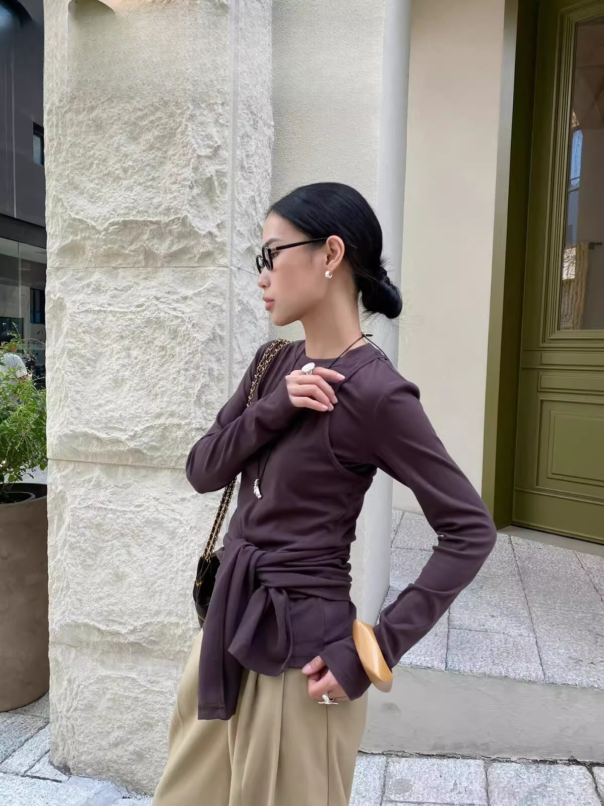 キャミソールとカットソーをレイヤードしたセットトップス。