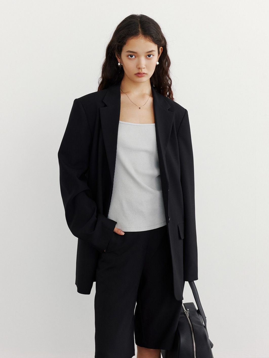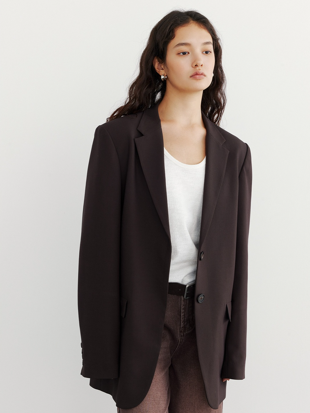 肩の力を抜いた、大人の余裕を感じさせる一着。ミニマルでマニッシュなテーラードカラーが、凛とした空気を纏わせてくれる。かっちりしすぎないラフなサイズ感で、スラックスやデニムとも好相性。季節の変わり目に、さっと羽織るだけでスタイルが決まる、ワードローブに加えておきたい一着です。