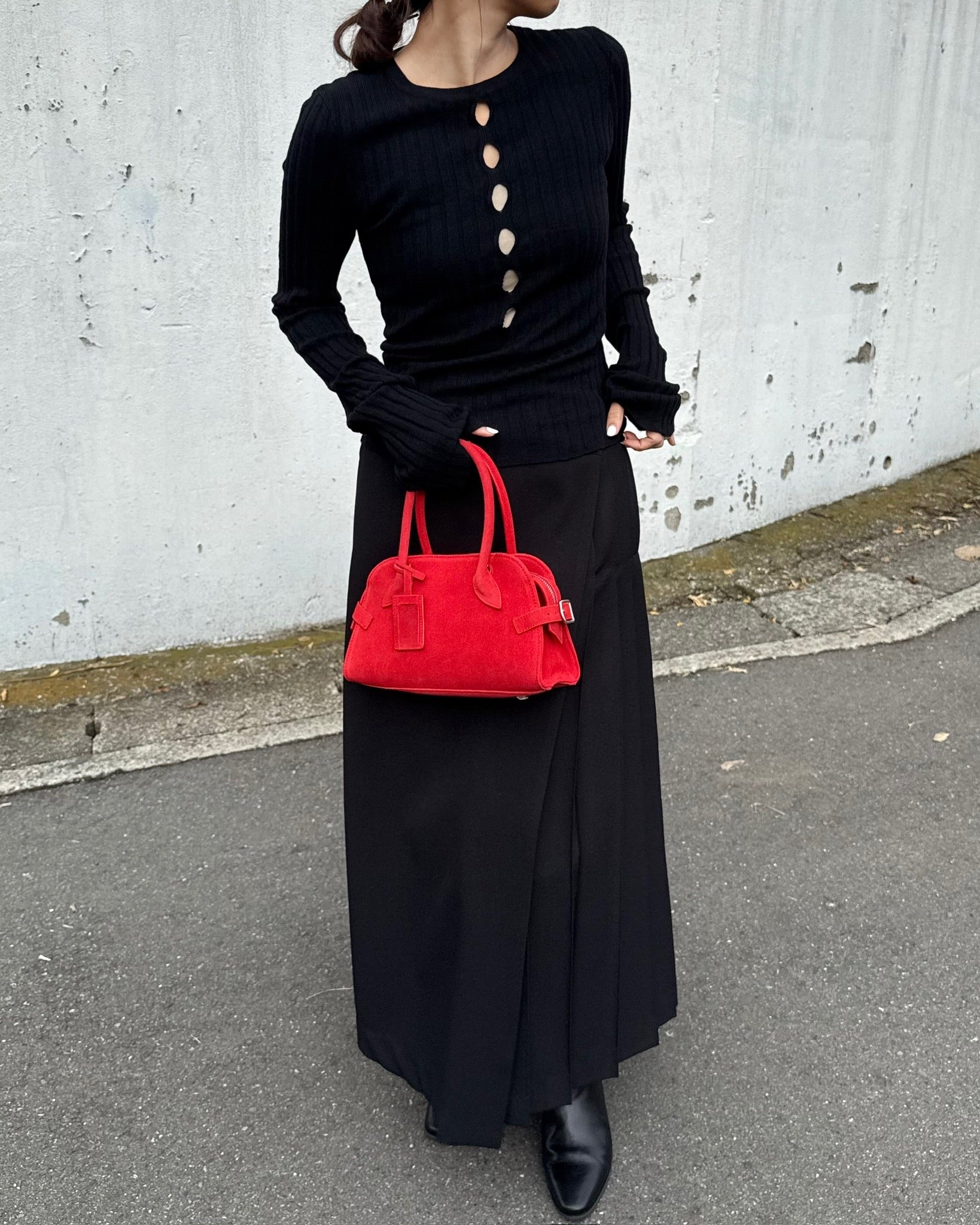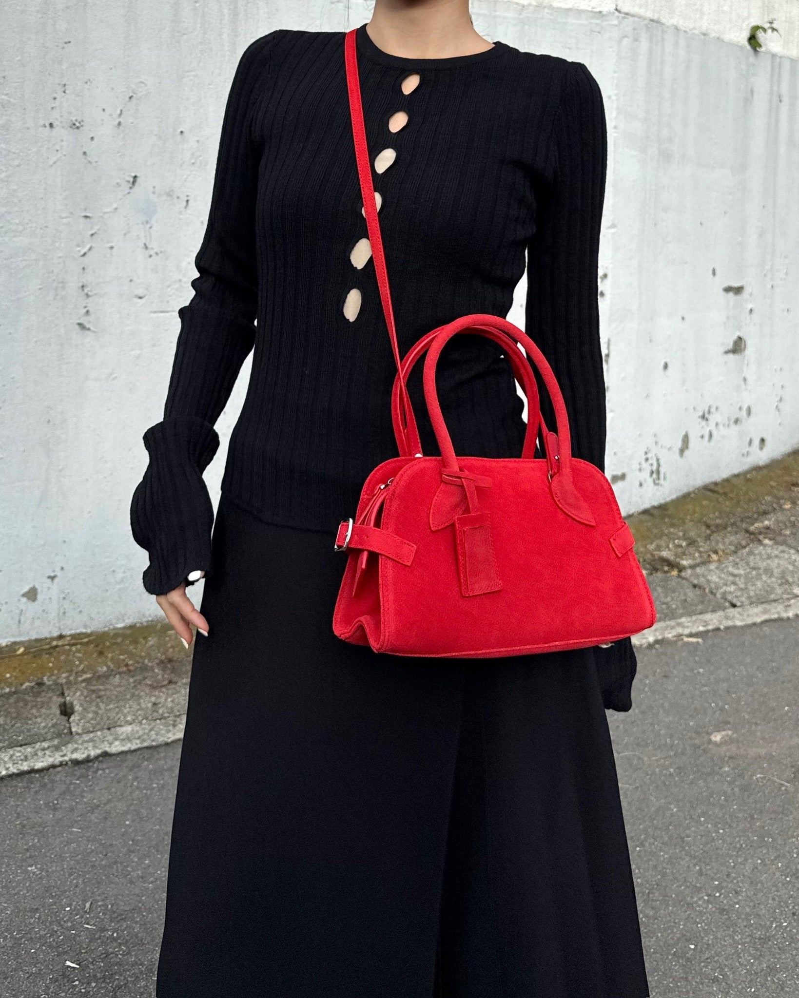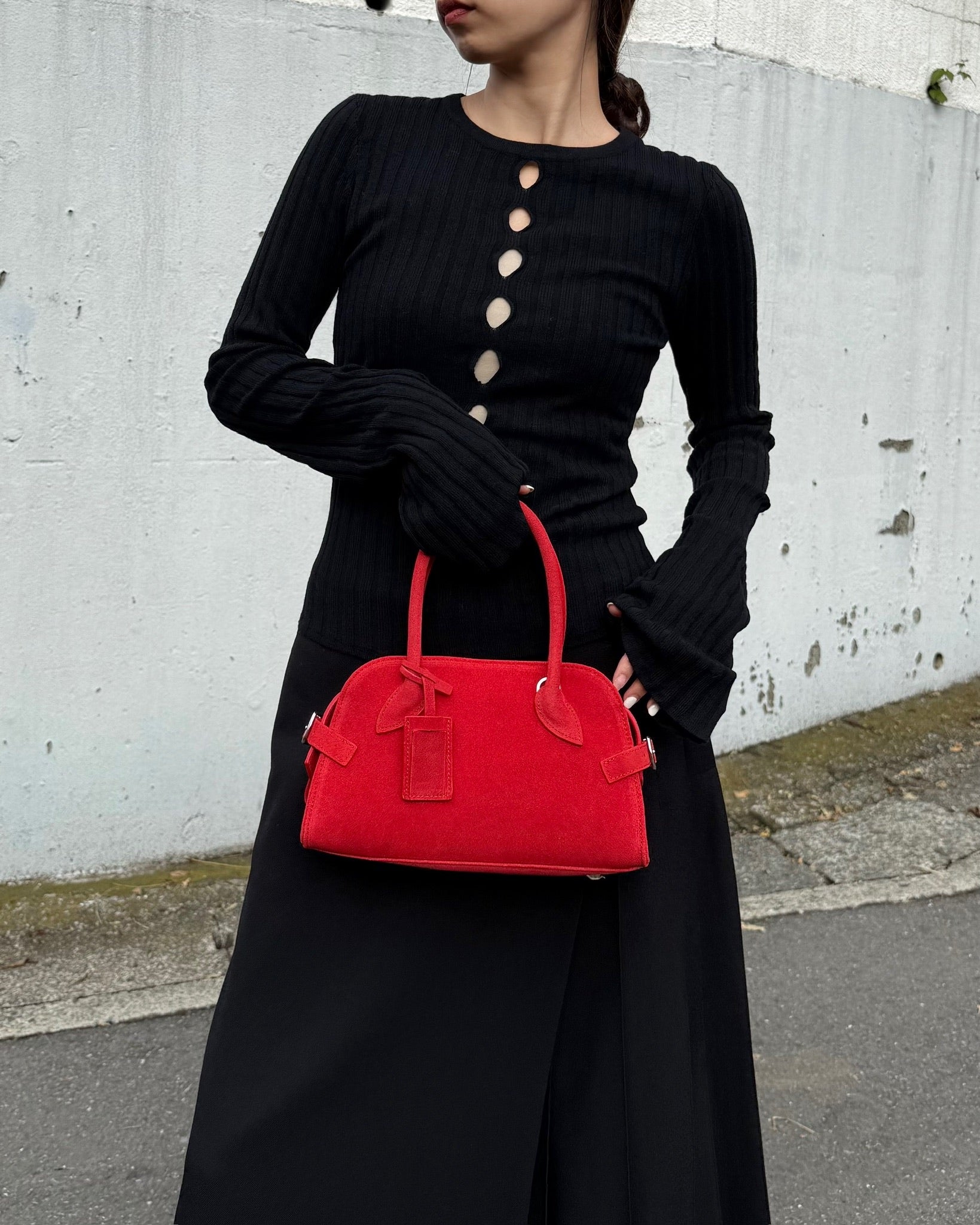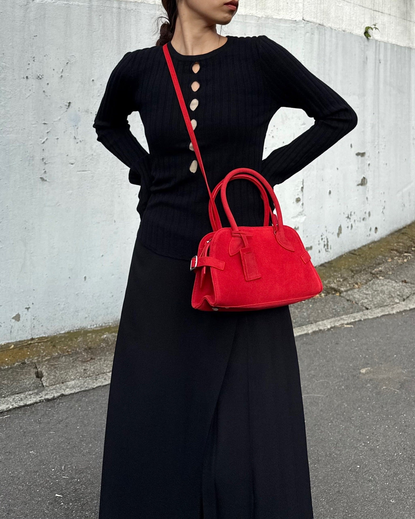 丸みを帯びた柔らかなフォルムと、細部まで丁寧に設計されたハンドルラインが、洗練された印象をプラス。ミニサイズながら、必要なものはしっかり収納できる実用性も魅力です。ベーシックなコーディネートに一点プラスするだけで、女性らしさと程よいエッジを演出してくれるアイテムです。カジュアルにも、きれいめにも馴染む万能バッグ。