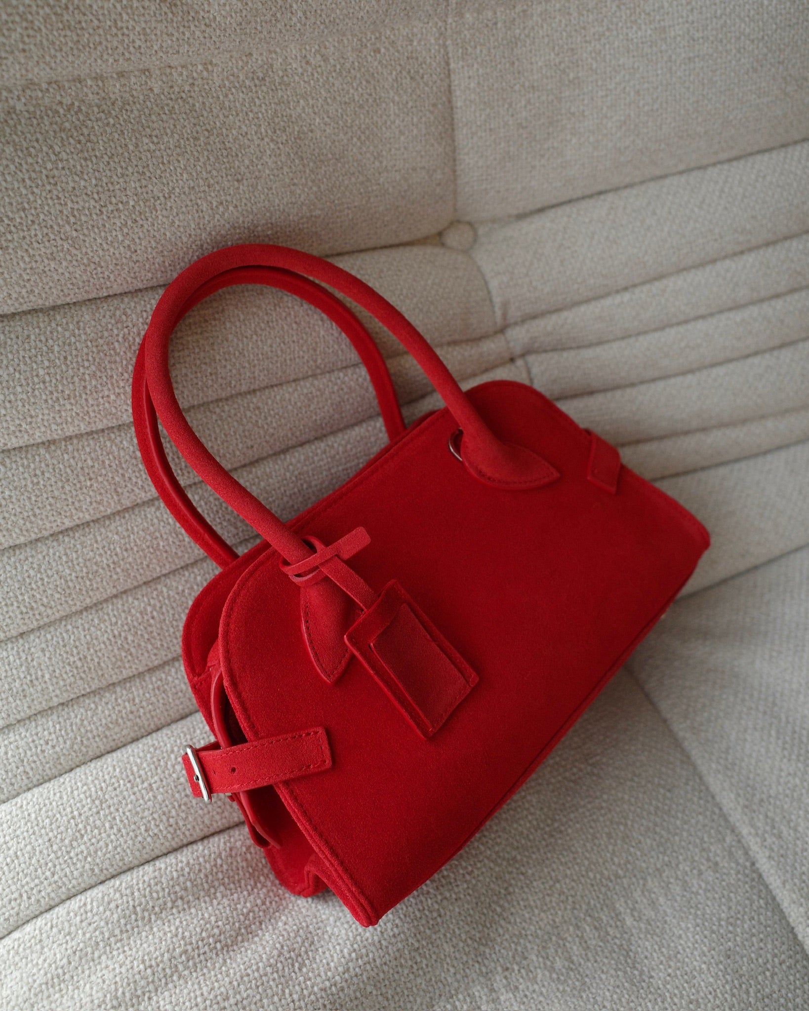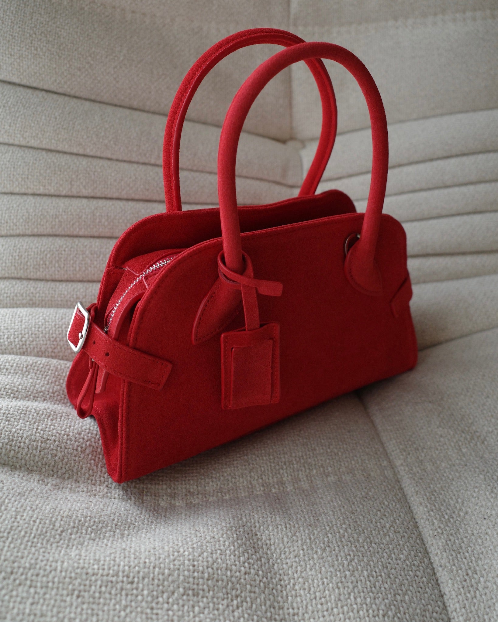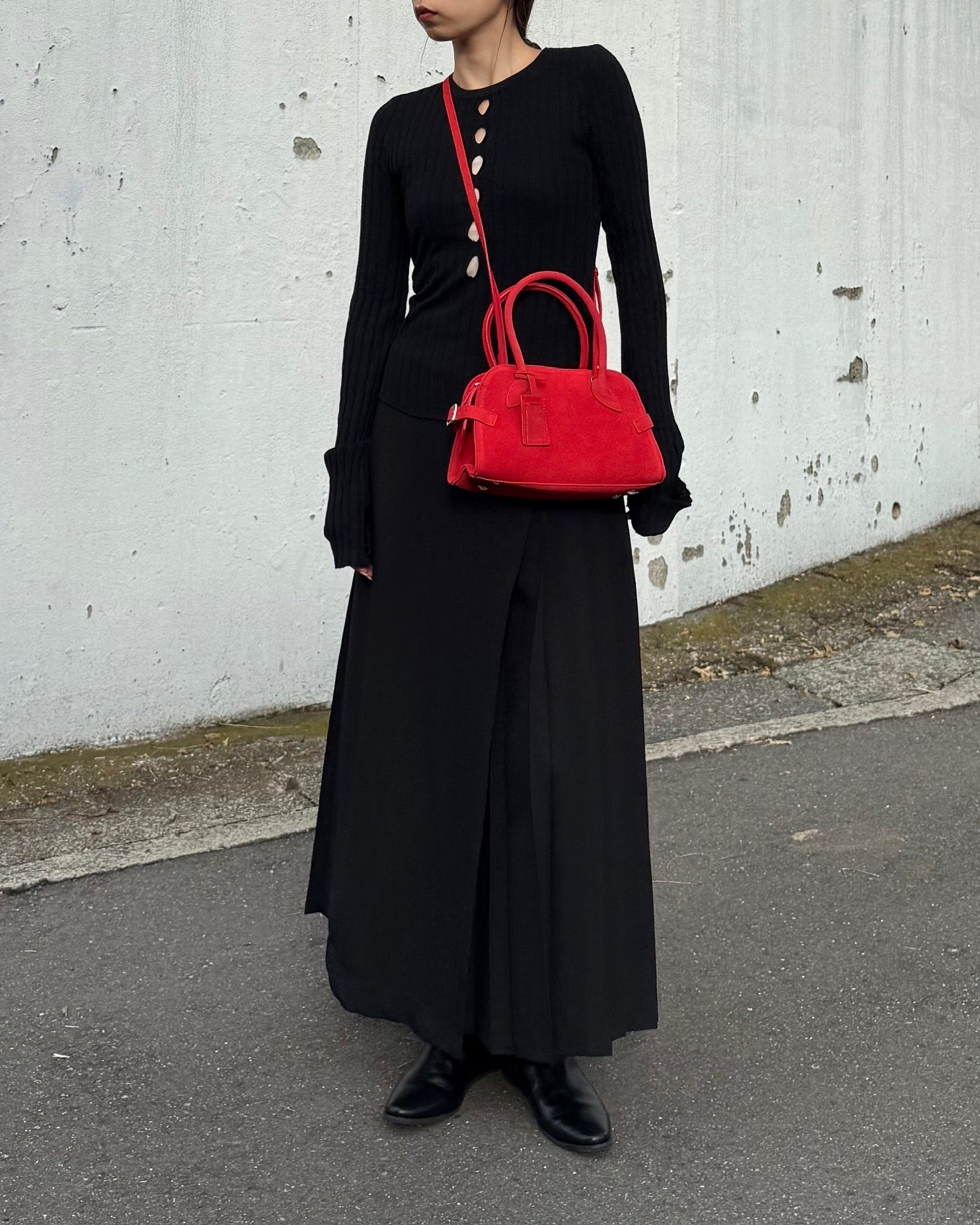 丸みを帯びた柔らかなフォルムと、細部まで丁寧に設計されたハンドルラインが、洗練された印象をプラス。ミニサイズながら、必要なものはしっかり収納できる実用性も魅力です。ベーシックなコーディネートに一点プラスするだけで、女性らしさと程よいエッジを演出してくれるアイテムです。カジュアルにも、きれいめにも馴染む万能バッグ。