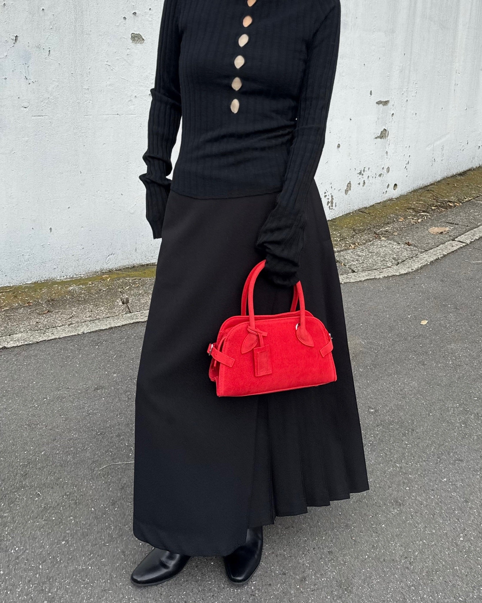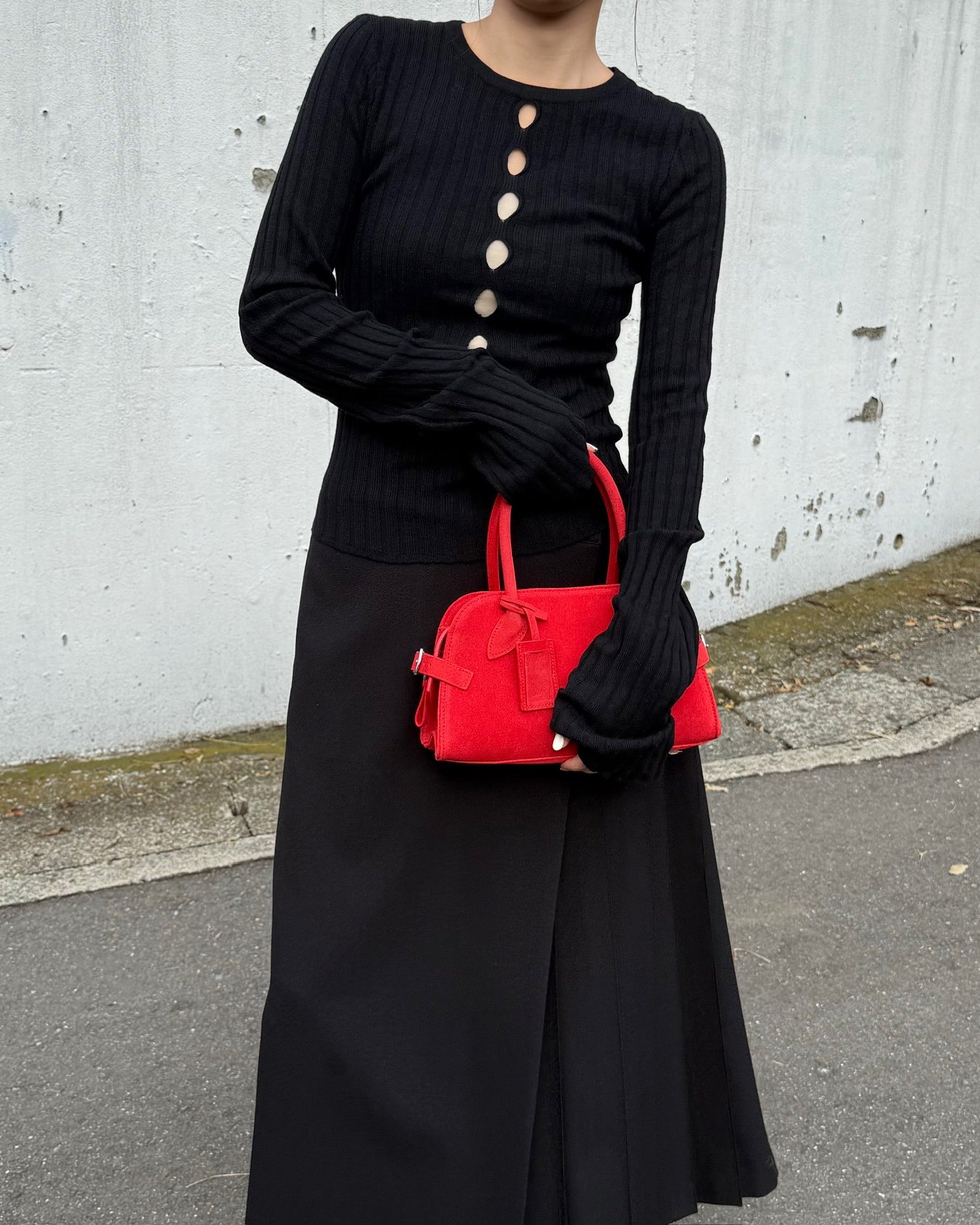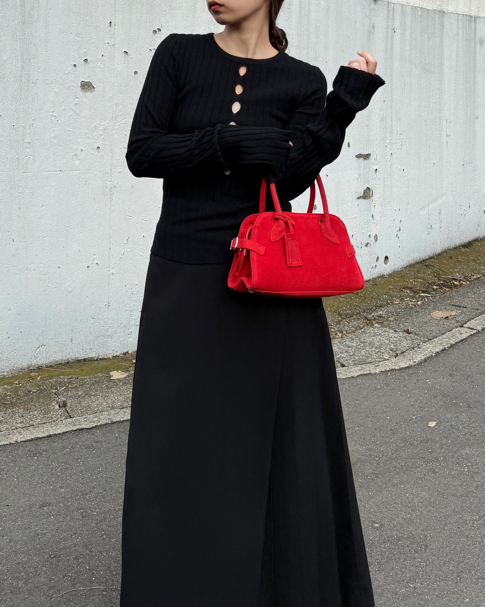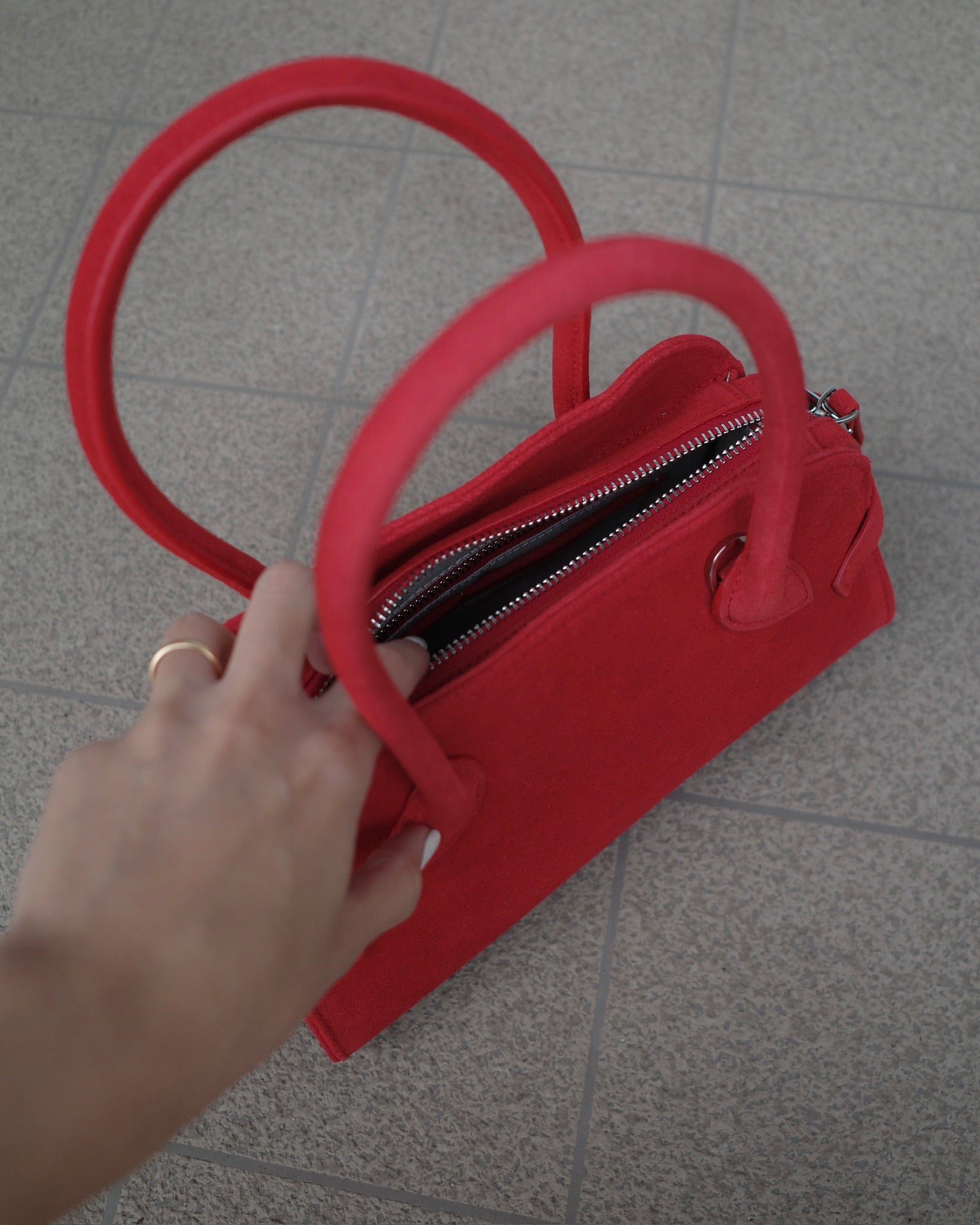 丸みを帯びた柔らかなフォルムと、細部まで丁寧に設計されたハンドルラインが、洗練された印象をプラス。ミニサイズながら、必要なものはしっかり収納できる実用性も魅力です。ベーシックなコーディネートに一点プラスするだけで、女性らしさと程よいエッジを演出してくれるアイテムです。カジュアルにも、きれいめにも馴染む万能バッグ。