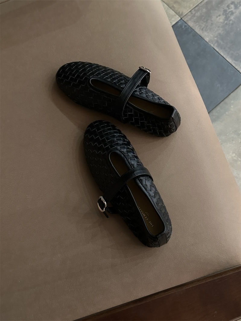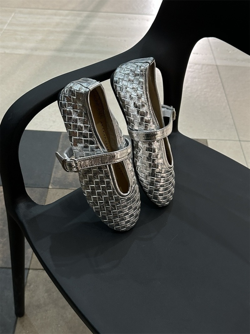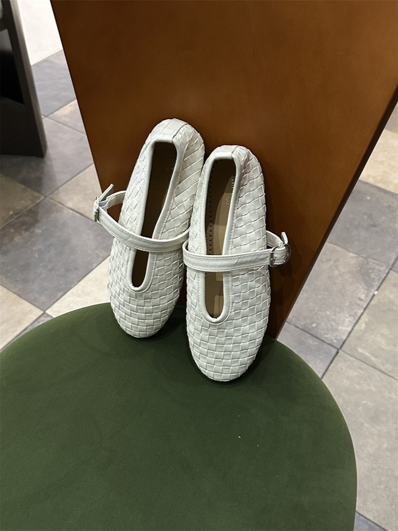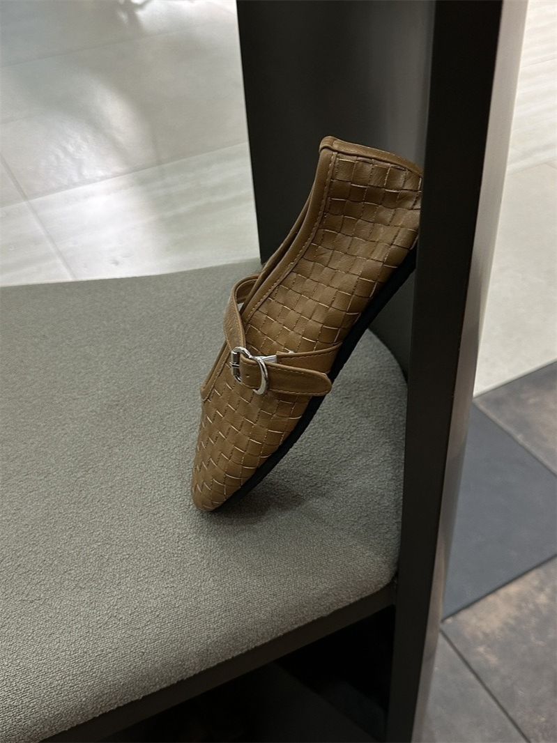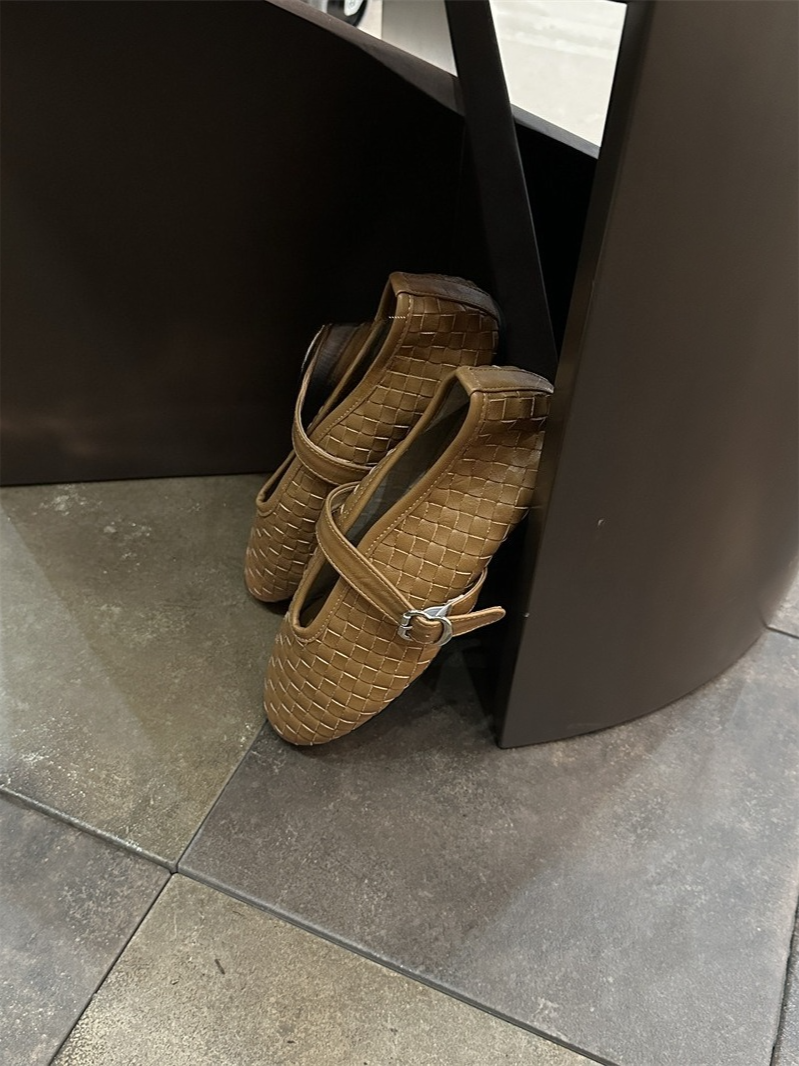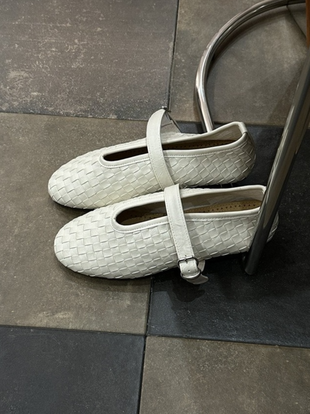 丁寧に編まれたデザインが目を引く、編み込みデザインシューズ 。