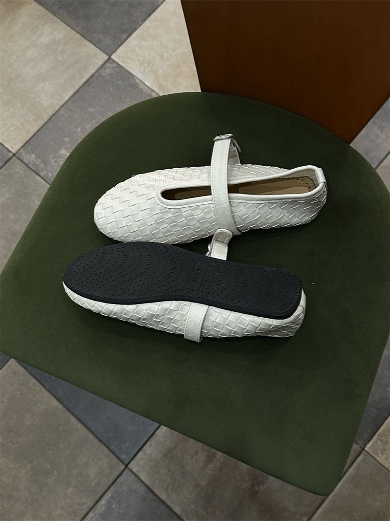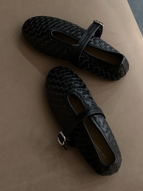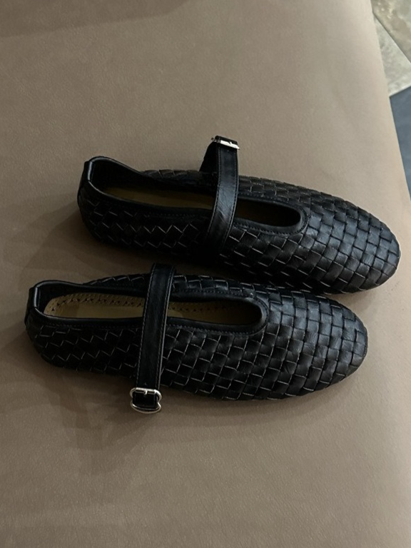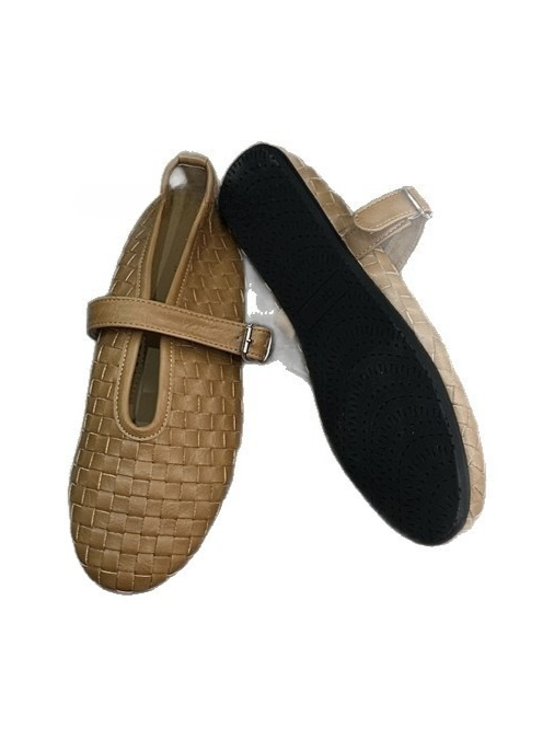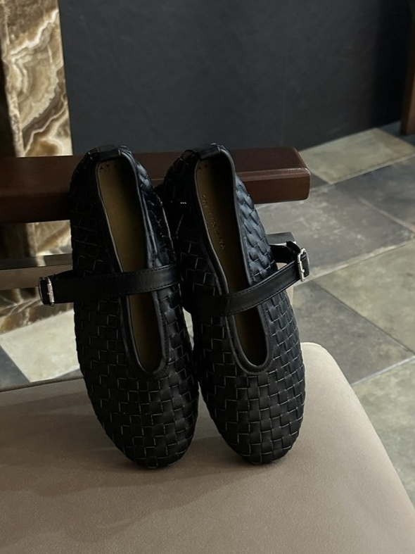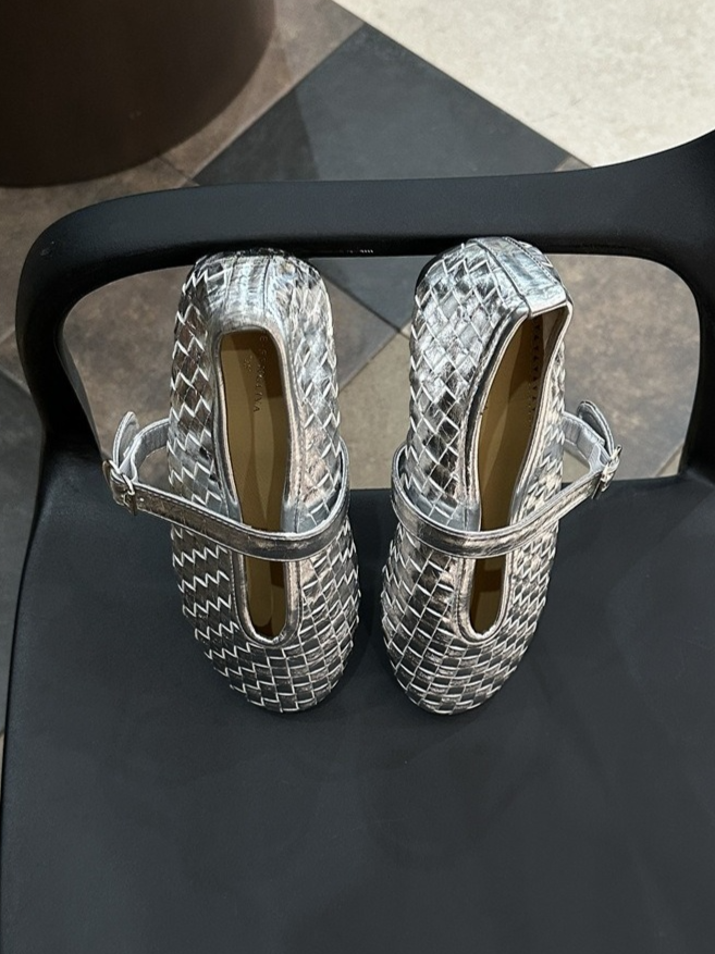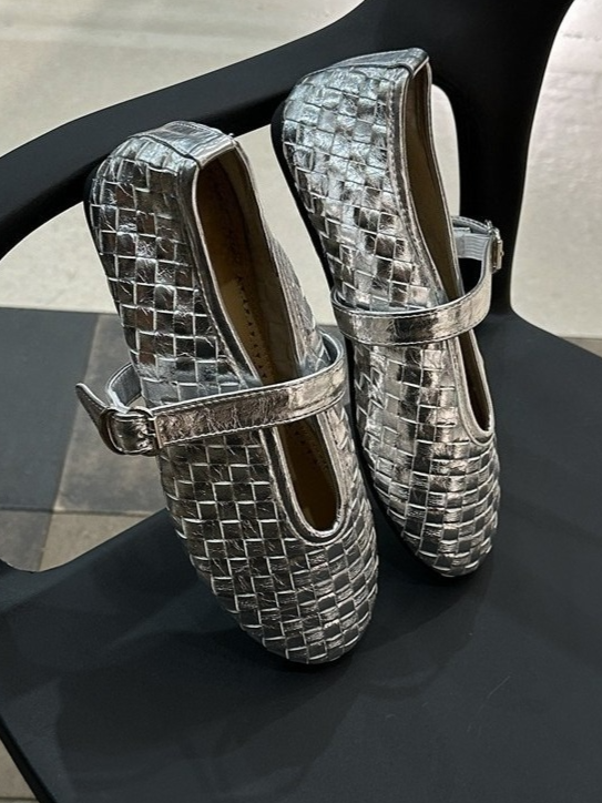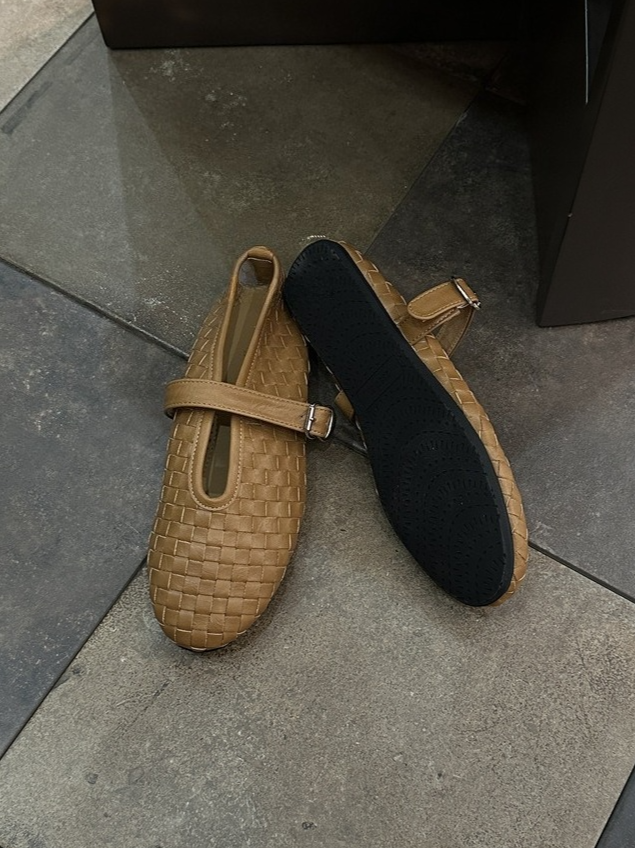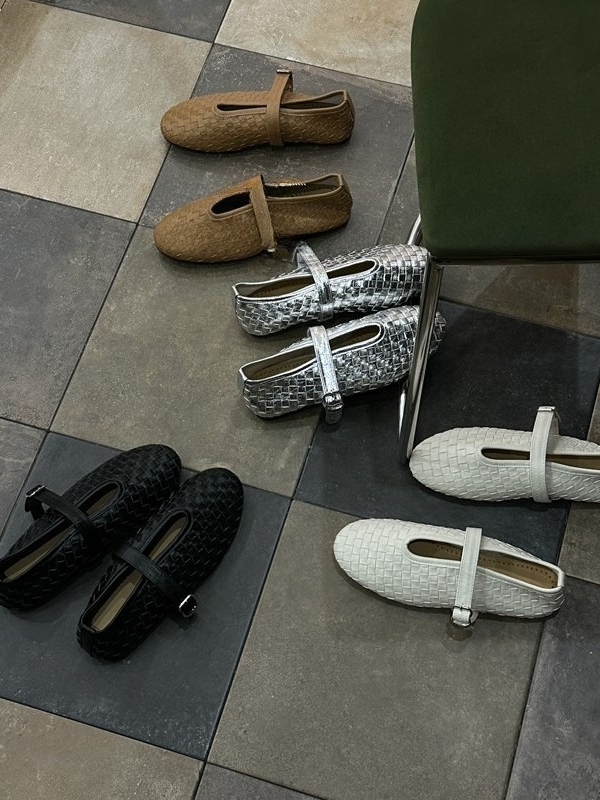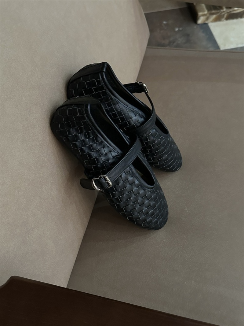 丁寧に編まれたデザインが目を引く、編み込みデザインシューズ 。