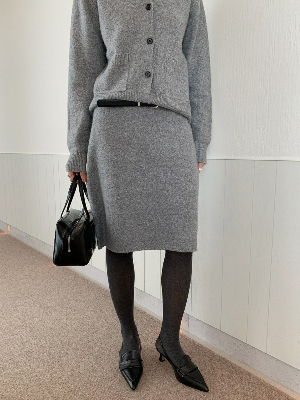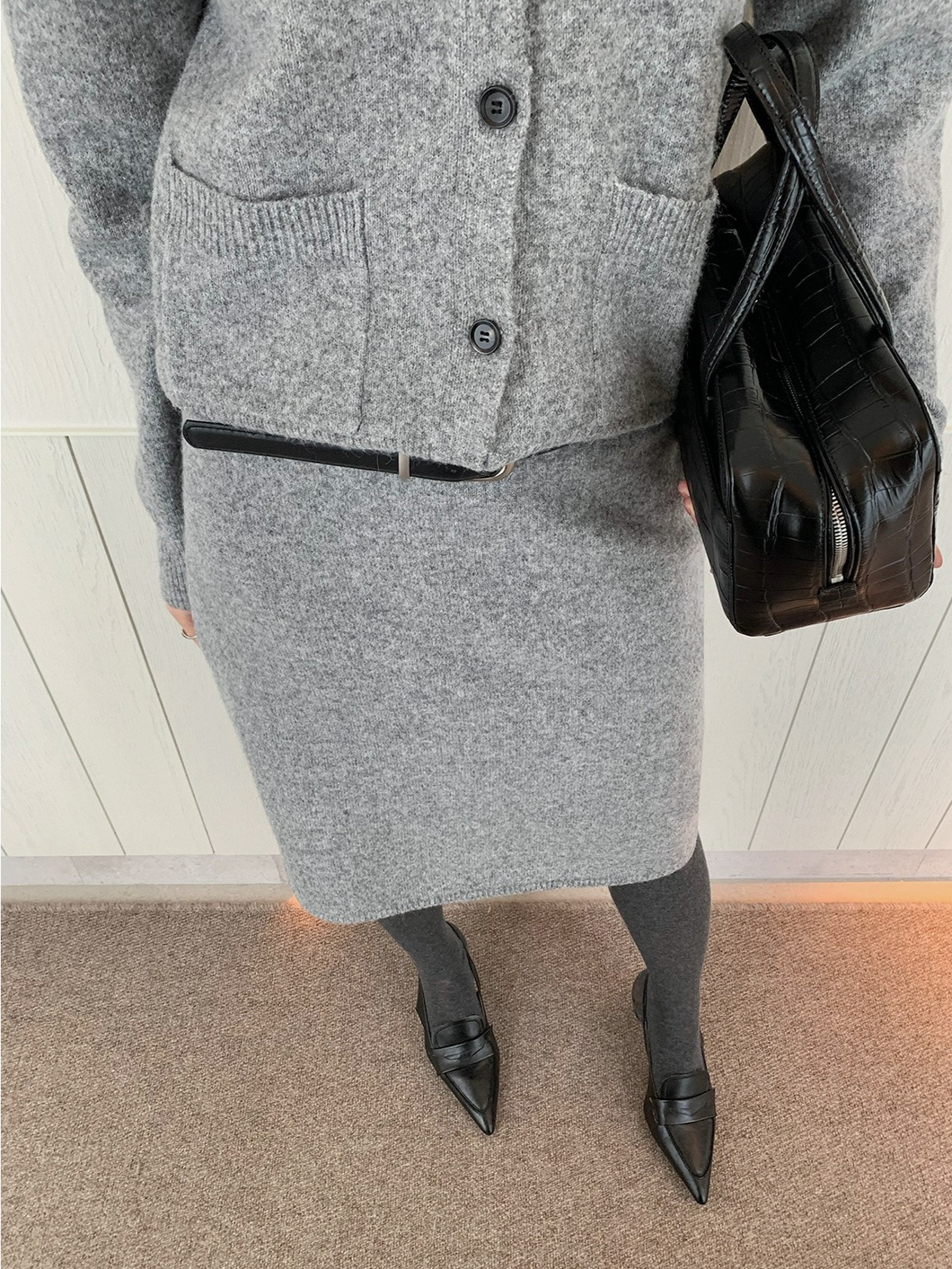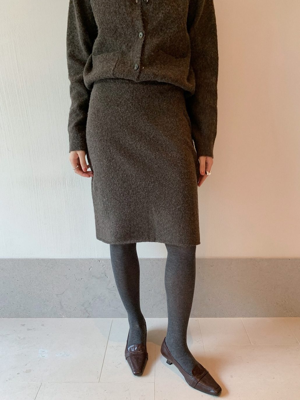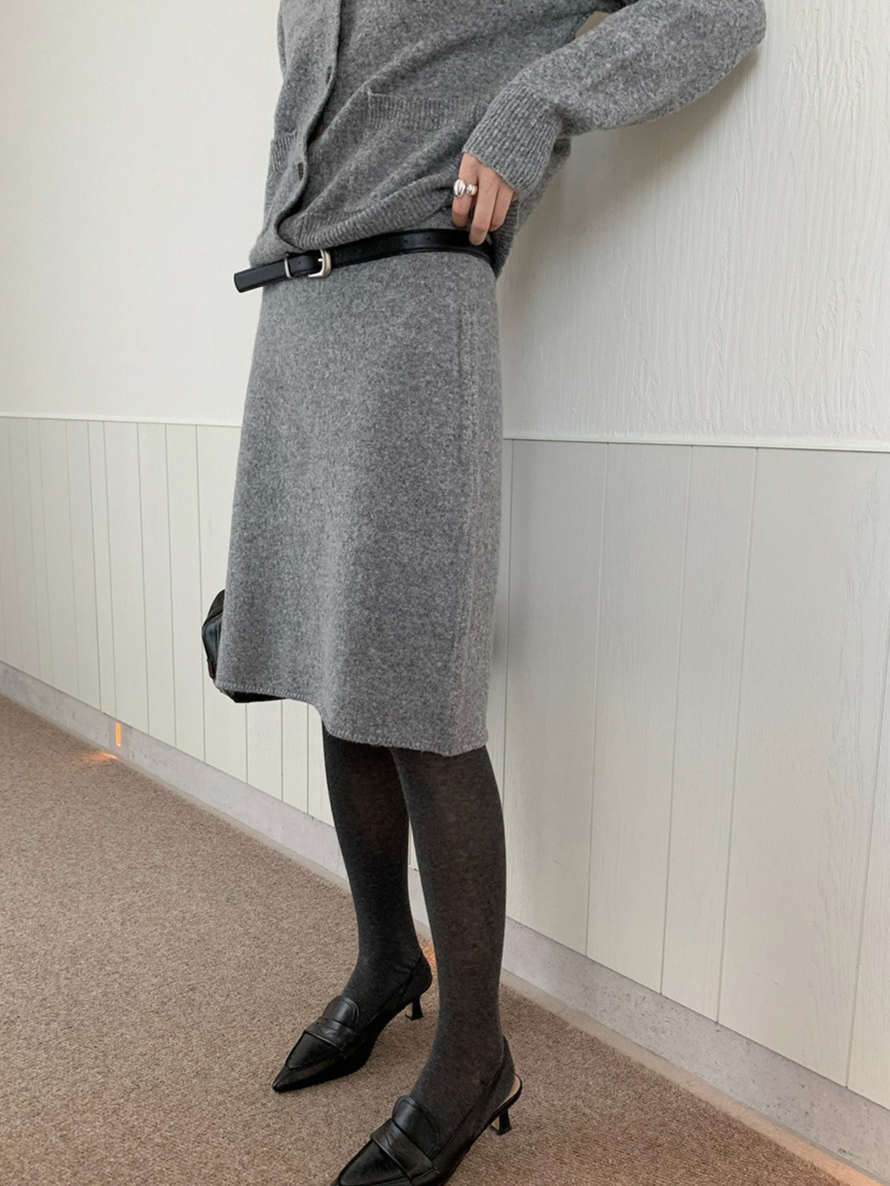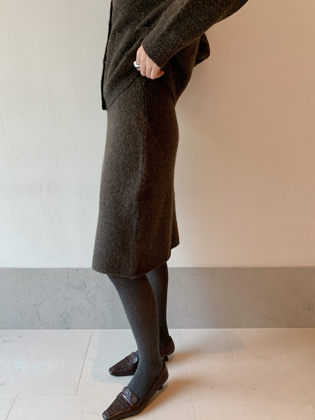 柔らかな風合いとほどよい厚みのあるニット素材が、秋冬のスタイリングにあたたかみを添えます。タイツやロングブーツとの相性はもちろん、スウェットやオーバーサイズシャツを合わせてラフに着こなすのもおすすめです。 同素材のトップスとセットアップで着用すれば、より洗練された印象に。 一枚あるだけでコーディネートの幅が広がり、季節の変わり目にも重宝するアイテムです。
