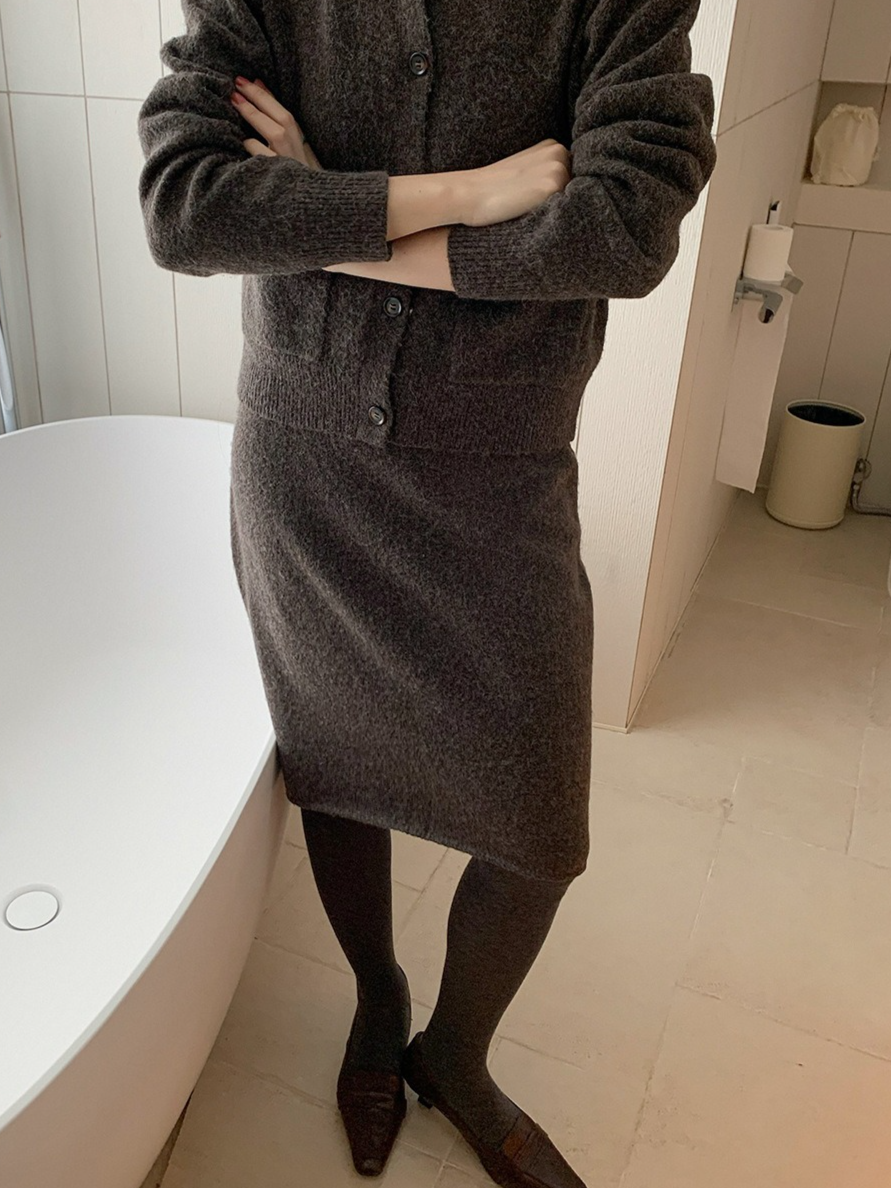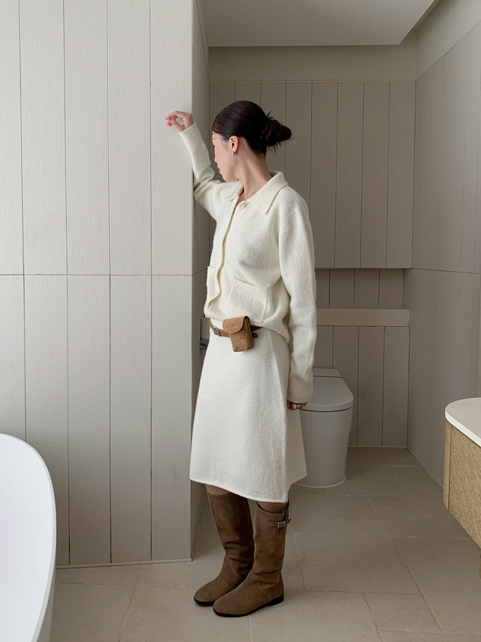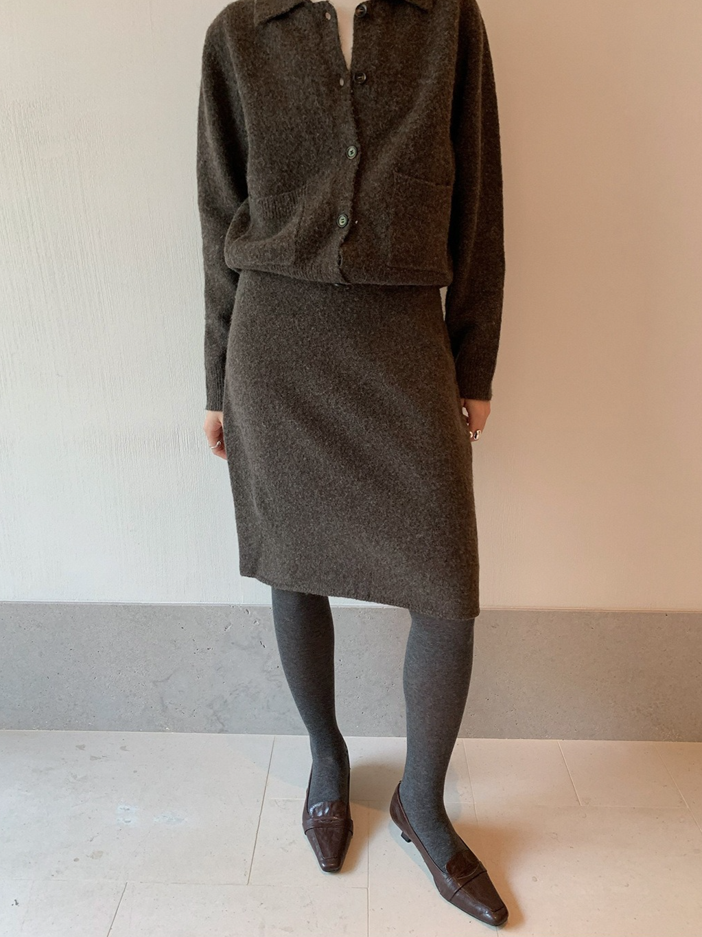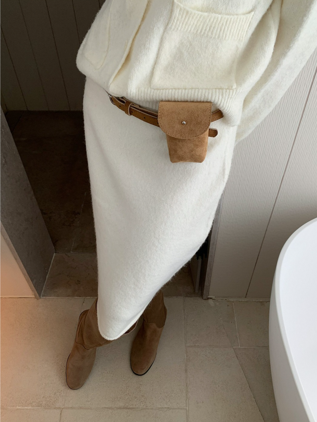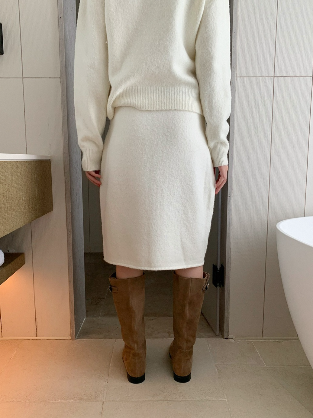 柔らかな風合いとほどよい厚みのあるニット素材が、秋冬のスタイリングにあたたかみを添えます。タイツやロングブーツとの相性はもちろん、スウェットやオーバーサイズシャツを合わせてラフに着こなすのもおすすめです。 同素材のトップスとセットアップで着用すれば、より洗練された印象に。 一枚あるだけでコーディネートの幅が広がり、季節の変わり目にも重宝するアイテムです。