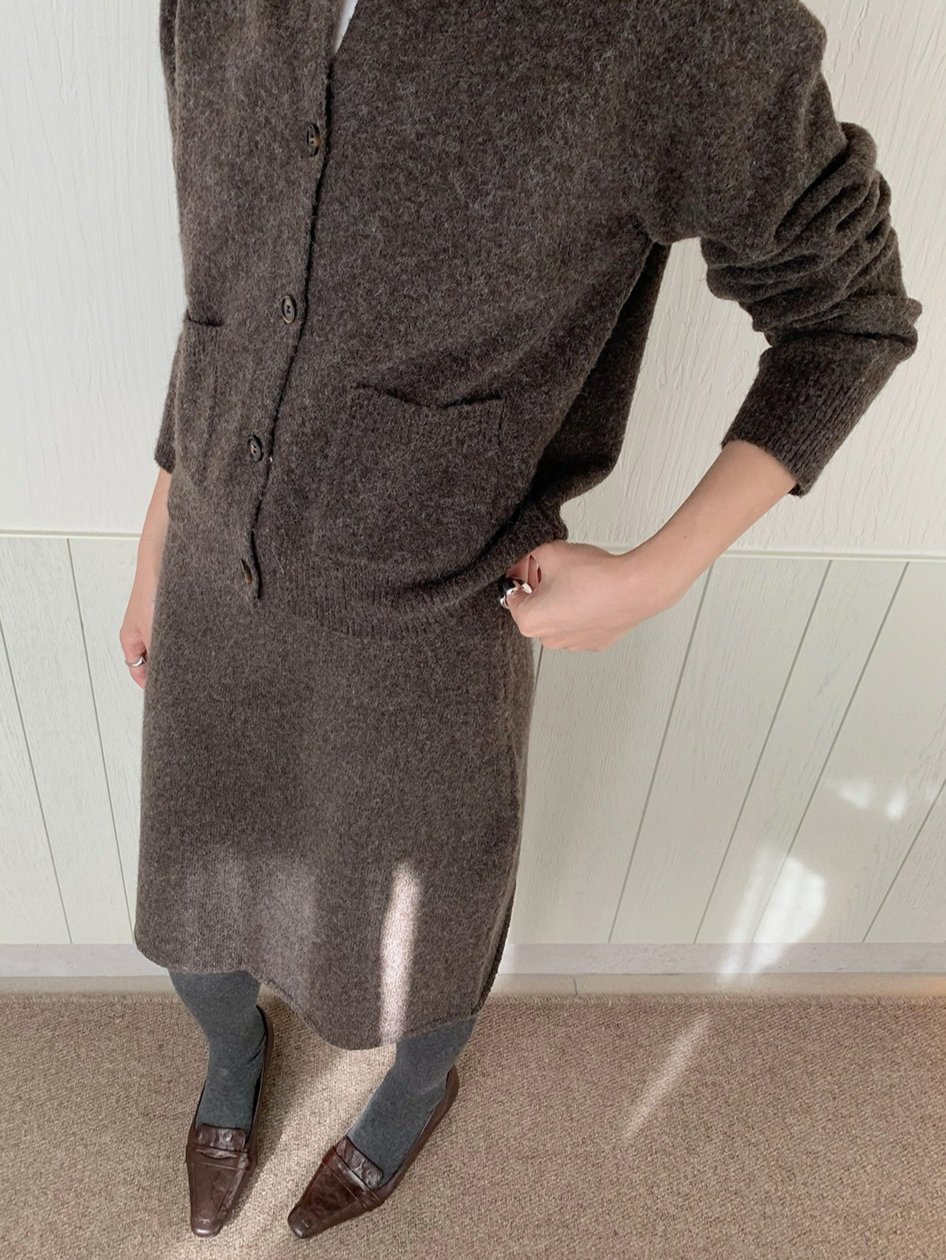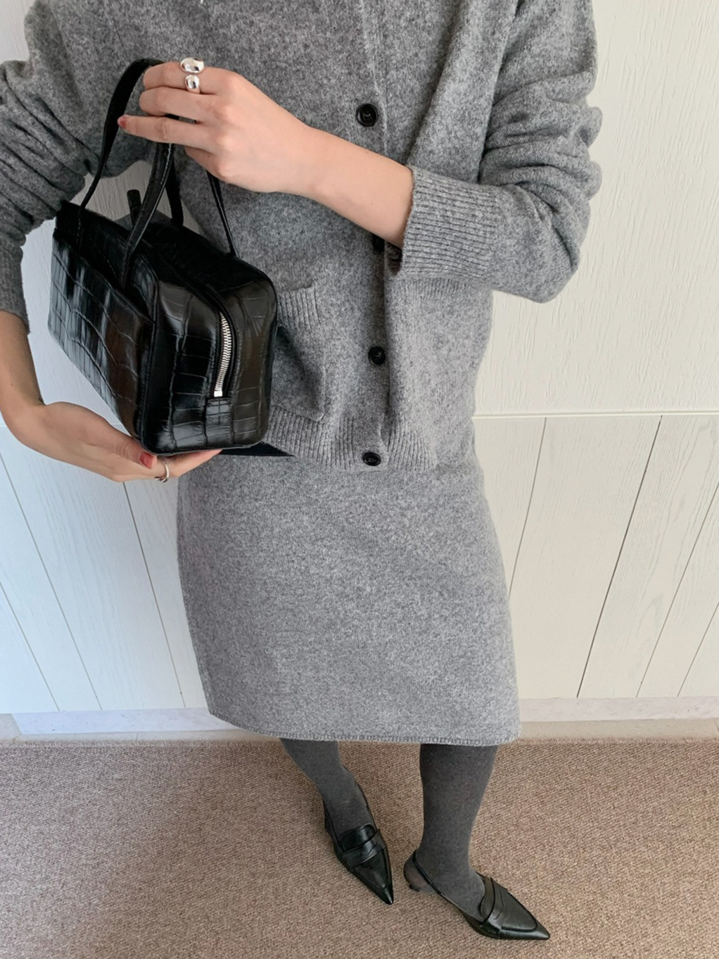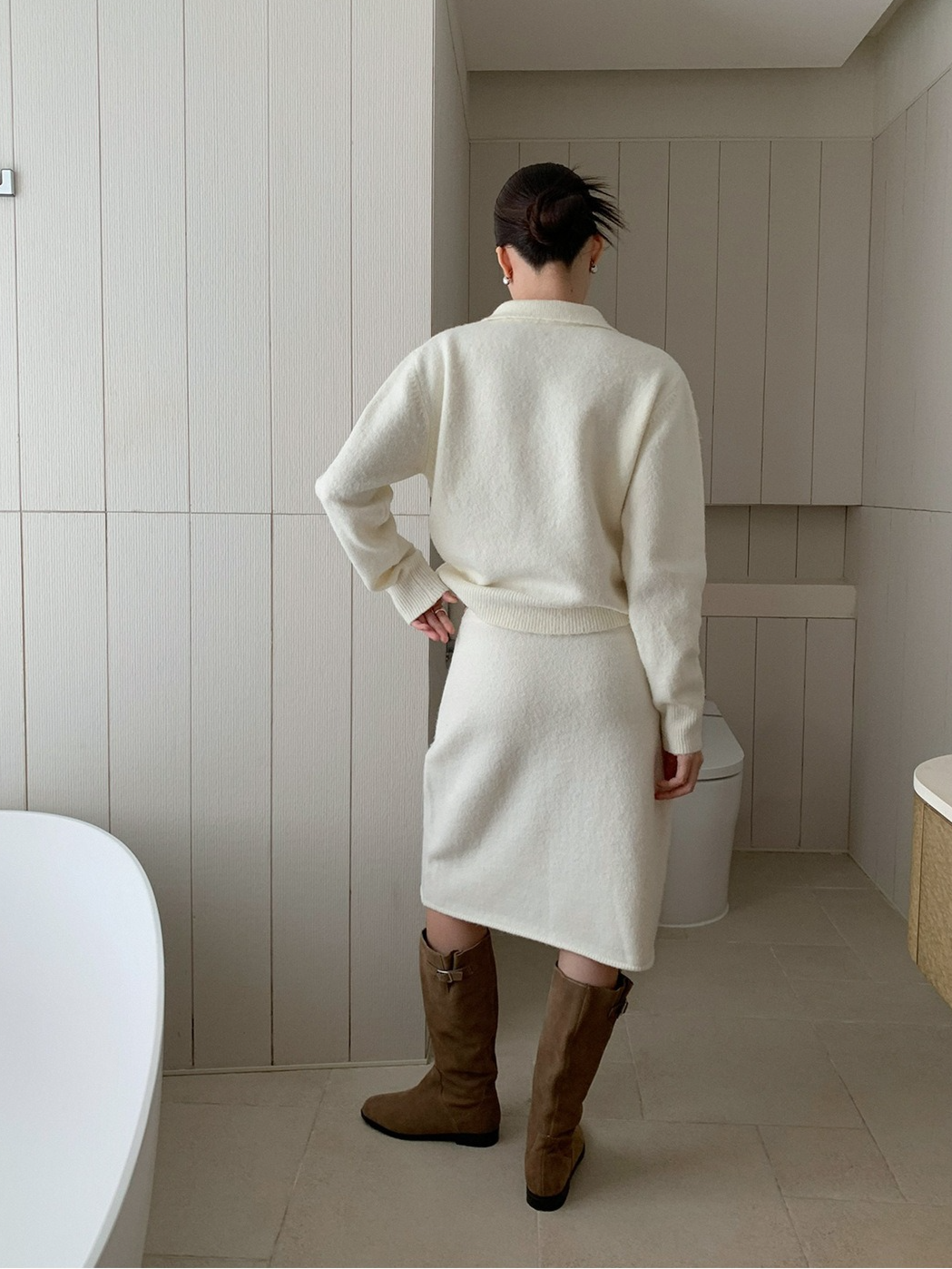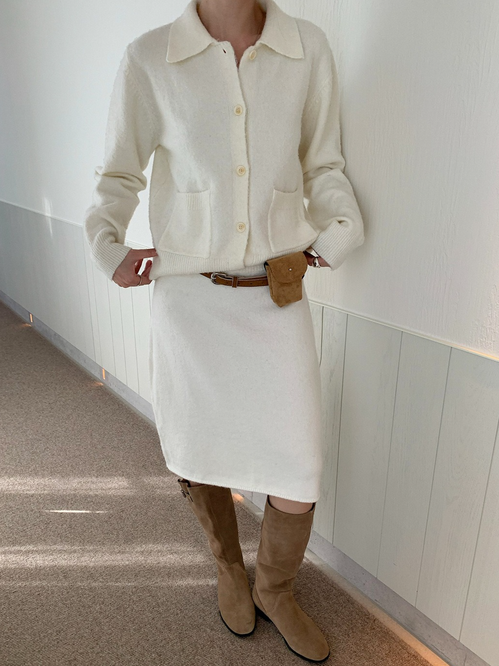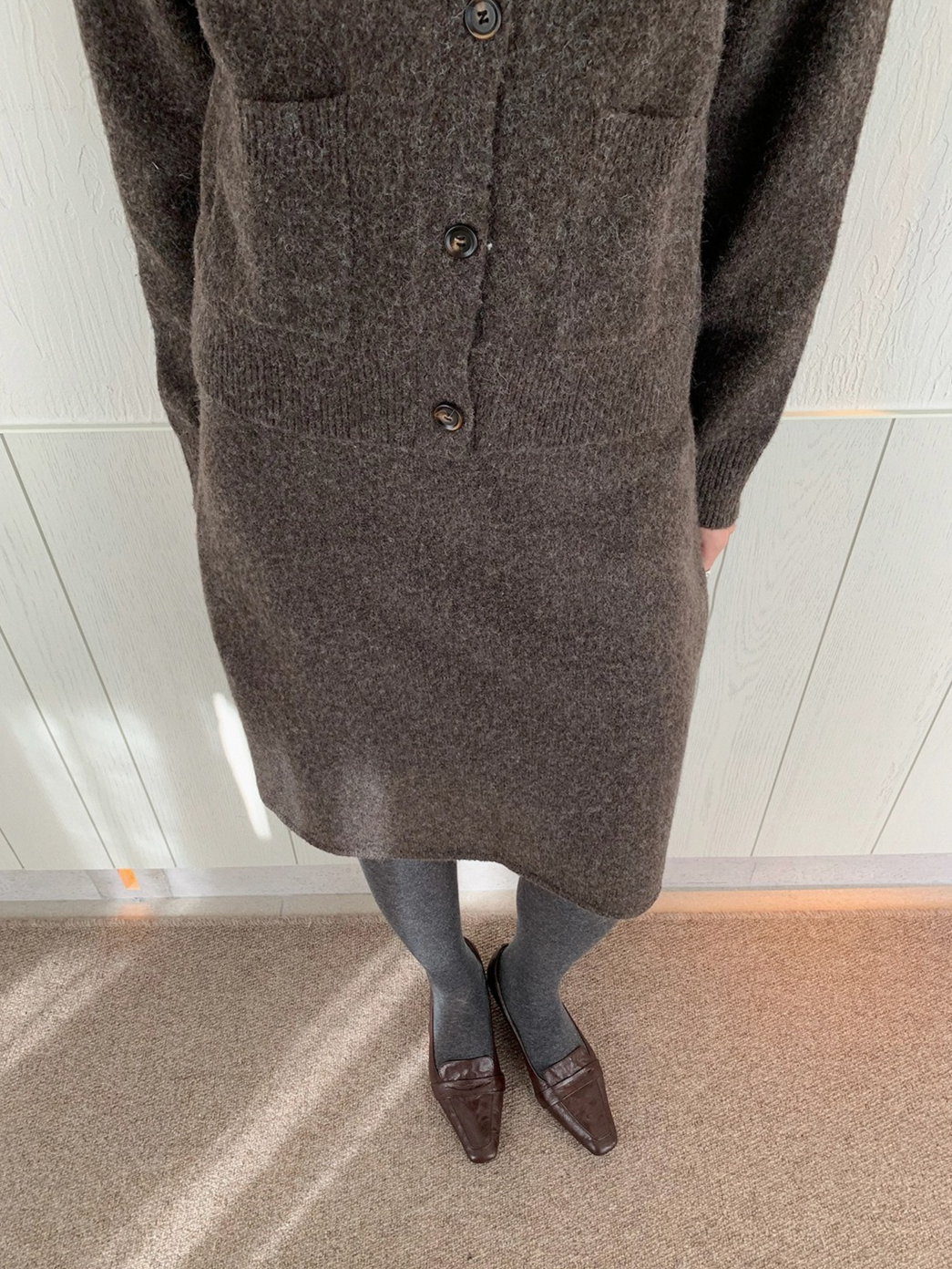 柔らかな風合いとほどよい厚みのあるニット素材が、秋冬のスタイリングにあたたかみを添えます。タイツやロングブーツとの相性はもちろん、スウェットやオーバーサイズシャツを合わせてラフに着こなすのもおすすめです。 同素材のトップスとセットアップで着用すれば、より洗練された印象に。 一枚あるだけでコーディネートの幅が広がり、季節の変わり目にも重宝するアイテムです。