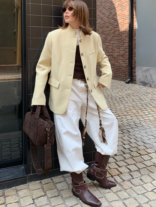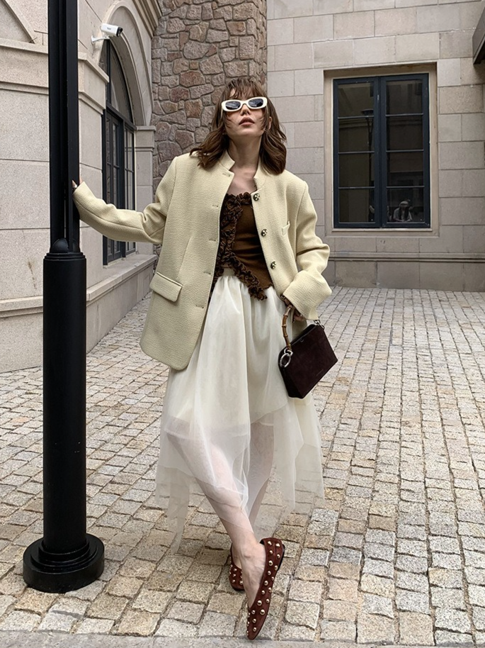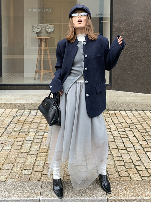 程よくデザインされたスタンドカラーが、モード感をプラス。デイリー使いはもちろんですが、オケ―ジョーンシーンでも活躍するジャケットです。
