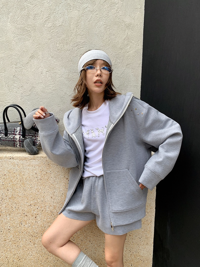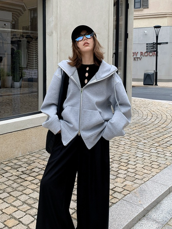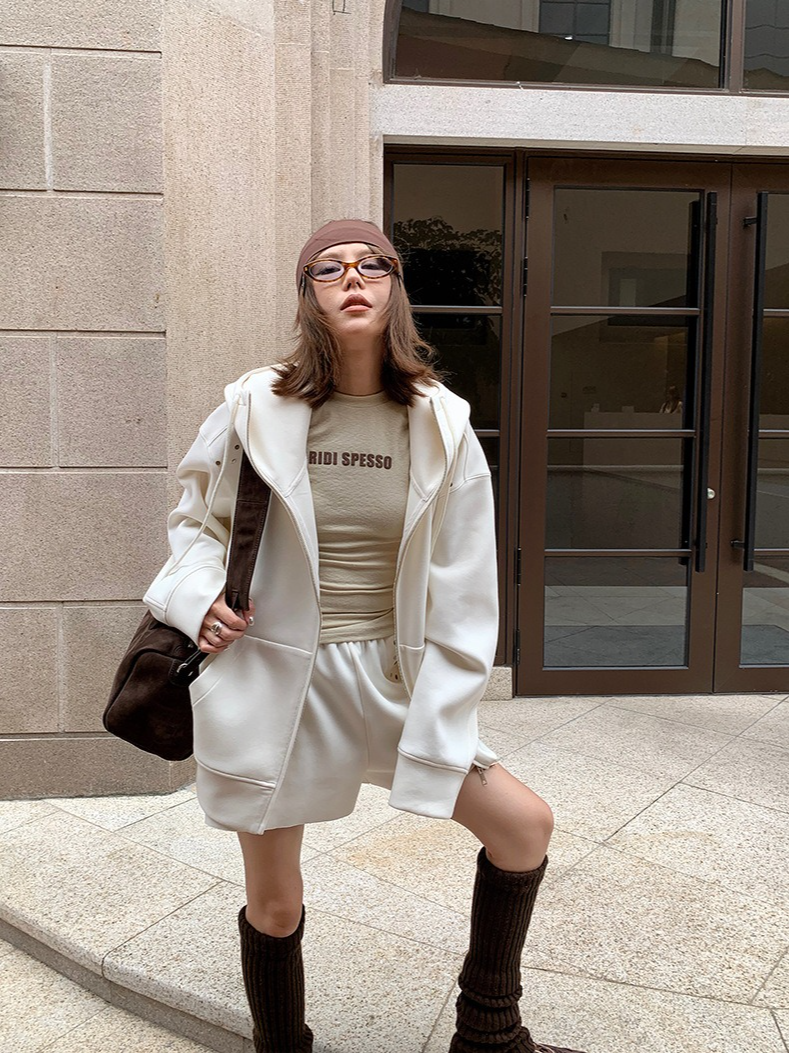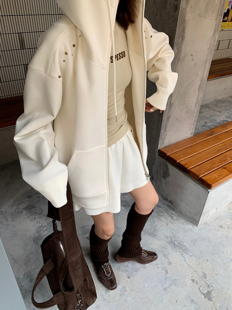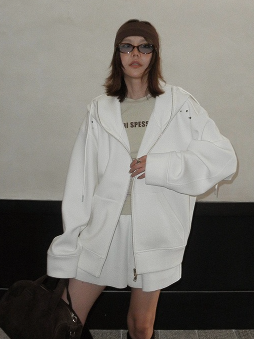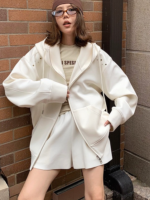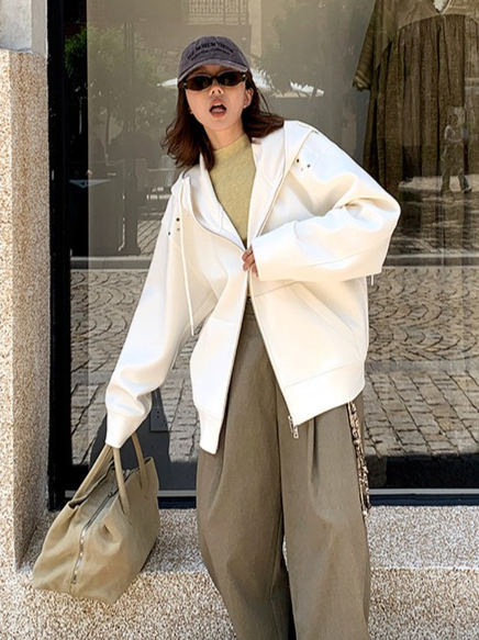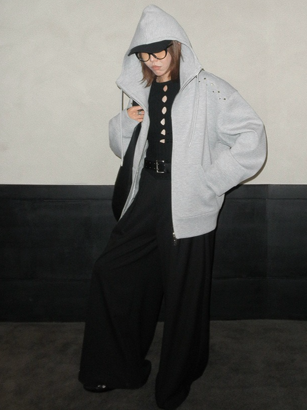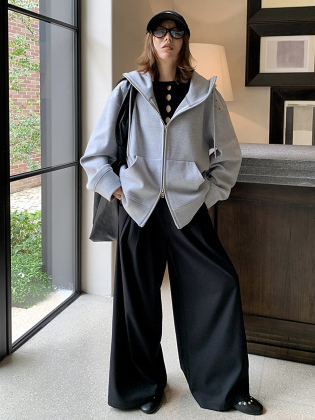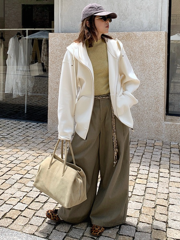 立体感のあるボックスシルエットとゆったりしたフードが魅力のジップアップパーカー。肩を落としたリラックス感のあるラインで、一枚でも羽織りやすく、抜け感のあるスタイルを叶えます。同素材のボトムスとセットアップで着用すれば、統一感のあるミニマルな着こなしに。カジュアルながらも洗練された印象を与え、街からリラックスタイムまで幅広く活躍する万能アイテムです。