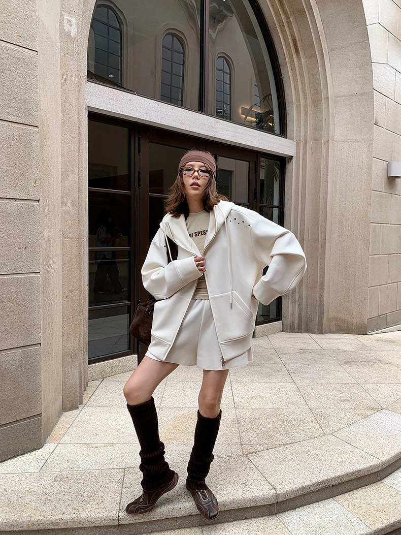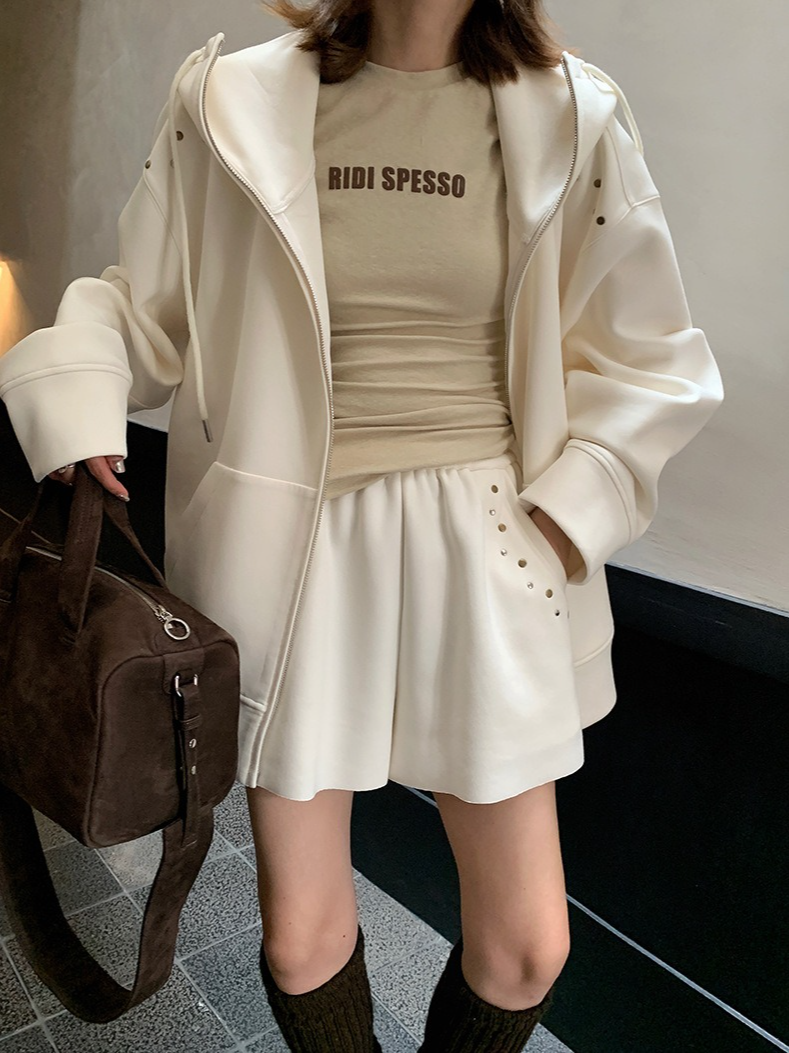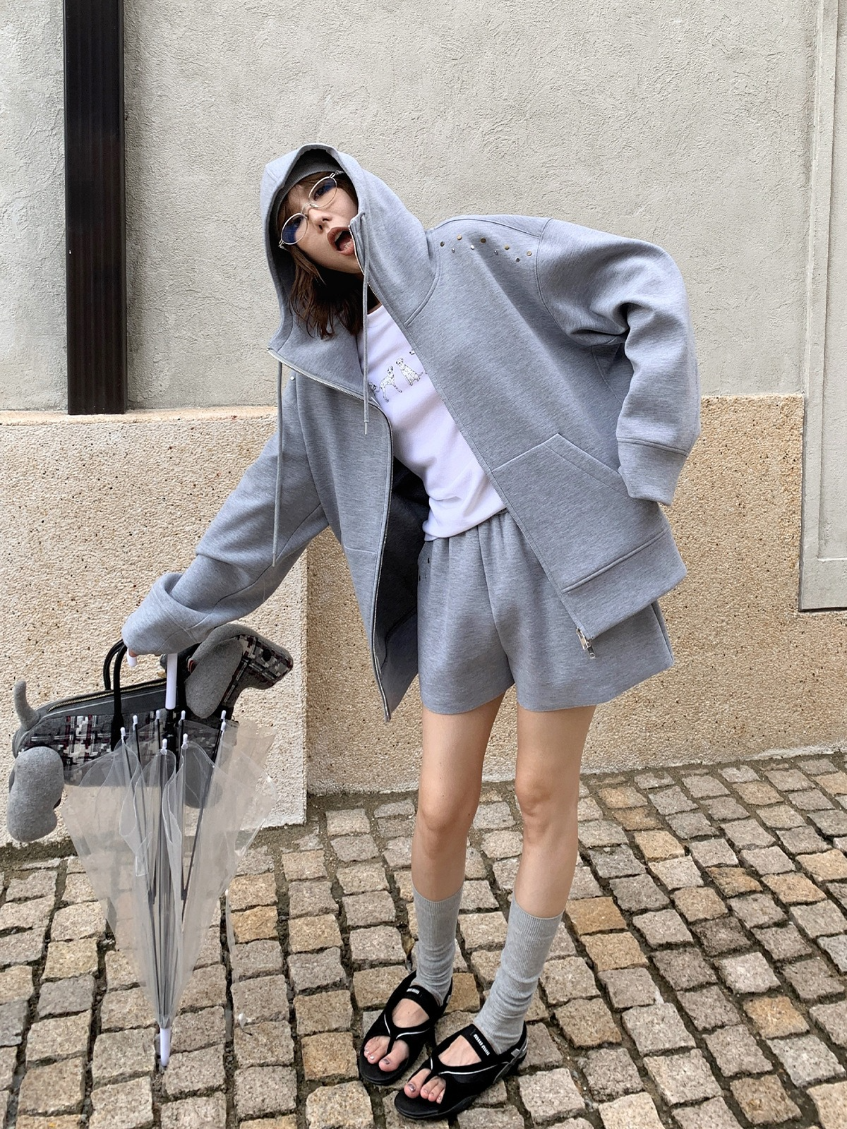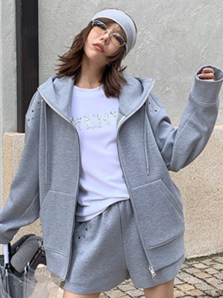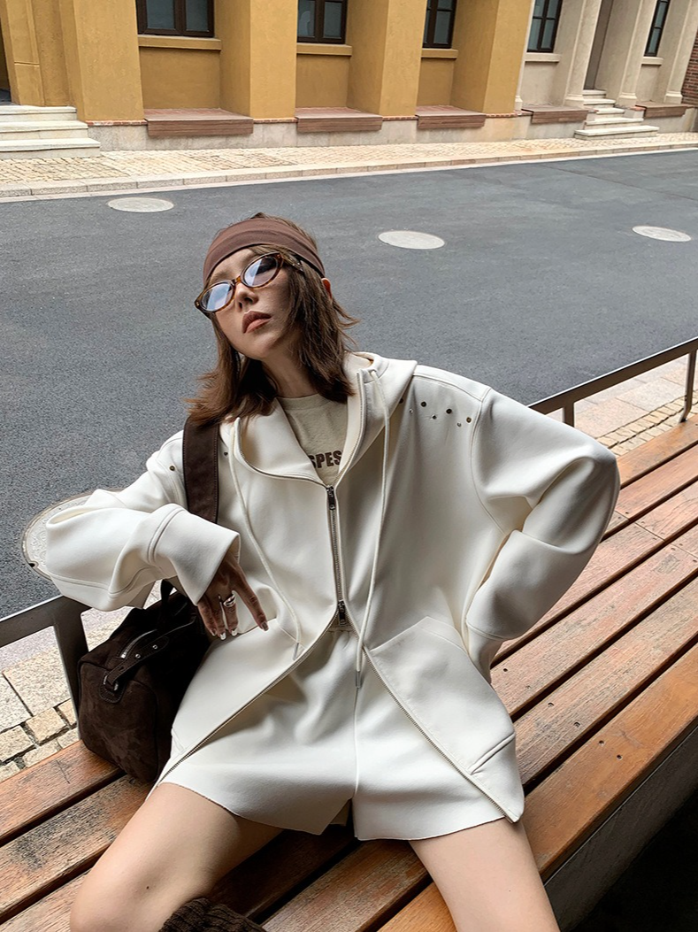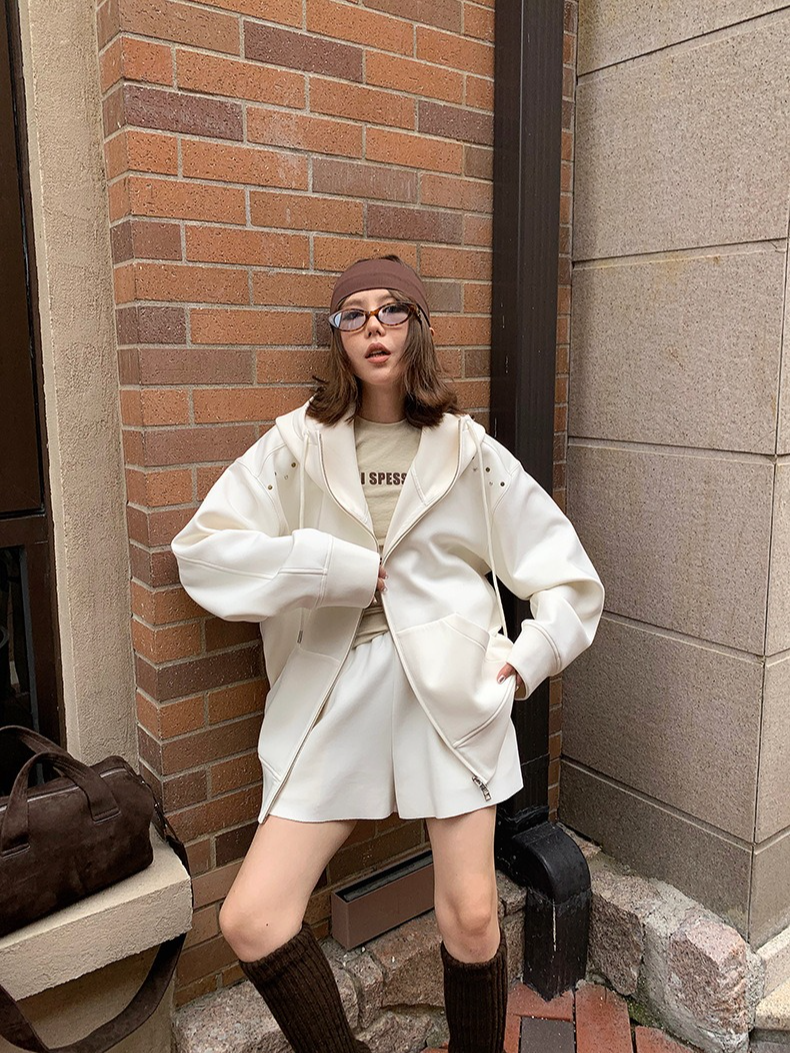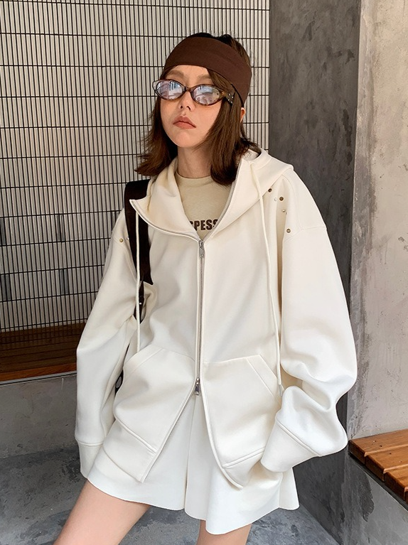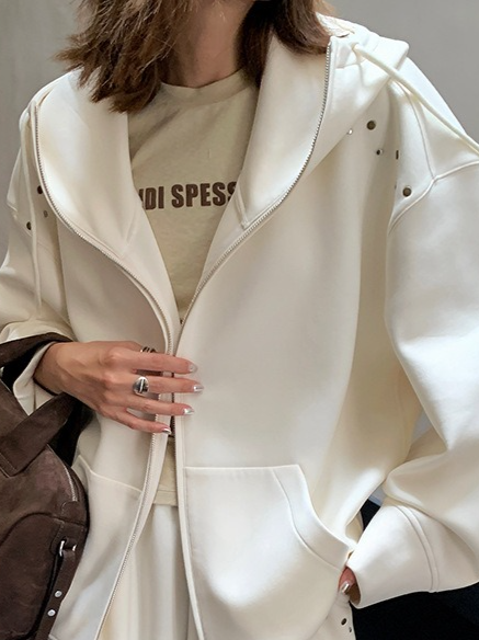 立体感のあるボックスシルエットとゆったりしたフードが魅力のジップアップパーカー。肩を落としたリラックス感のあるラインで、一枚でも羽織りやすく、抜け感のあるスタイルを叶えます。同素材のボトムスとセットアップで着用すれば、統一感のあるミニマルな着こなしに。カジュアルながらも洗練された印象を与え、街からリラックスタイムまで幅広く活躍する万能アイテムです。