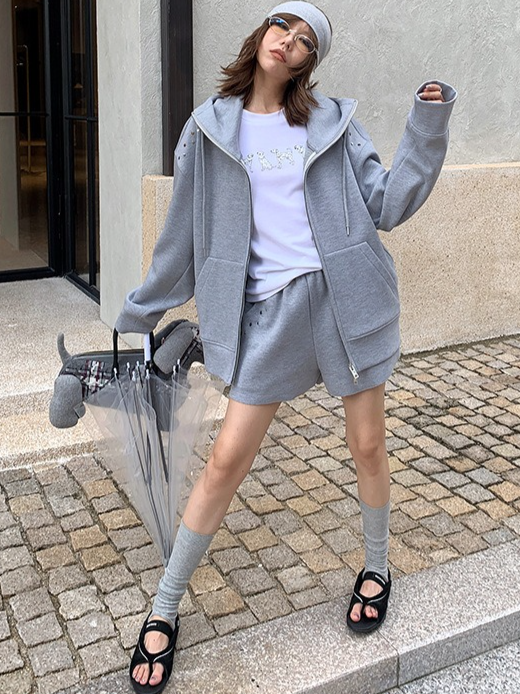 リラックス感と洗練さを兼ね備えたスウェットショートパンツ。程よい厚みのある生地で、シルエットはゆったりとしながらもラフすぎない印象に仕上げています。ウエストはゴム仕様でストレスフリーな着心地を実現し、デイリーから休日のお出かけまで幅広く活躍。セットアップのフーディと合わせれば、統一感のある旬のスタイルに。単品使いでもトップスを選ばず、カジュアルからモードな着こなしまで自在に楽しめる一着です。