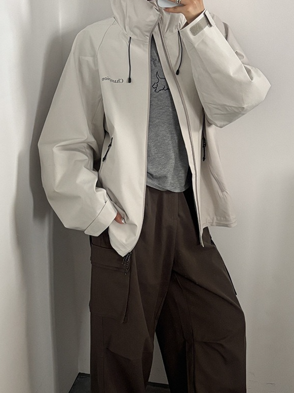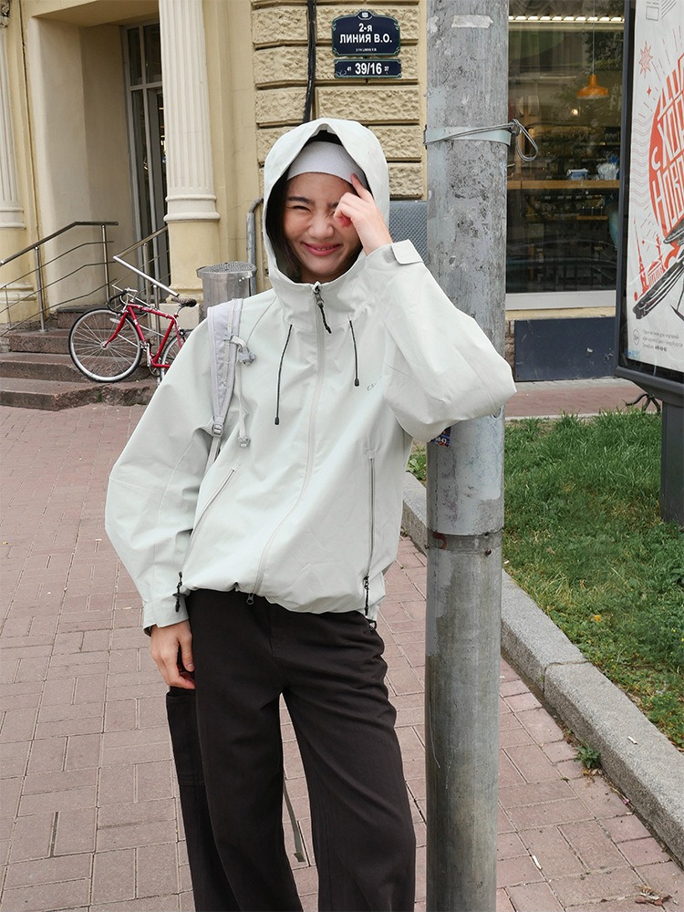 ミニマルなデザインと立体的なフォルムが魅力のマウンテンパーカー。