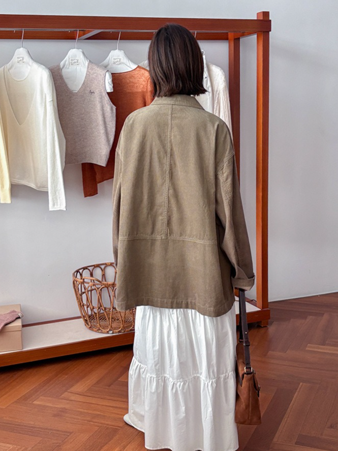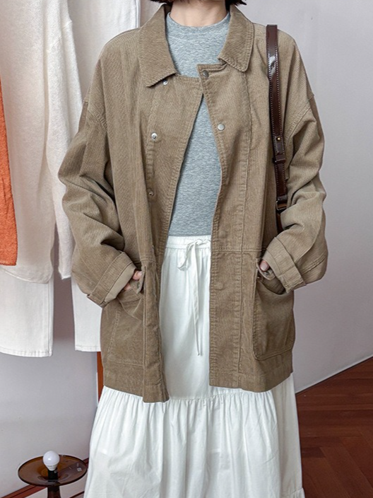 柔らかなコーデュロイ素材を使用した、今季らしいオーバーサイズコーデュロイジャケット。肩の落ちたルーズなシルエットが、羽織るだけで抜け感のあるスタイルに。テーラード仕立てながらも堅すぎず、Tシャツやニットとのレイヤードも楽しめる万能アイテムです。深めのスリットや前後差のある裾が、軽やかな印象をプラス。パンツにもスカートにも合わせやすく、大人のカジュアルにちょうどいい一着。