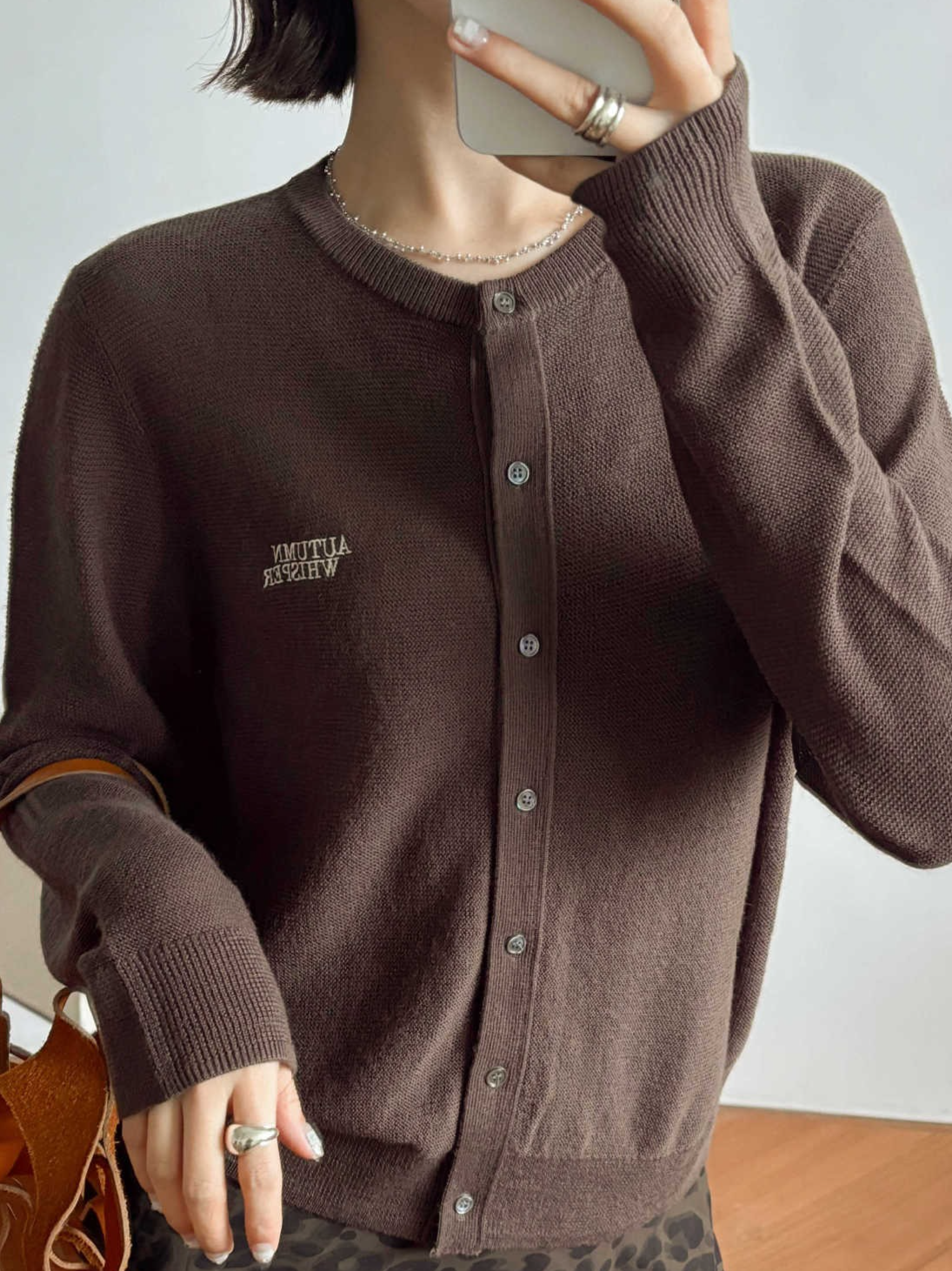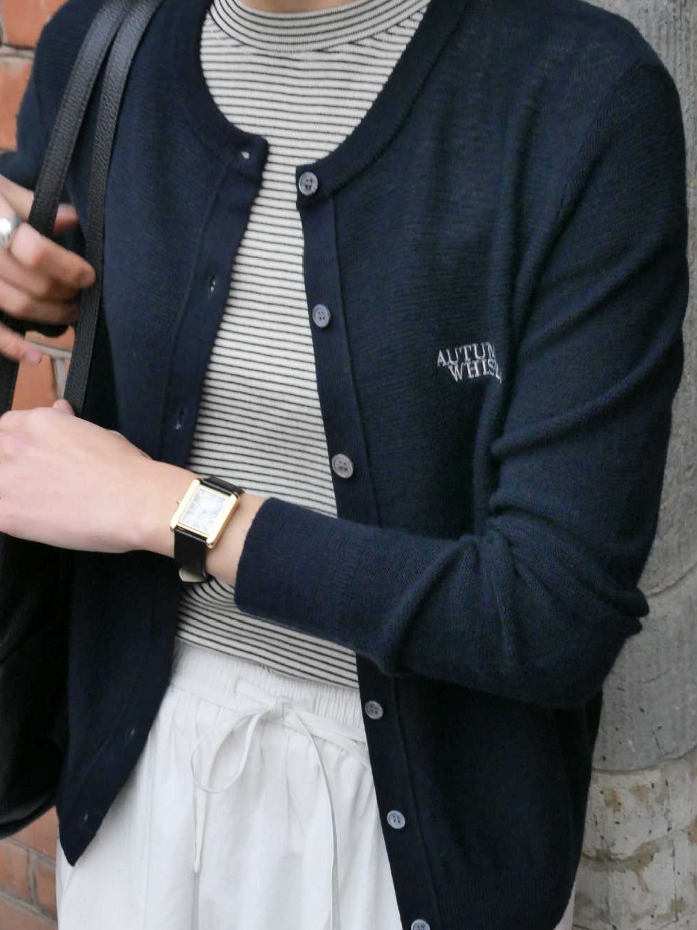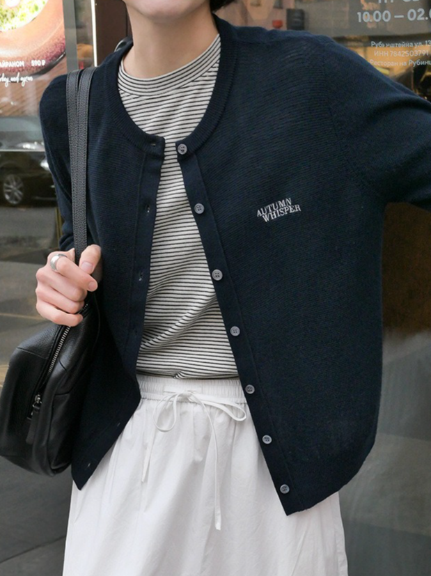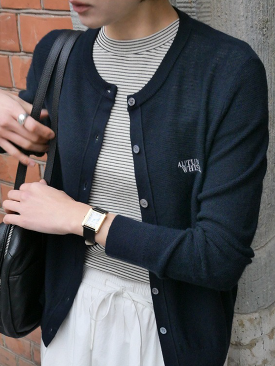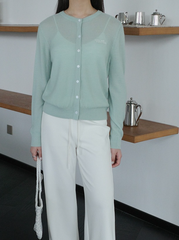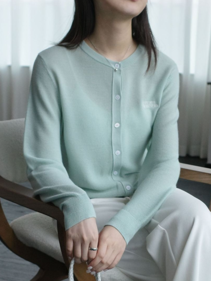控えめな透け感とミニマルなデザインが魅力のクルーネックカーディガン。クラシックなフォルムに、ミニマルな縁取りが上品な抜け感を演出。胸元のワンポイント刺繍が、シンプルな中に上品なニュアンスをプラスします。薄手で柔らかな素材感は、季節の変わり目にも重宝し、レイヤードスタイルにもおすすめ。パンツにもスカートにも合わせやすく、カジュアルからキレイめまで幅広いコーデに活躍する一枚です。