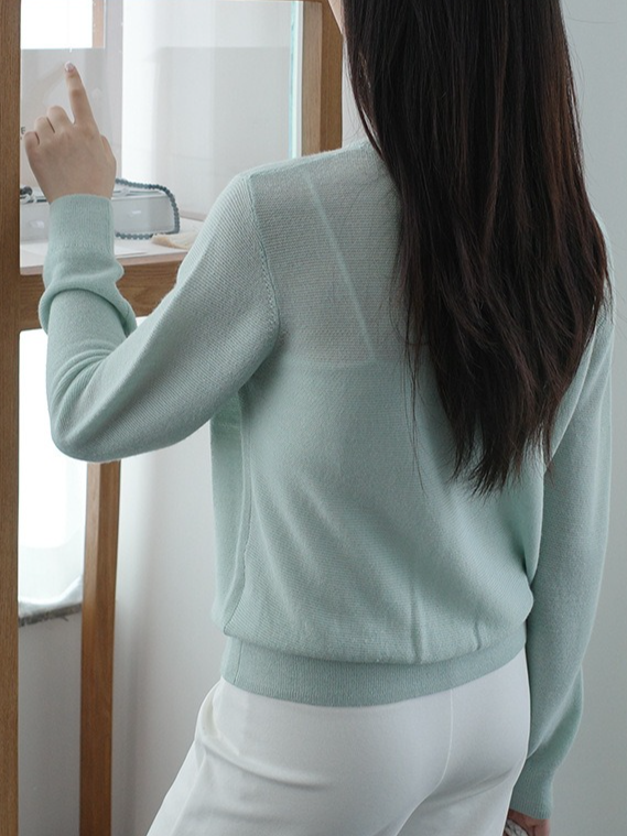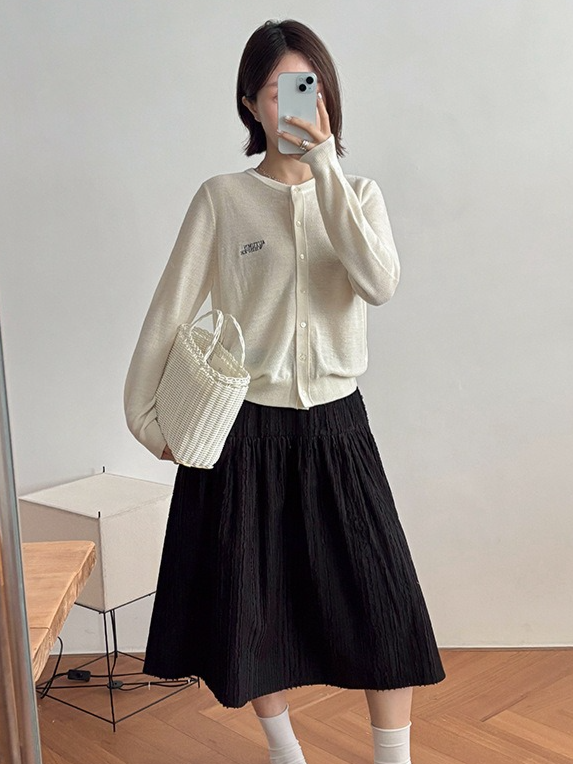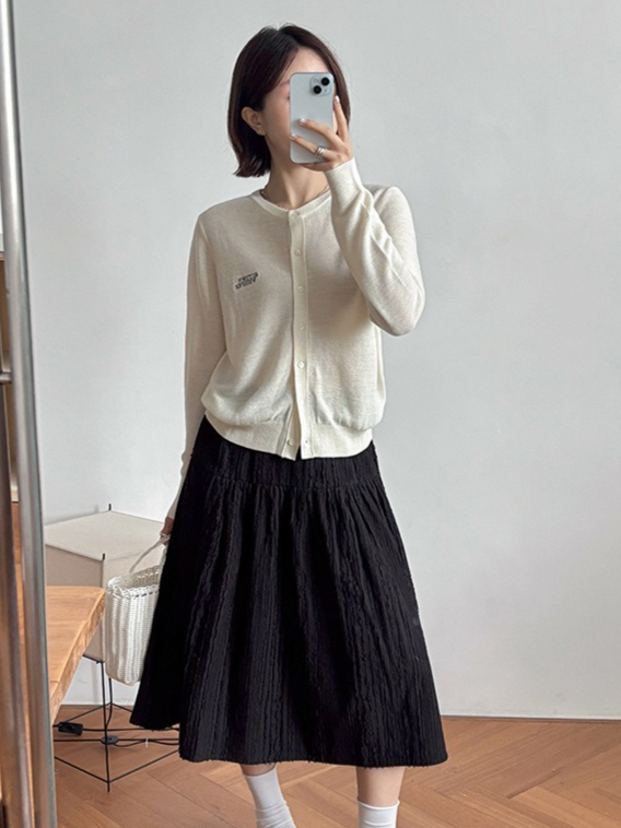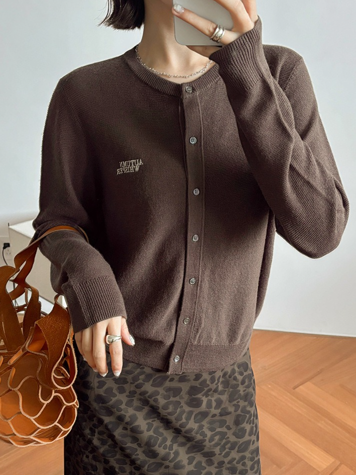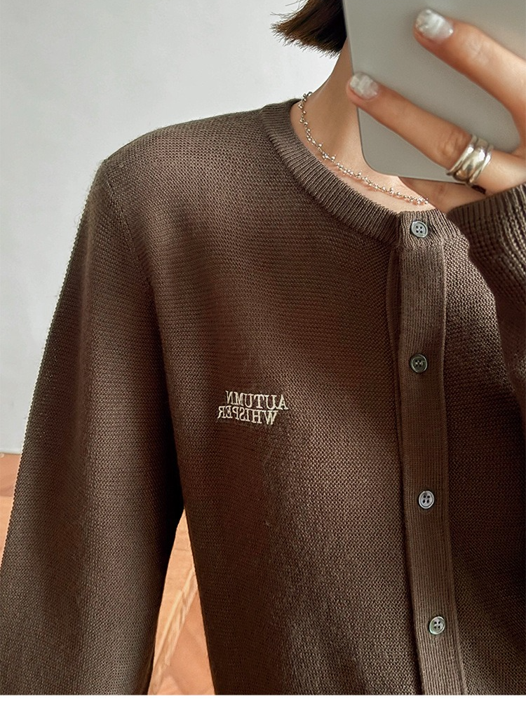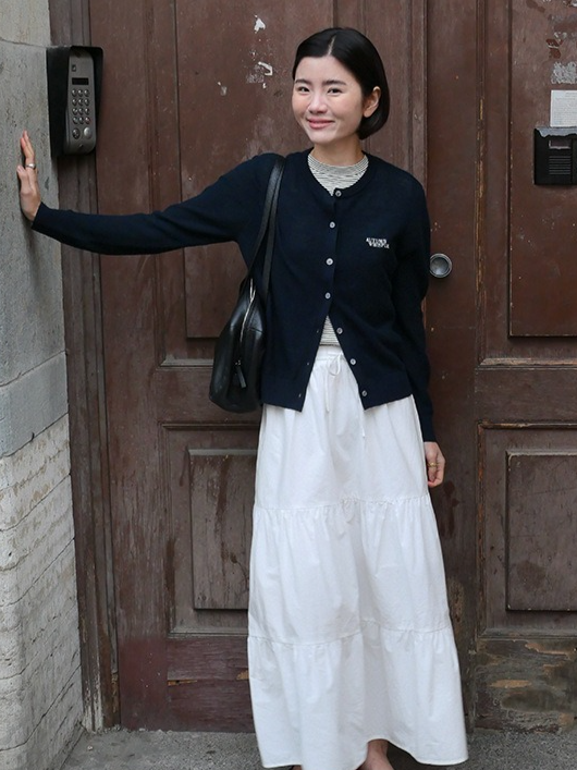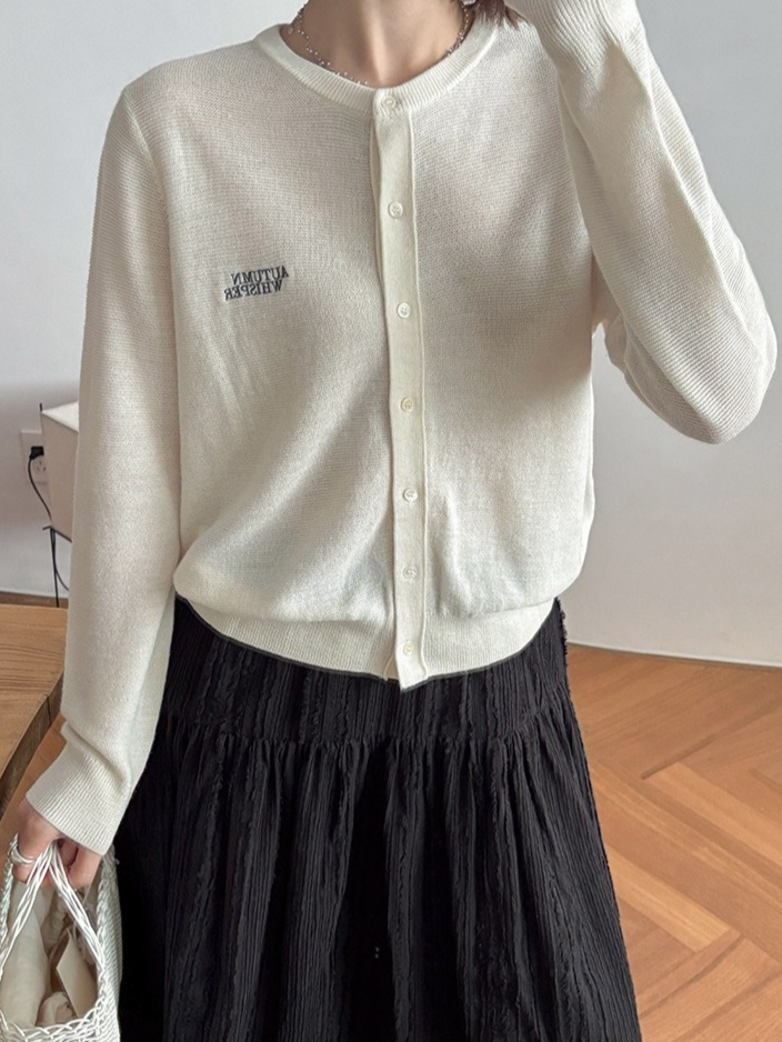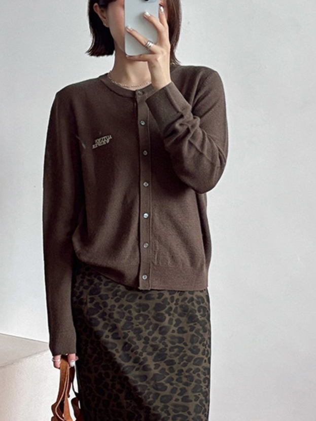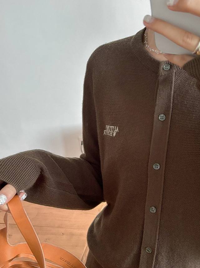 控えめな透け感とミニマルなデザインが魅力のクルーネックカーディガン。クラシックなフォルムに、ミニマルな縁取りが上品な抜け感を演出。胸元のワンポイント刺繍が、シンプルな中に上品なニュアンスをプラスします。薄手で柔らかな素材感は、季節の変わり目にも重宝し、レイヤードスタイルにもおすすめ。パンツにもスカートにも合わせやすく、カジュアルからキレイめまで幅広いコーデに活躍する一枚です。