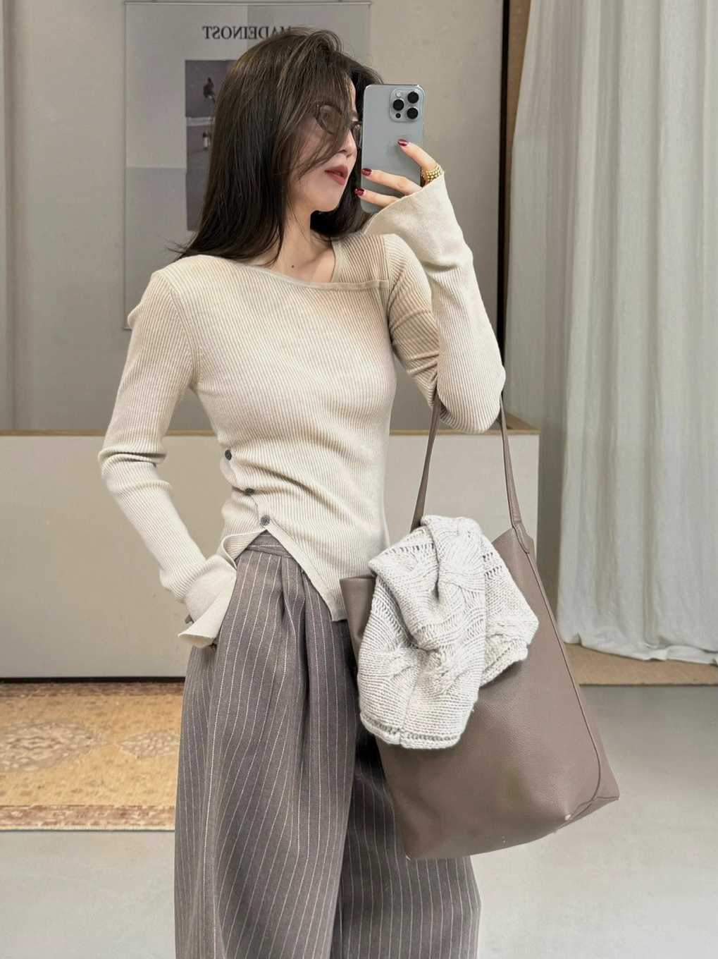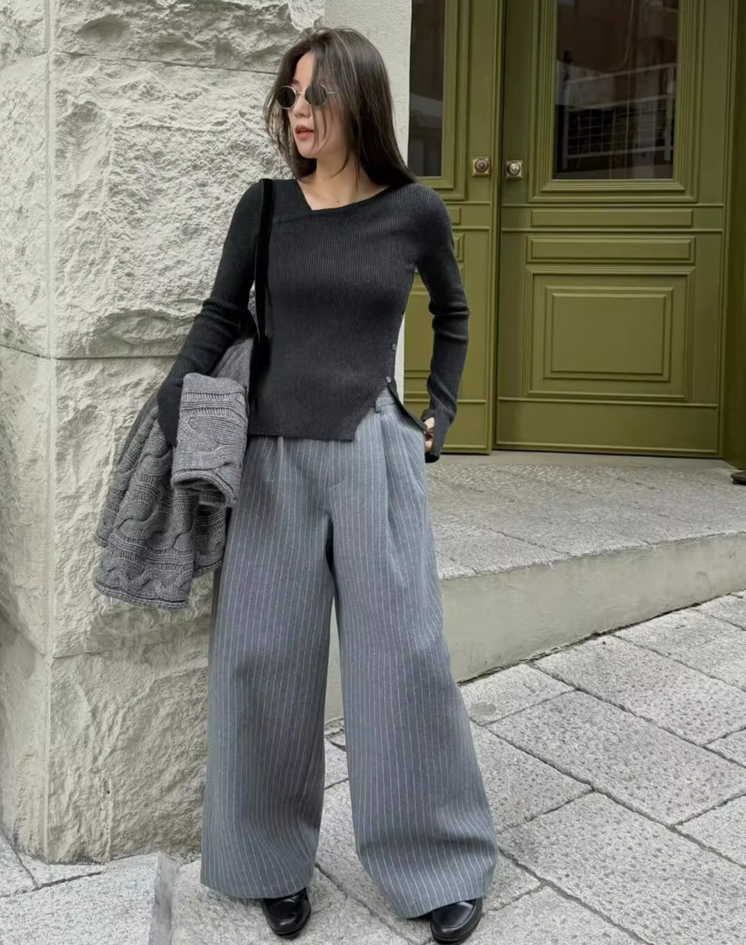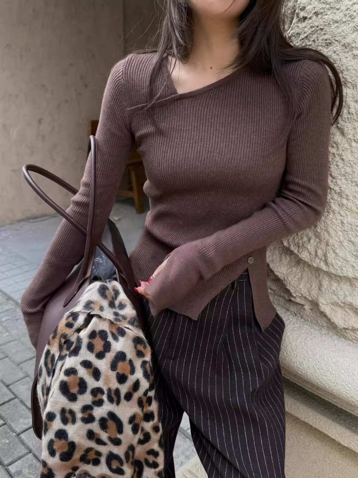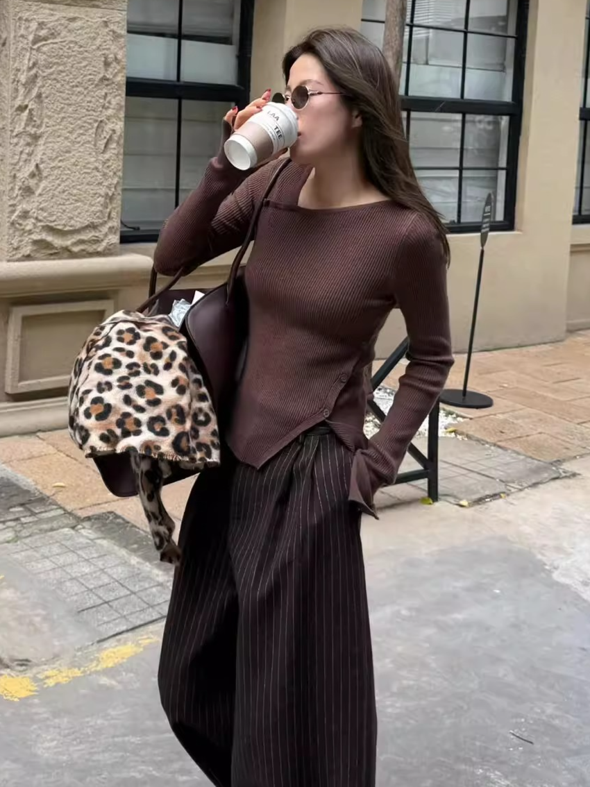 大胆なアシメトリーデザインが目を惹くリブニットトップス。程よくフィットするシルエットがボディラインを美しく引き立て、女性らしさと抜け感を絶妙に演出してくれます。シンプルながら構築的なディテールで、1枚で主役になる存在感。デニムと合わせてカジュアルに、スラックスでモードに振っても様になる、スタイリング自在のアイテムです。季節の変わり目にも重宝する一着。