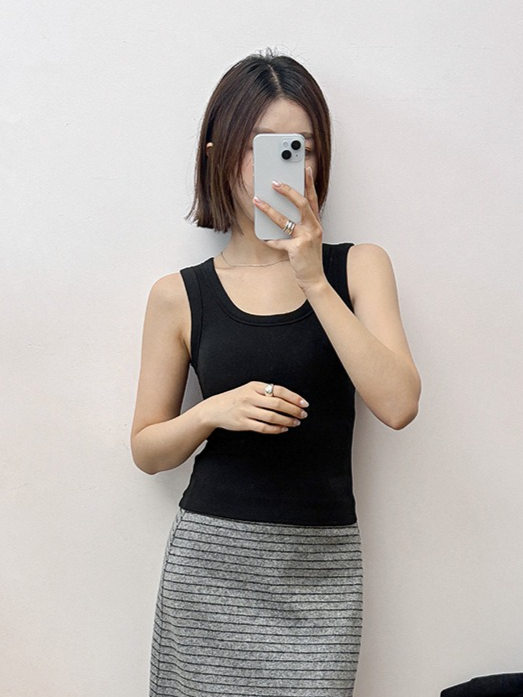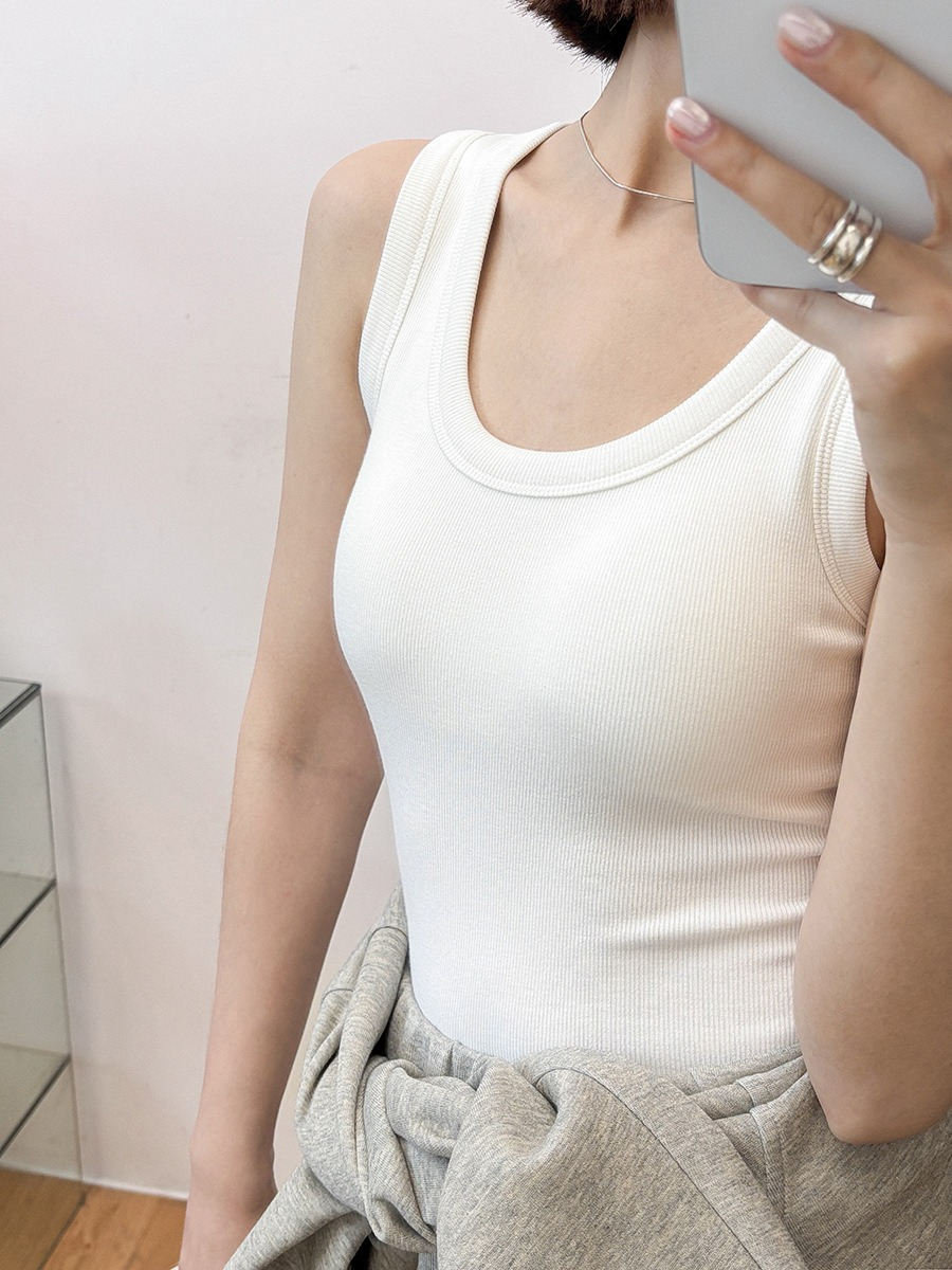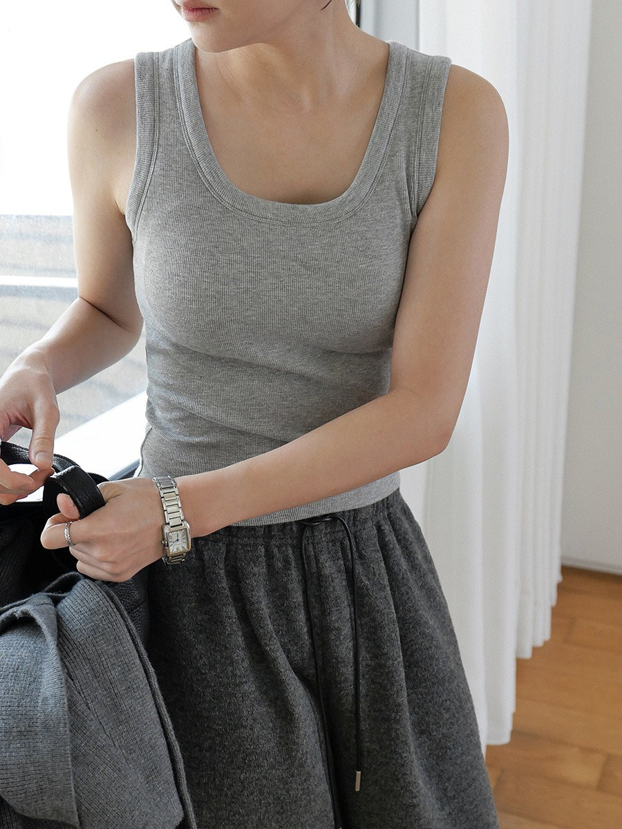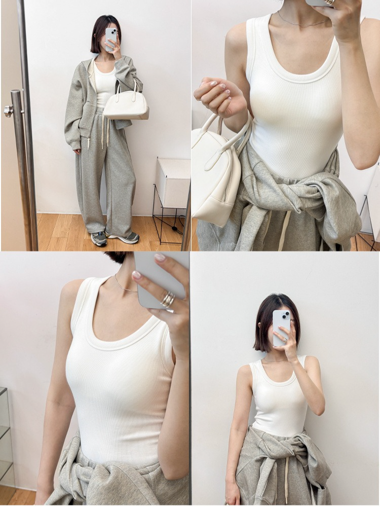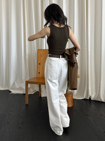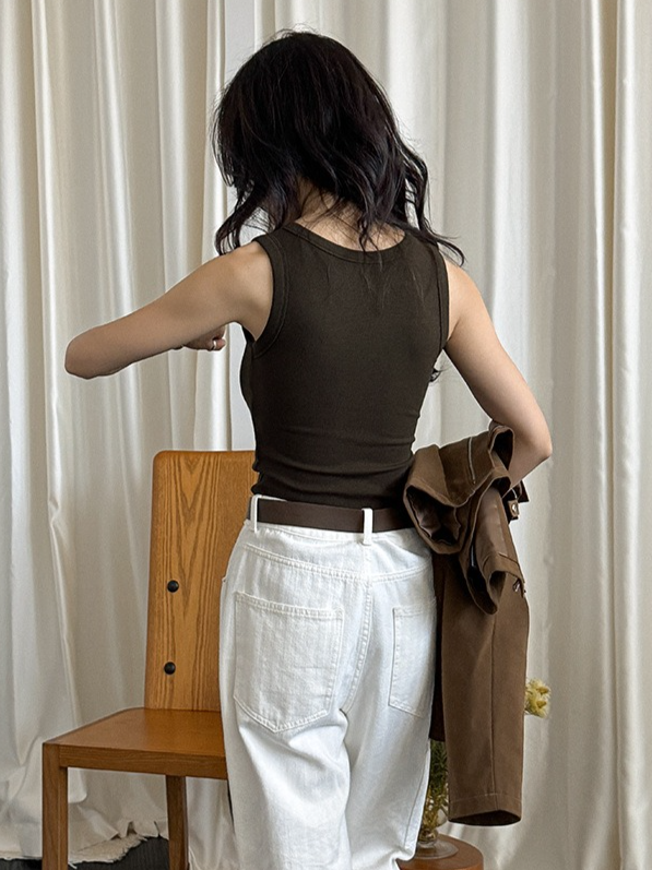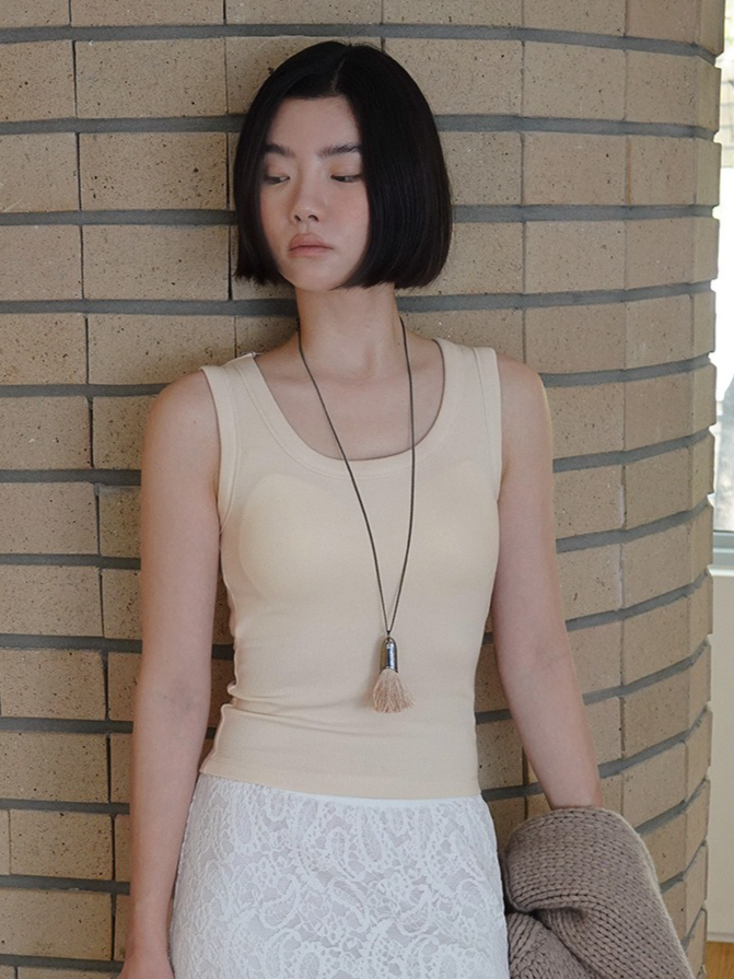 身体にやさしく寄り添う、なめらかなリブ生地を使用したカップ付きタンクトップ。しなやかで程よい伸縮性のある生地が、女性らしいラインを自然に引き立ててくれます。カップ付きなので1枚でも着用でき、インナーとしても活躍しレイヤードしやすいのも魅力。シンプルながらも上質感が漂い、デイリーからリラックスシーンまで幅広くシーズンレスで着用できる1着です。