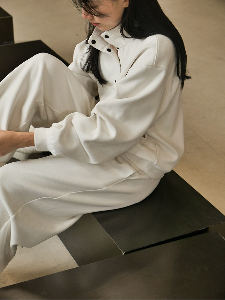 躍動のある立体リラックスシルエットが魅力のカーブラインスウェットパンツ。