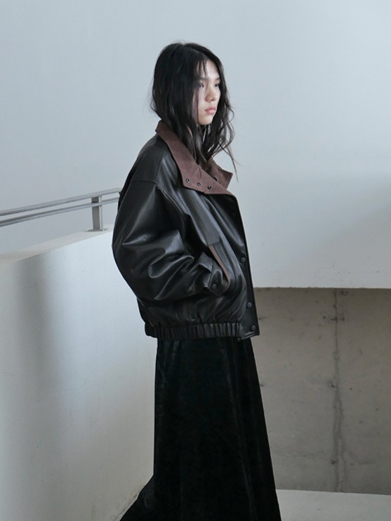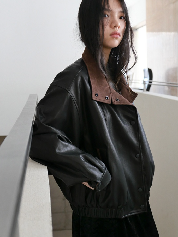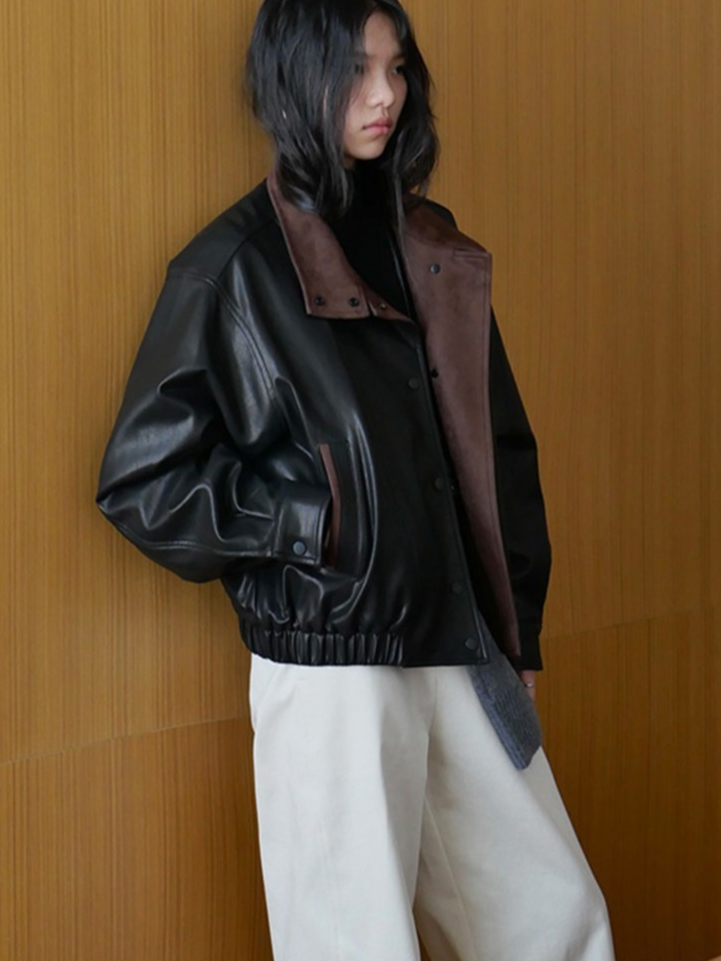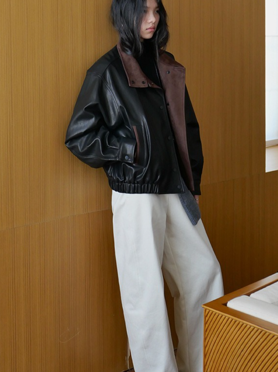 バイカラーフェイクレザーブルゾン 2194