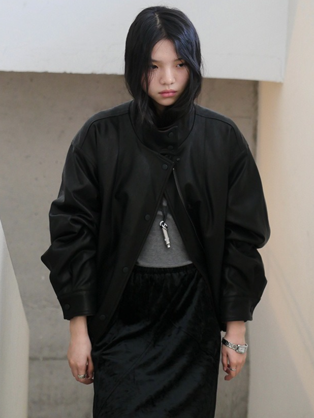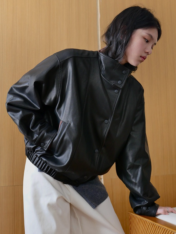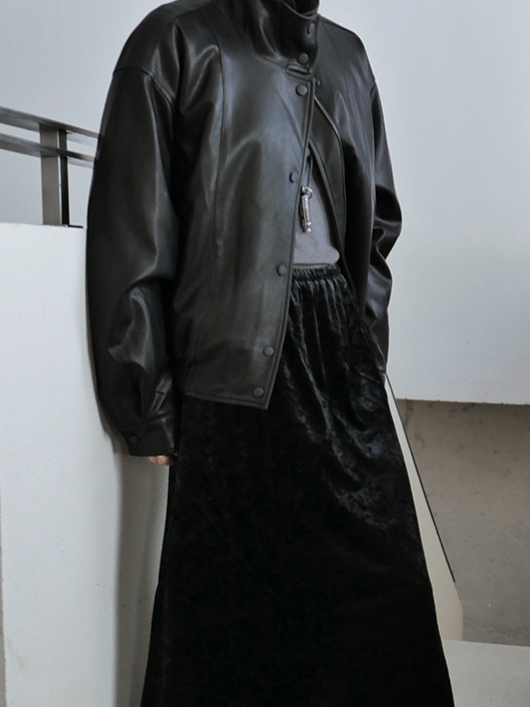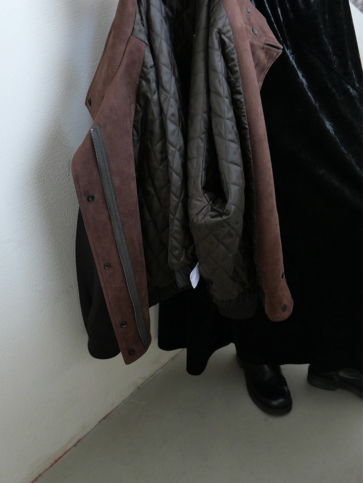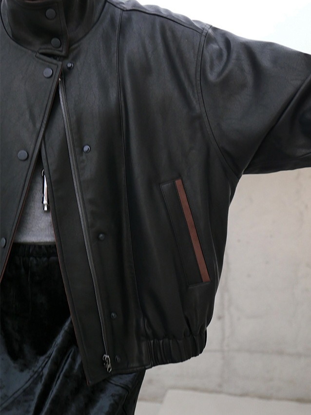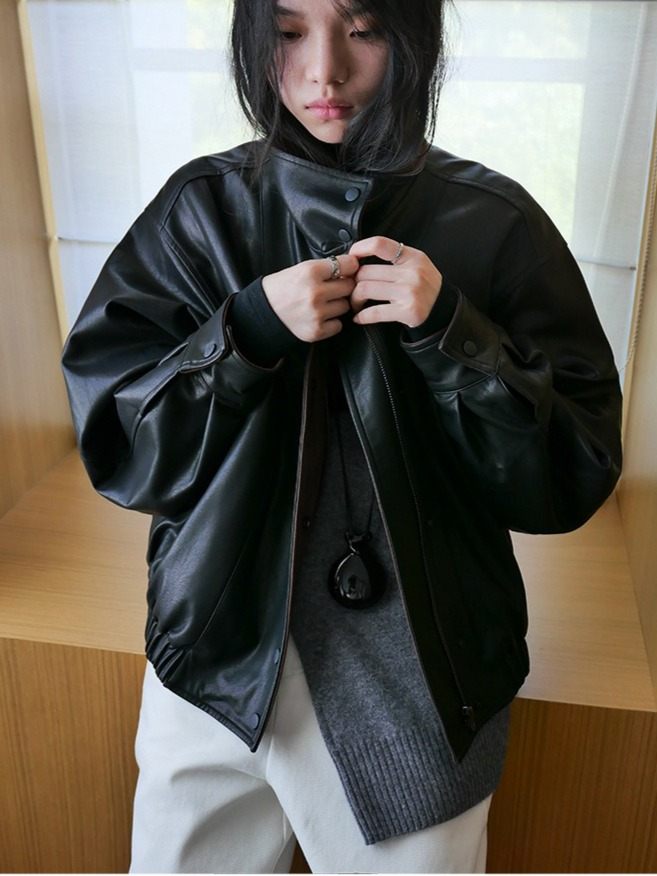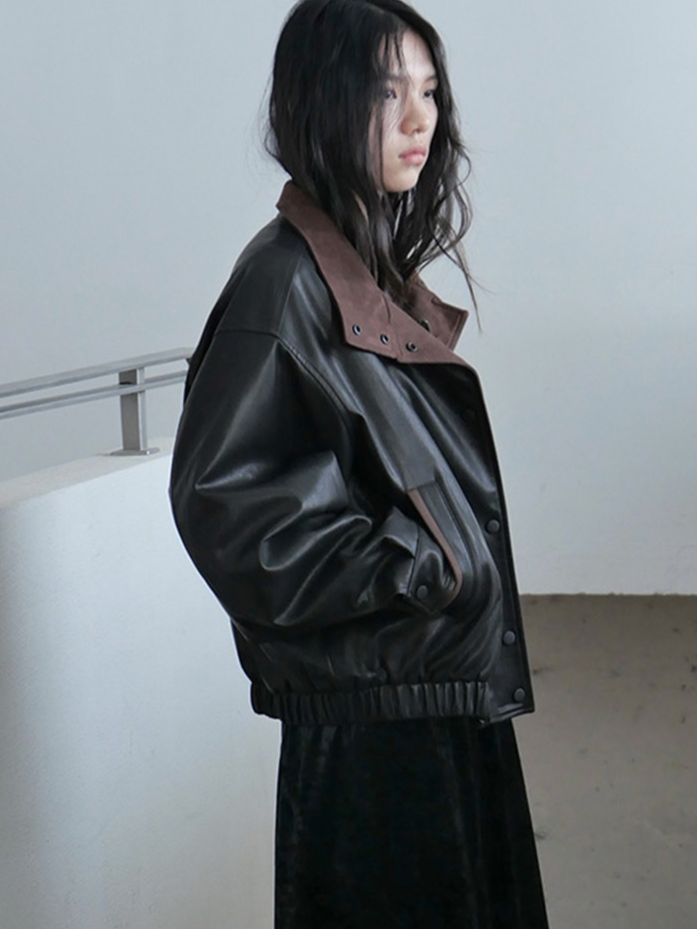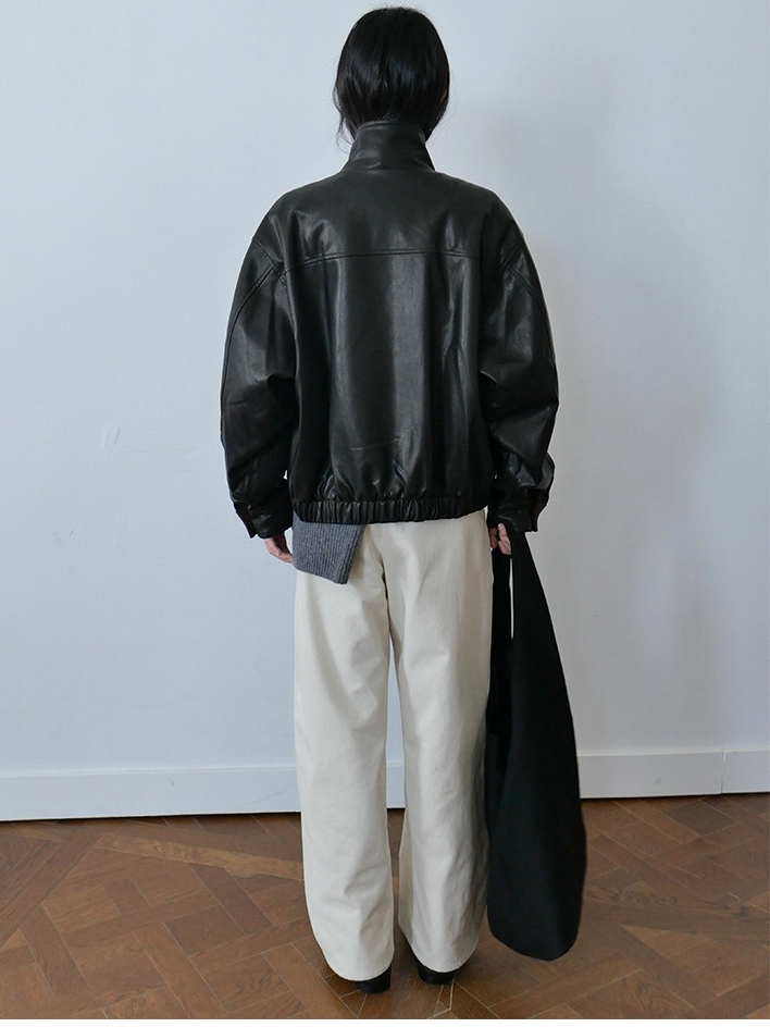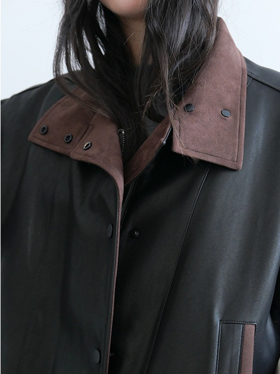 しなやかな生地にレザー風加工を施した、軽くて柔らかいフェイクレザー素材。リアルレザーのような風合いでありながら、扱いやすい素材感です。裏地にキルティングをプラスし、防寒要素もプラス。ラフに着るだけでスタイリングがきまり、カジュアルながらも都会的な雰囲気を感じさせる一着です。秋冬の主役アウターとして、トレンドと機能性を両立させた一枚です。
