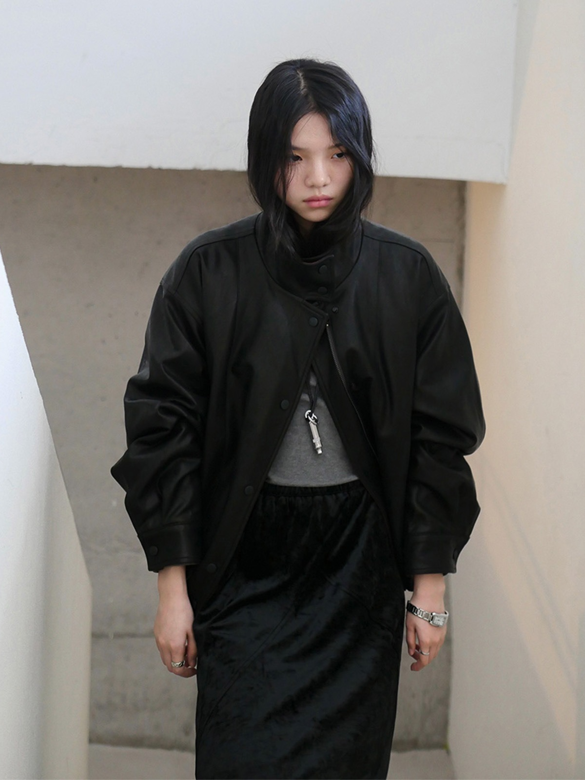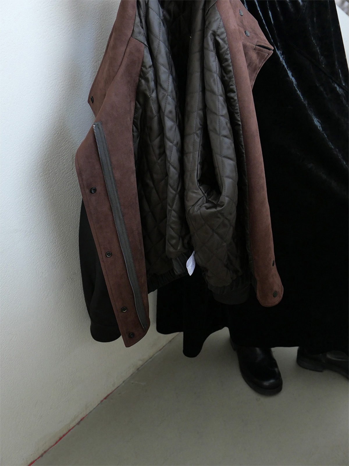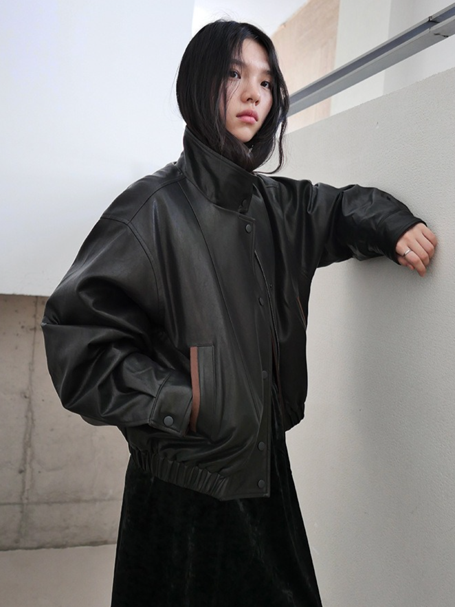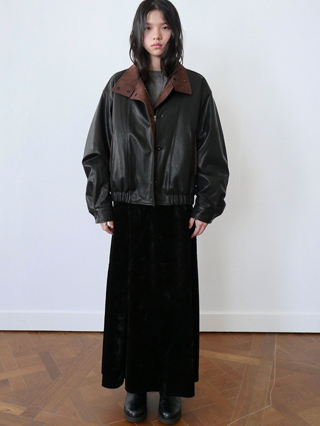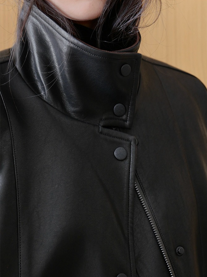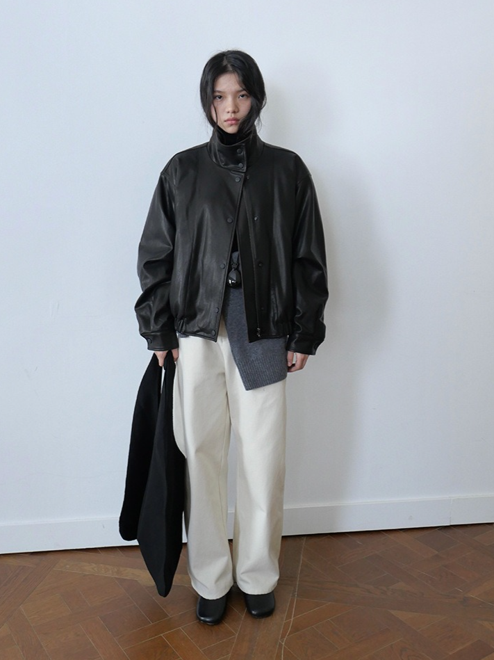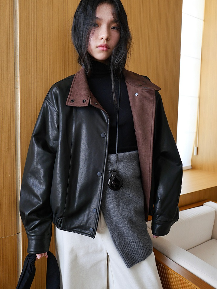 しなやかな生地にレザー風加工を施した、軽くて柔らかいフェイクレザー素材。リアルレザーのような風合いでありながら、扱いやすい素材感です。裏地にキルティングをプラスし、防寒要素もプラス。ラフに着るだけでスタイリングがきまり、カジュアルながらも都会的な雰囲気を感じさせる一着です。秋冬の主役アウターとして、トレンドと機能性を両立させた一枚です。