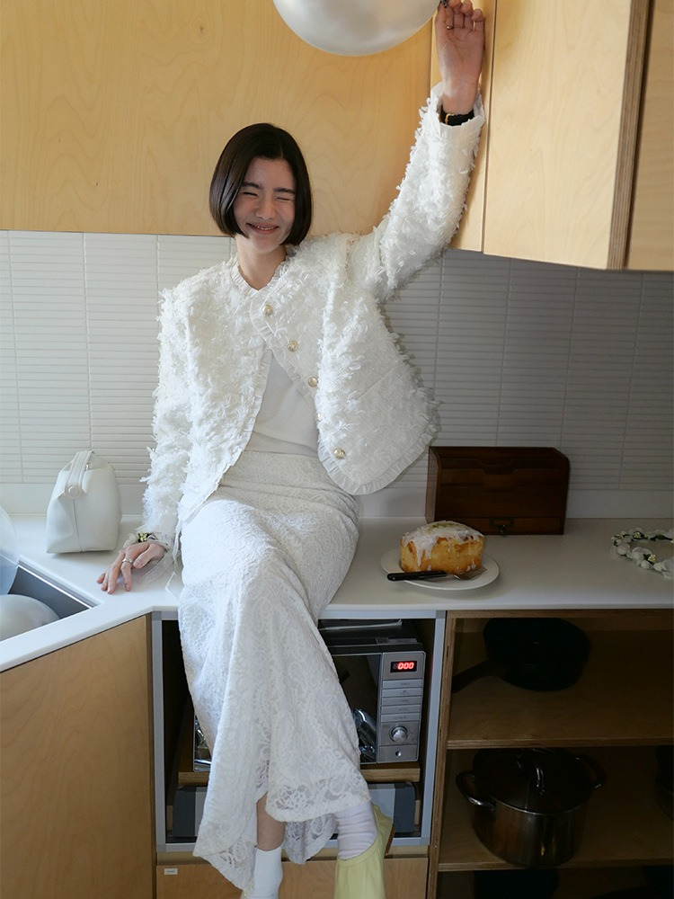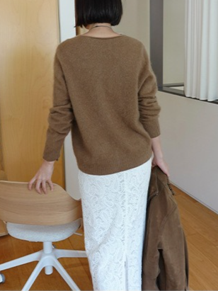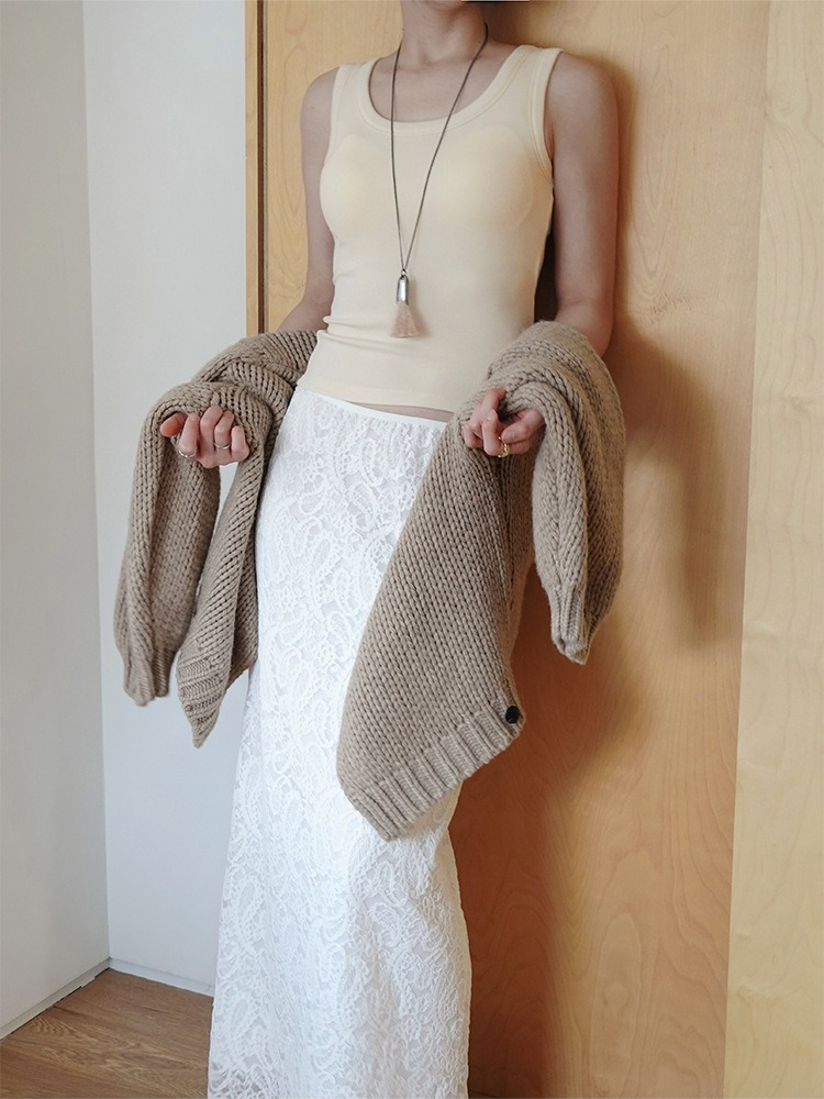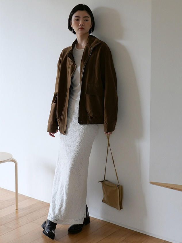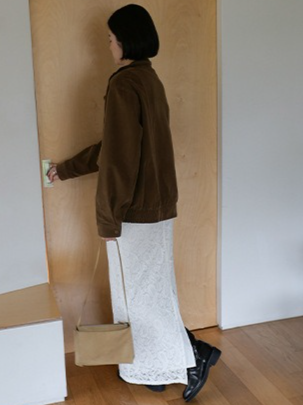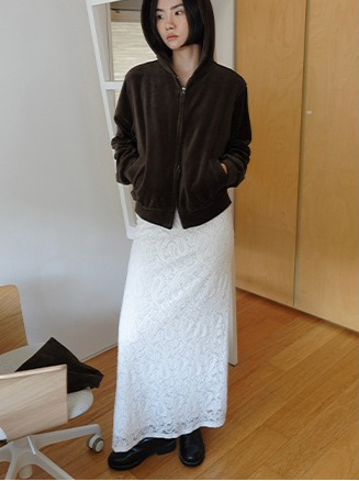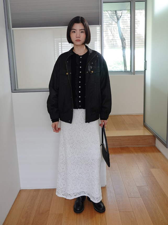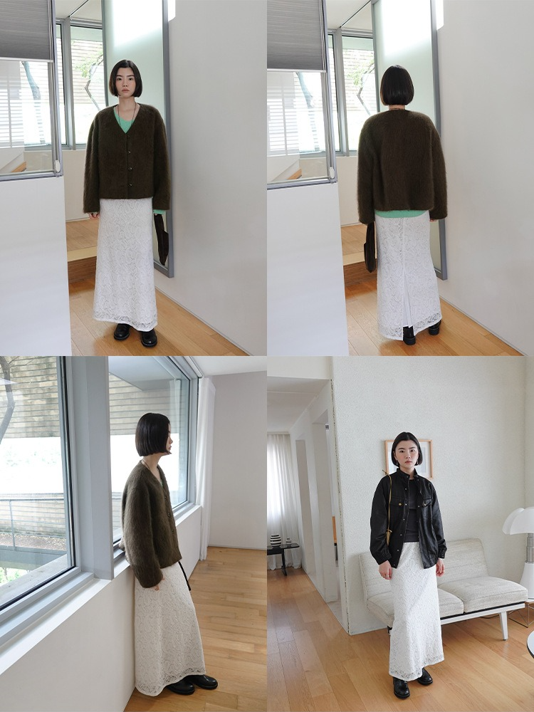 繊細なレースを施したレースロングスカート。ヴィンテージライクなレース地を使用し、上品なエッジの効いたデザインがポイントです。シンプルなシルエットで、バックに少し長めのスリットをプラス。ニットや、ジャケットなどシンプルなトップスと合わせるスタイリングがおすすめです。デイリー使いに、個性をプラスできる女性らしさを演出してくれる一着です。