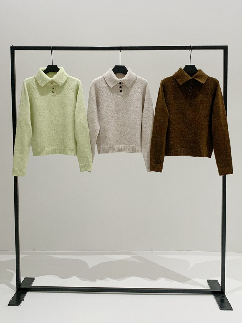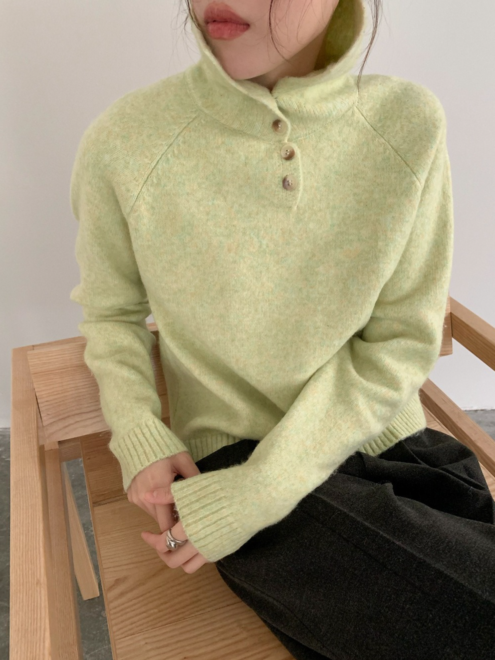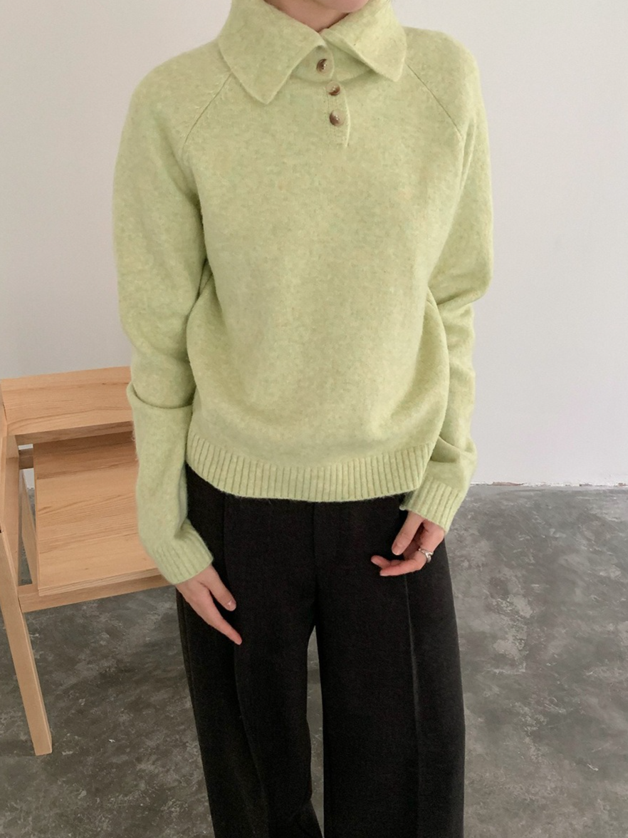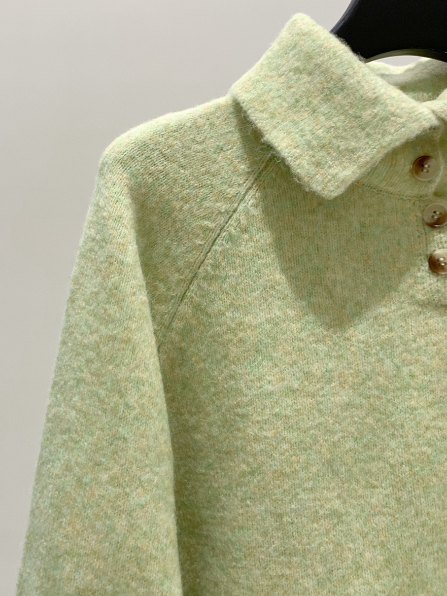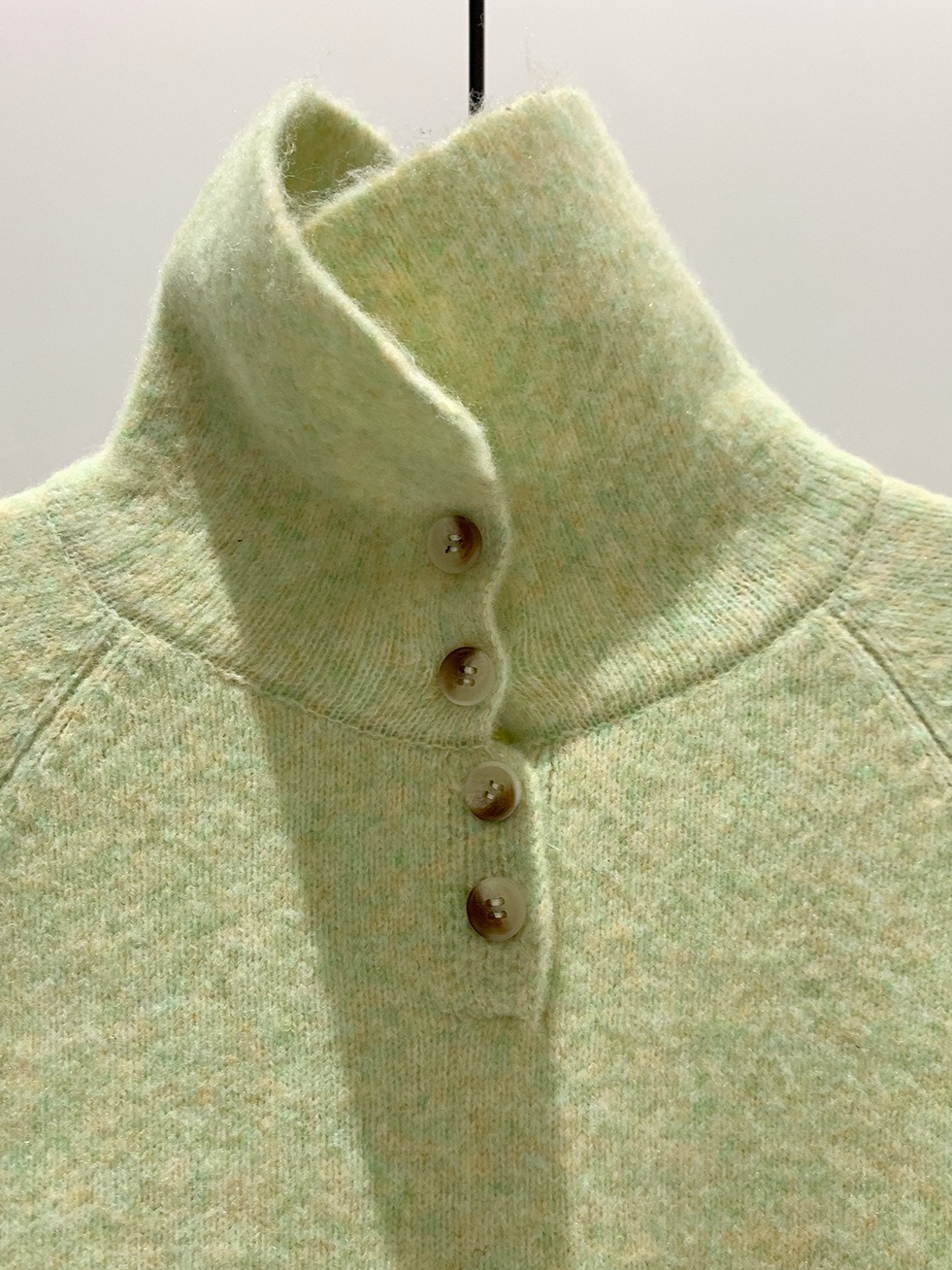 襟付きデザインとラグランスリーブが上品な抜け感を生み出すスタンドカラーラグランニット。ウール混の糸で温かさと、柔らかい編地で肌さわりも良いです。コンパクトな丈感がバランス良く、ワイドパンツやスカートとも相性抜群。ボタンを開けて抜け感をプラスしたり、襟を立ててモードに見せたり、着こなしの幅が広がる一枚あると様々なスタイリングを楽しめる一着です。