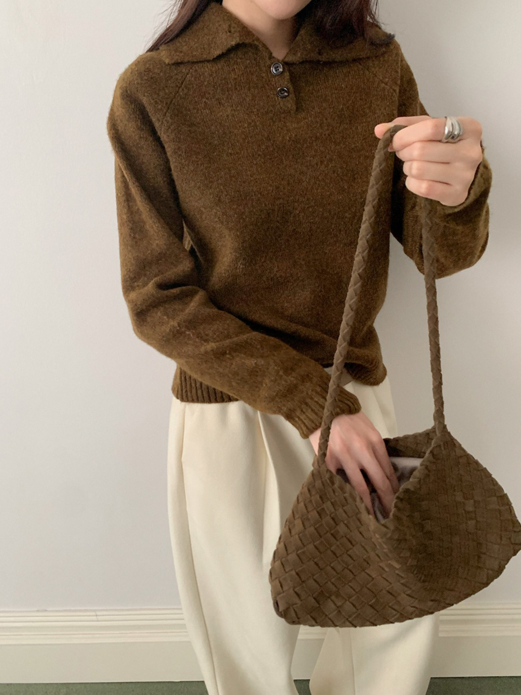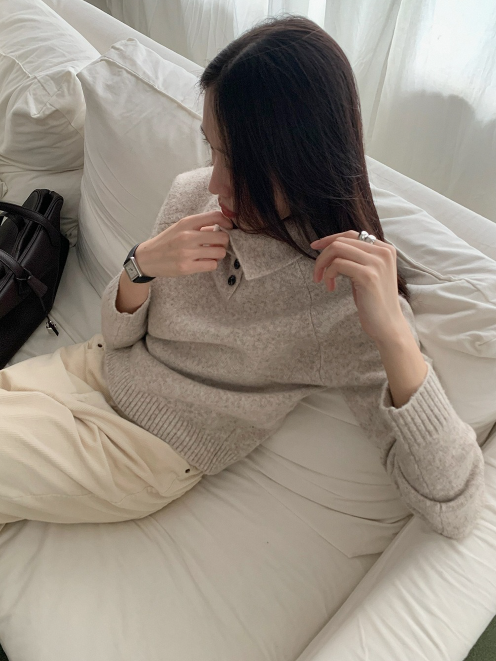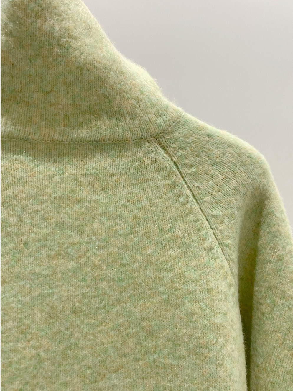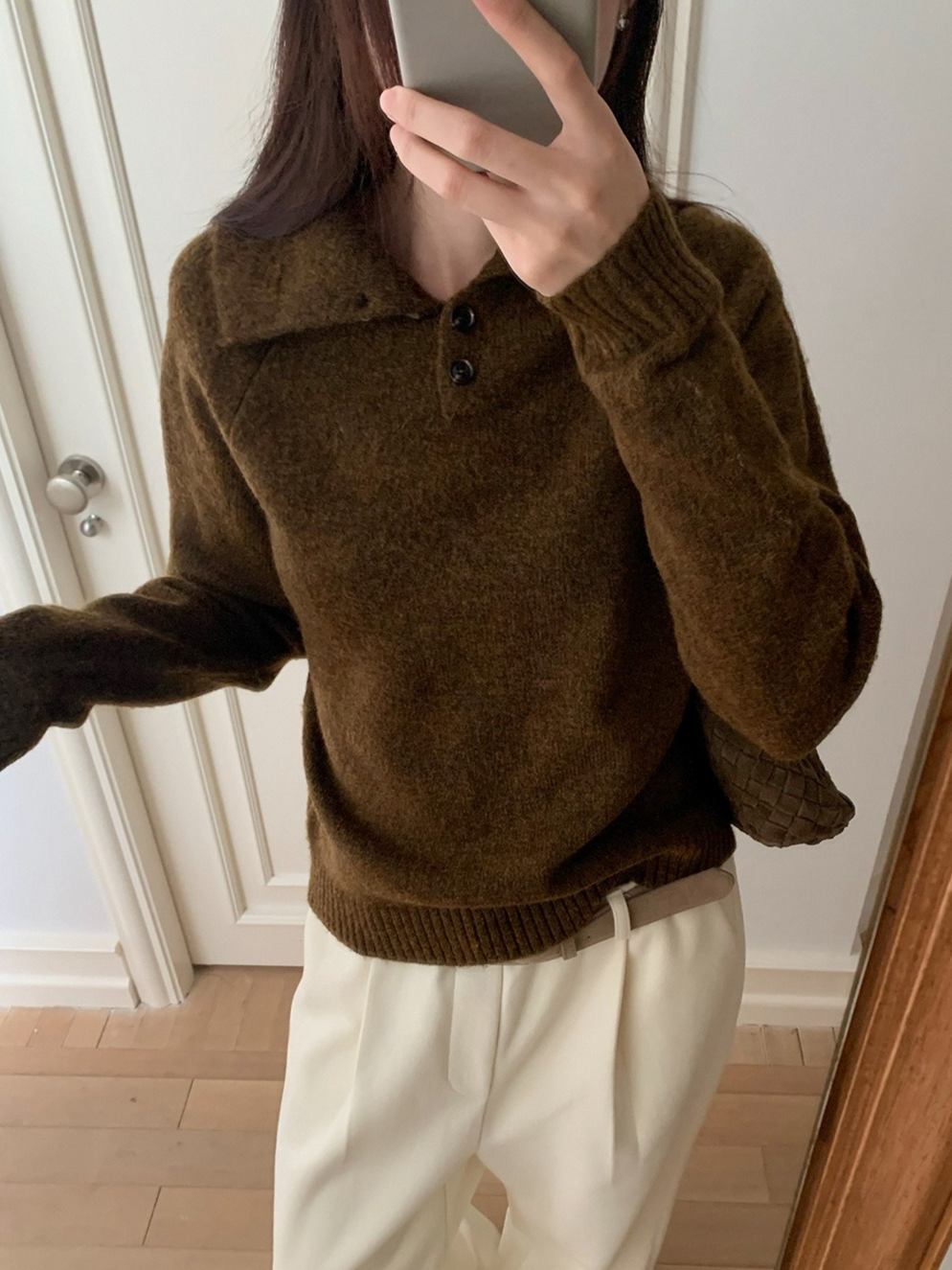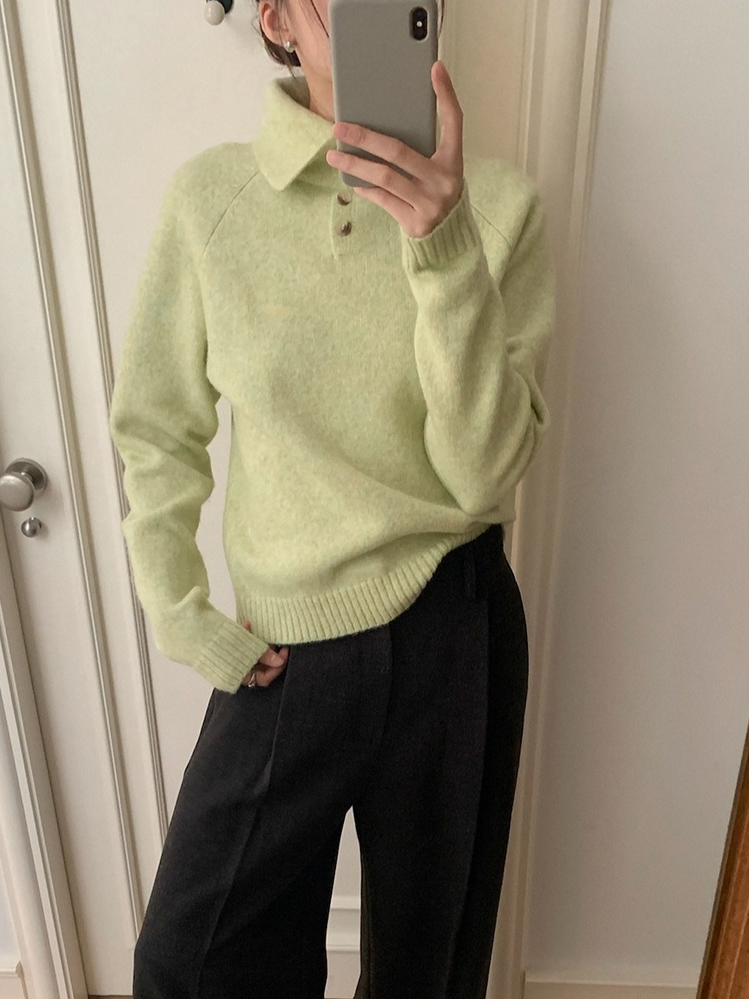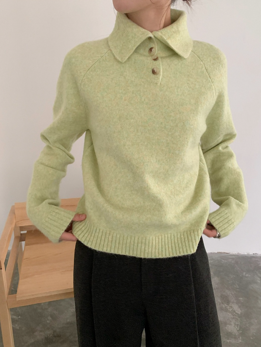 襟付きデザインとラグランスリーブが上品な抜け感を生み出すスタンドカラーラグランニット。ウール混の糸で温かさと、柔らかい編地で肌さわりも良いです。コンパクトな丈感がバランス良く、ワイドパンツやスカートとも相性抜群。ボタンを開けて抜け感をプラスしたり、襟を立ててモードに見せたり、着こなしの幅が広がる一枚あると様々なスタイリングを楽しめる一着です。