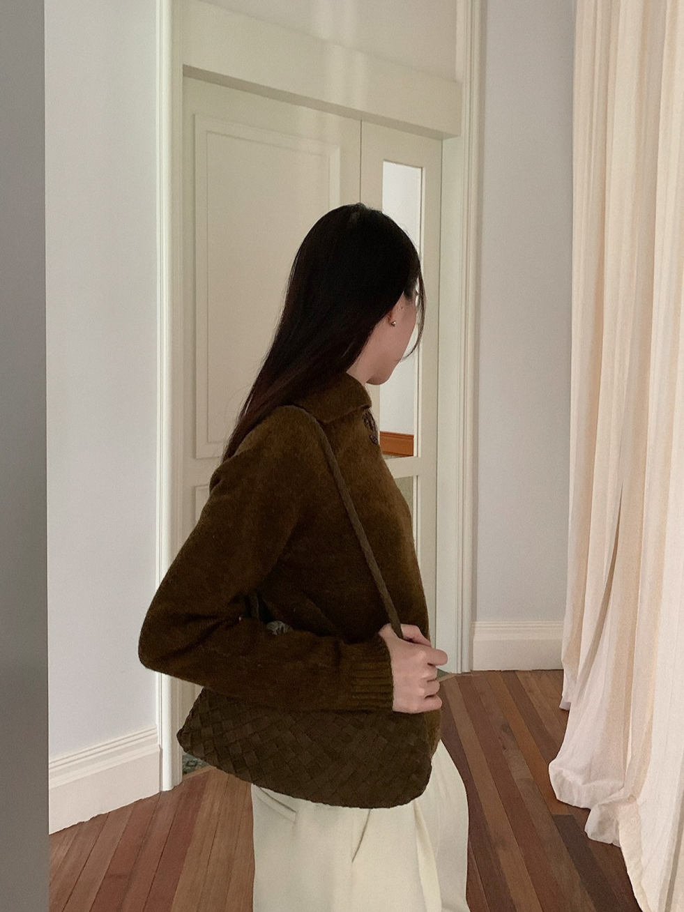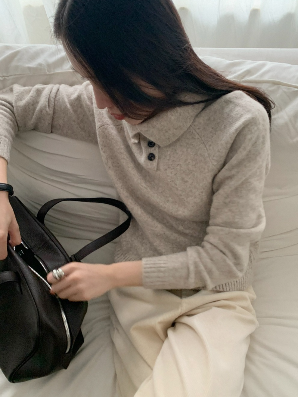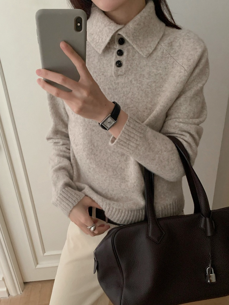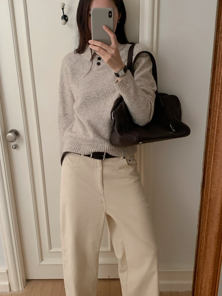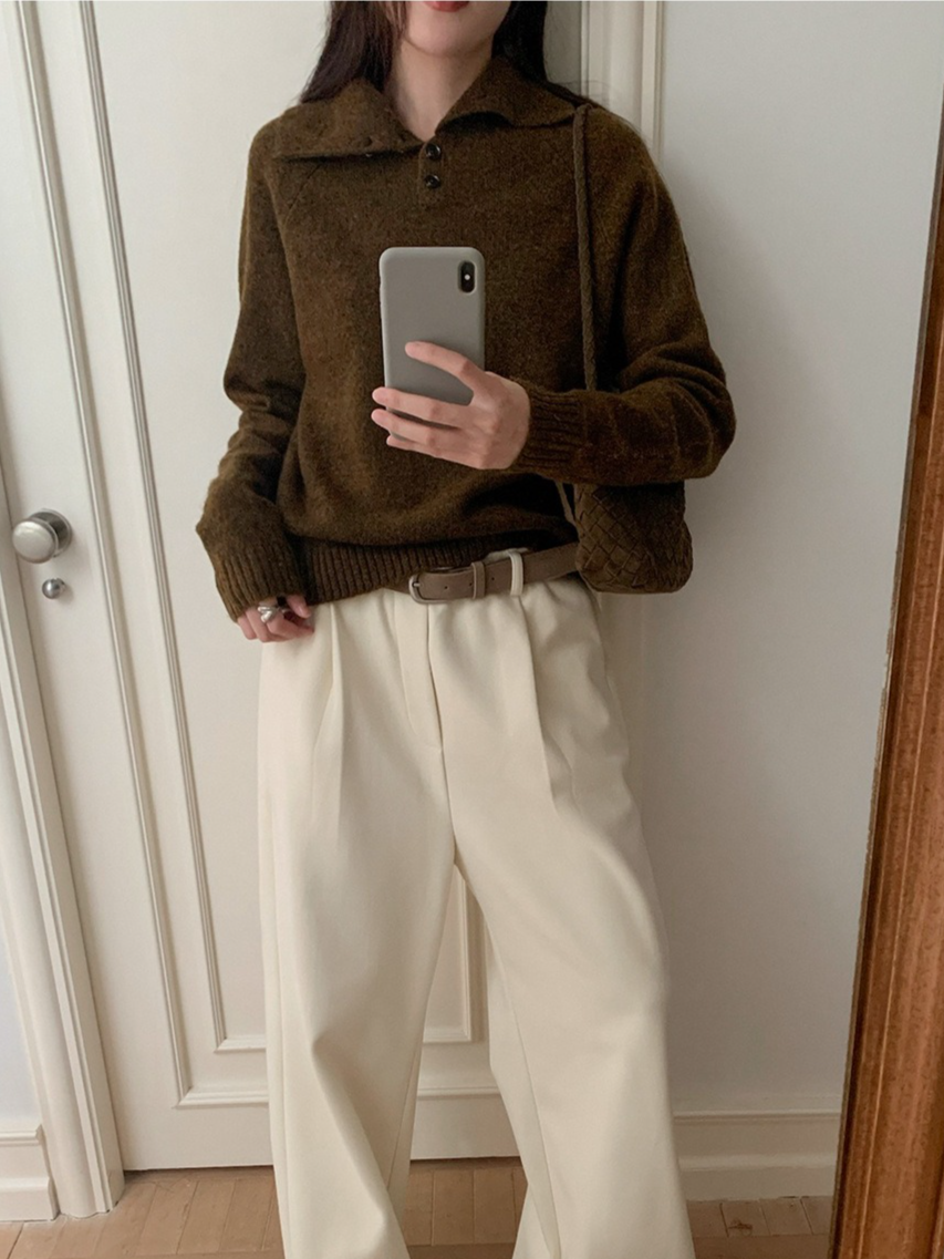 襟付きデザインとラグランスリーブが上品な抜け感を生み出すスタンドカラーラグランニット。ウール混の糸で温かさと、柔らかい編地で肌さわりも良いです。コンパクトな丈感がバランス良く、ワイドパンツやスカートとも相性抜群。ボタンを開けて抜け感をプラスしたり、襟を立ててモードに見せたり、着こなしの幅が広がる一枚あると様々なスタイリングを楽しめる一着です。