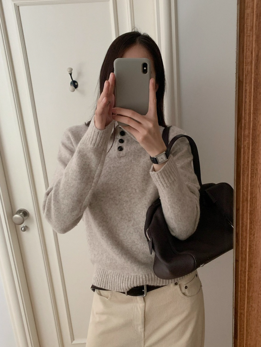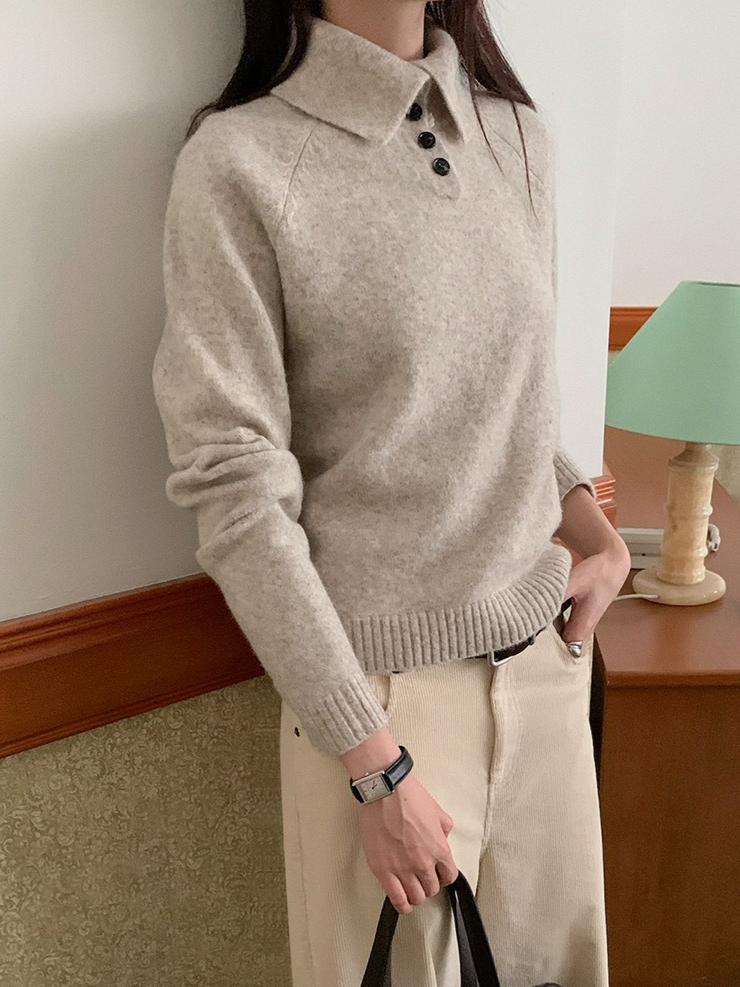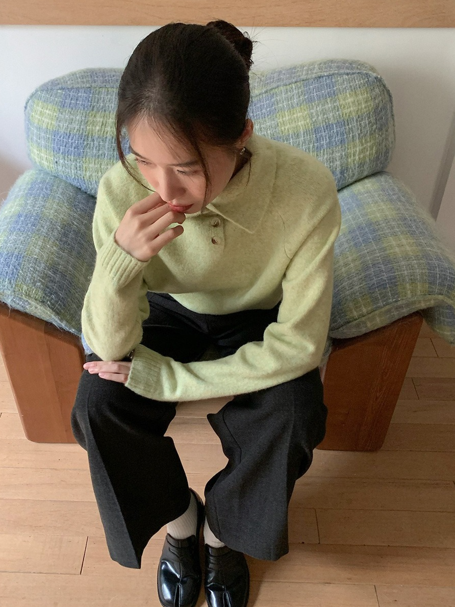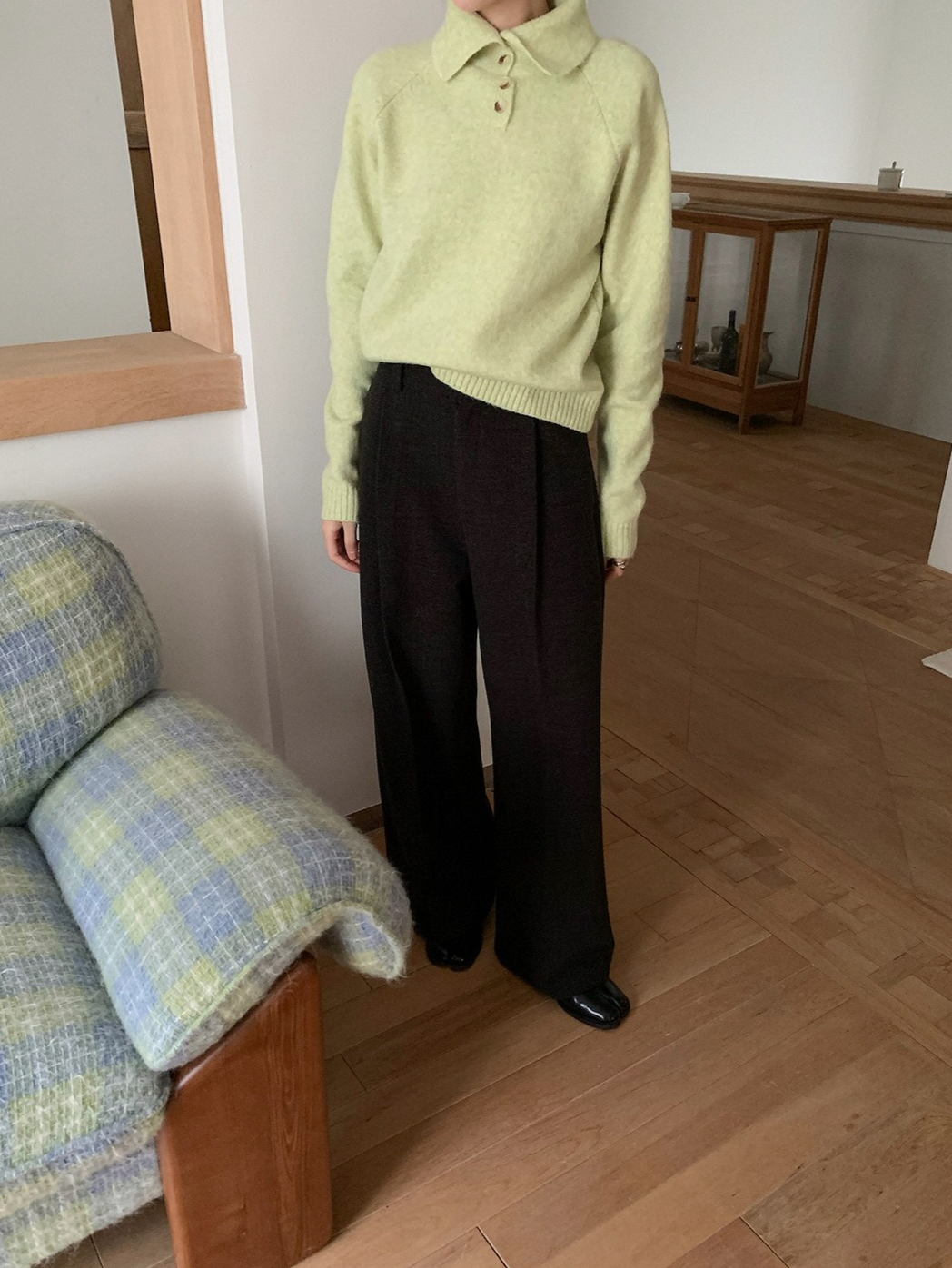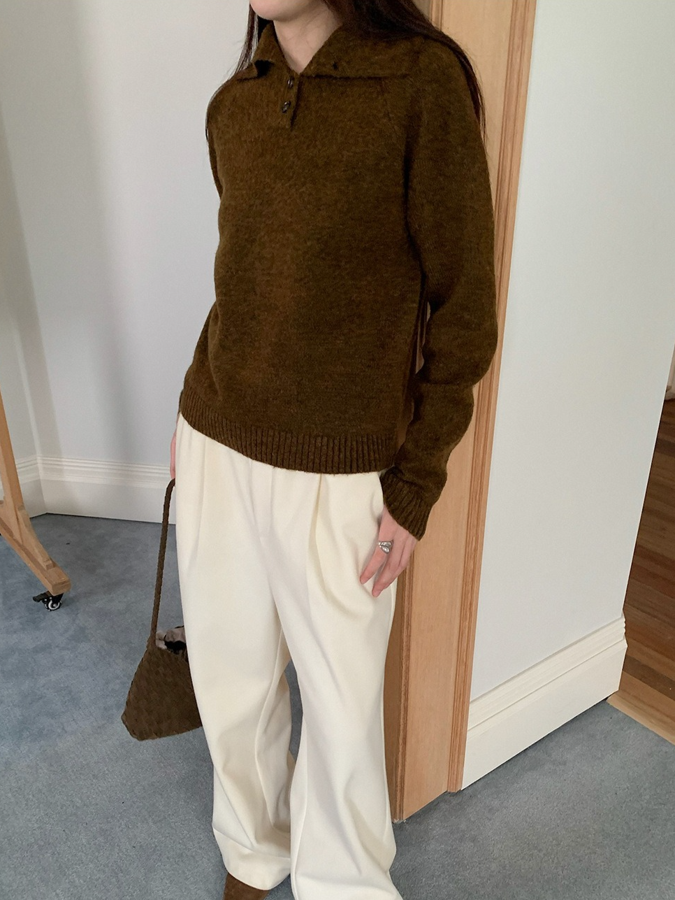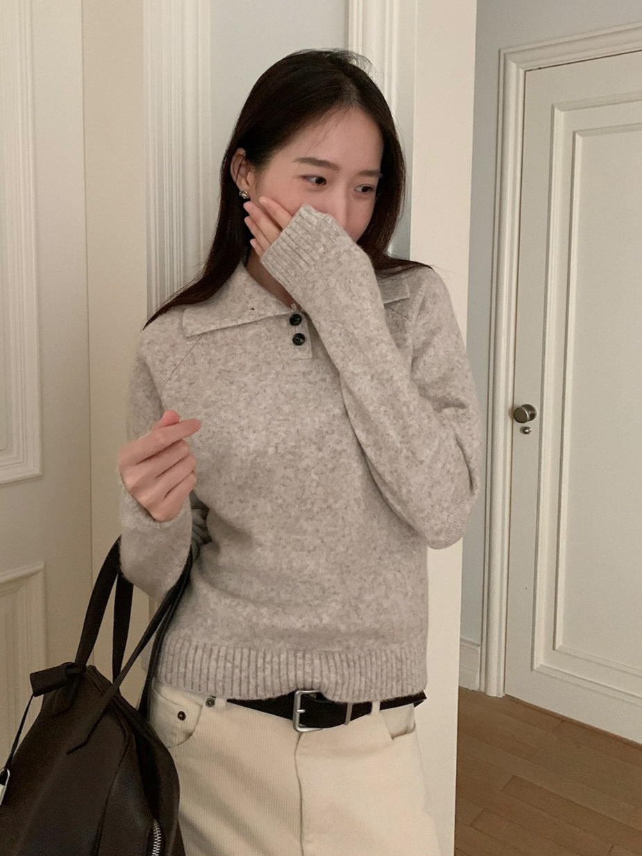 襟付きデザインとラグランスリーブが上品な抜け感を生み出すスタンドカラーラグランニット。ウール混の糸で温かさと、柔らかい編地で肌さわりも良いです。コンパクトな丈感がバランス良く、ワイドパンツやスカートとも相性抜群。ボタンを開けて抜け感をプラスしたり、襟を立ててモードに見せたり、着こなしの幅が広がる一枚あると様々なスタイリングを楽しめる一着です。