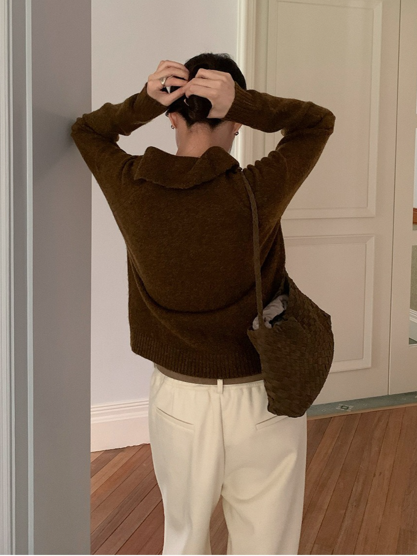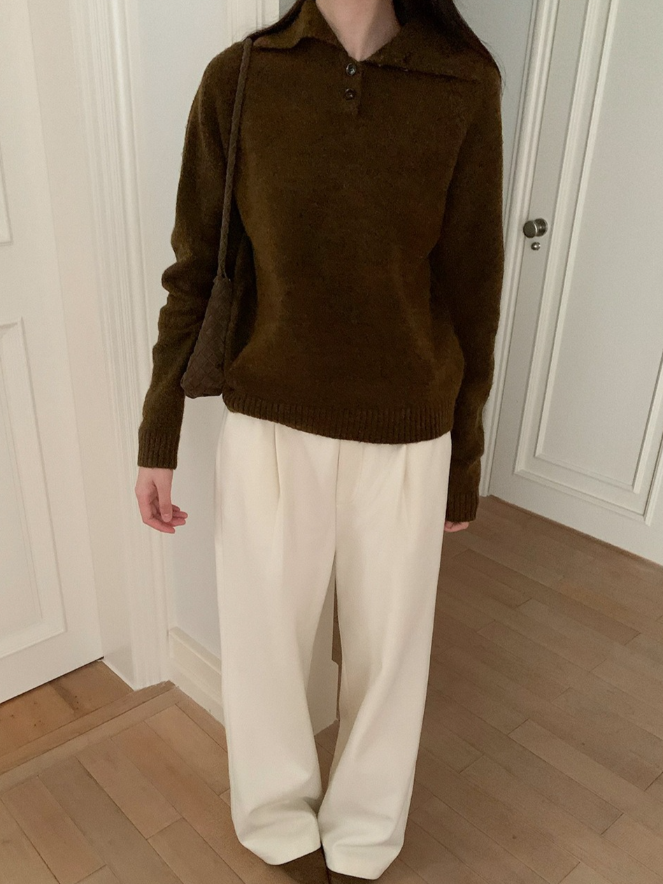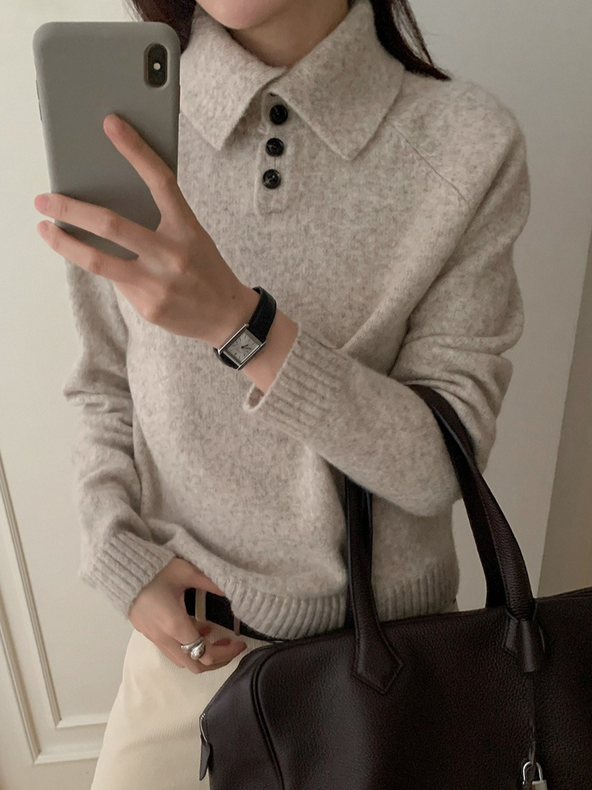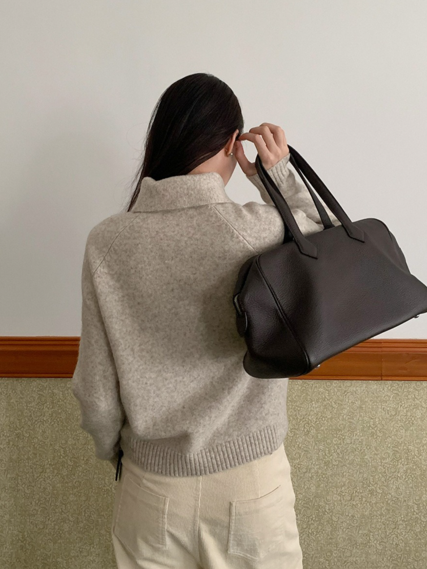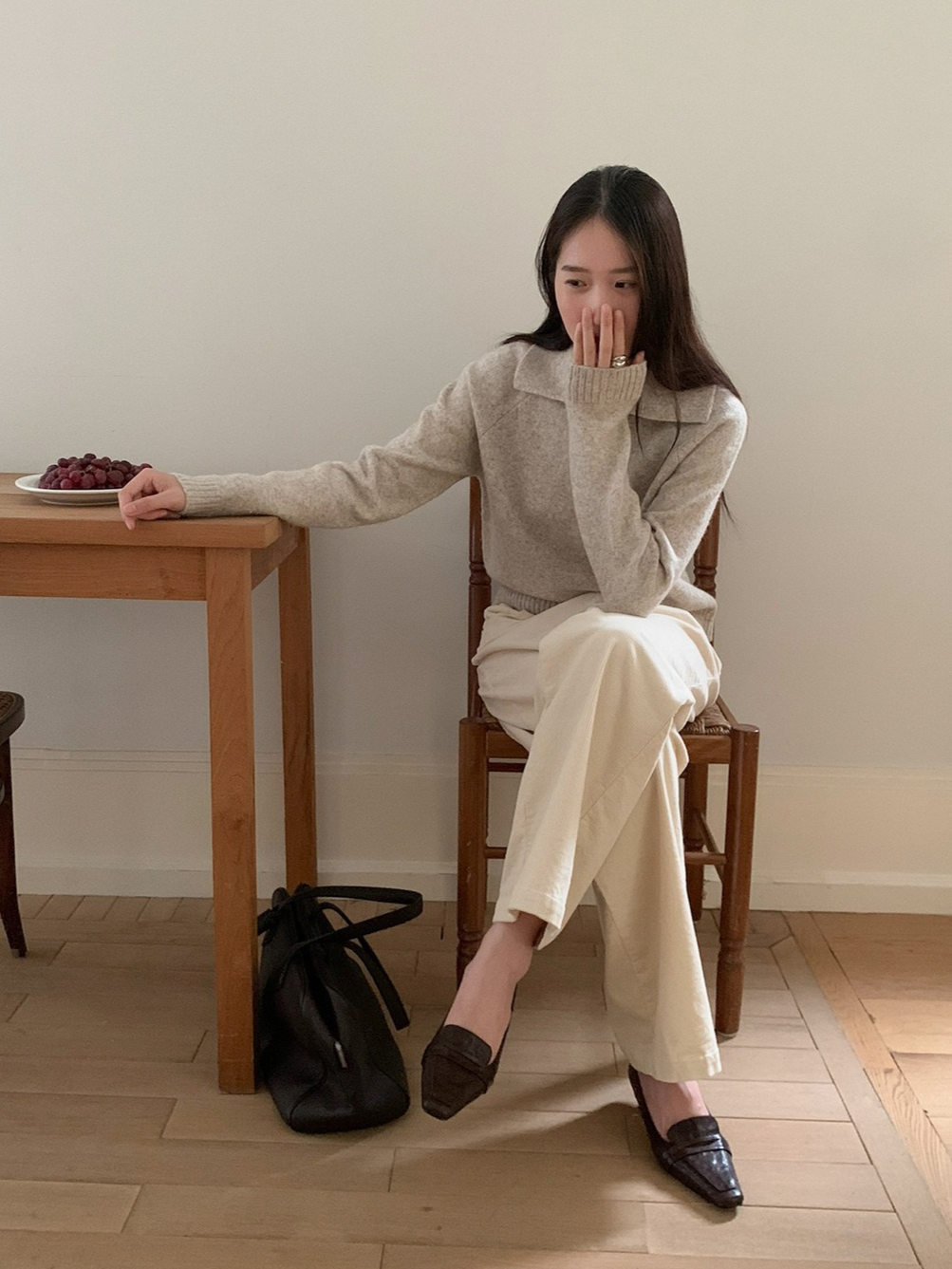 襟付きデザインとラグランスリーブが上品な抜け感を生み出すスタンドカラーラグランニット。ウール混の糸で温かさと、柔らかい編地で肌さわりも良いです。コンパクトな丈感がバランス良く、ワイドパンツやスカートとも相性抜群。ボタンを開けて抜け感をプラスしたり、襟を立ててモードに見せたり、着こなしの幅が広がる一枚あると様々なスタイリングを楽しめる一着です。