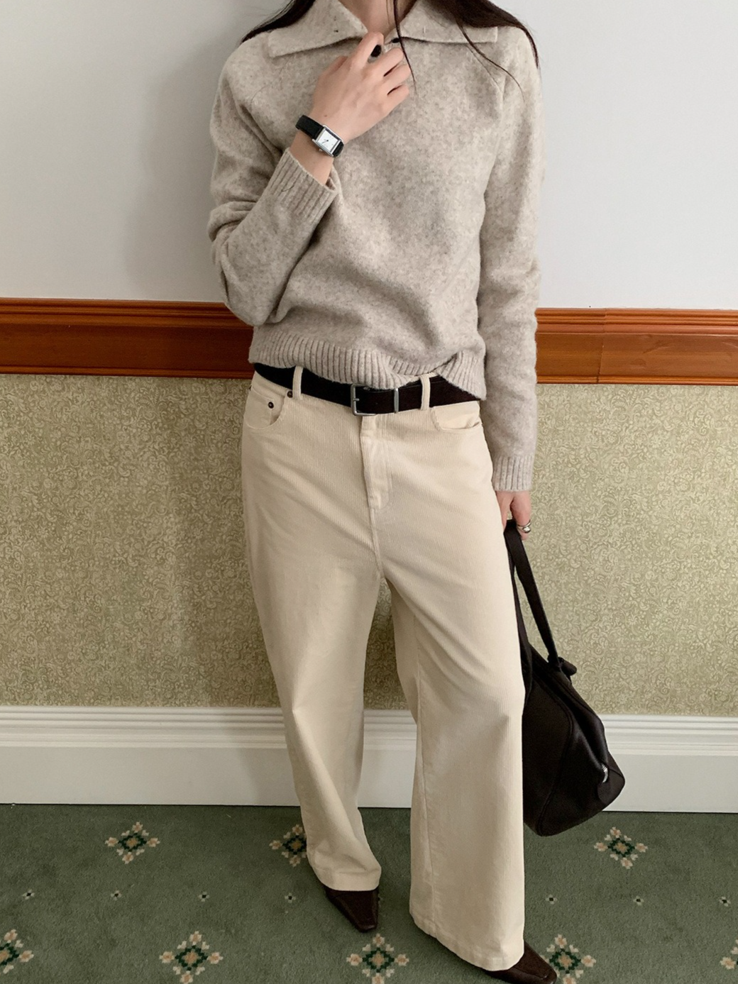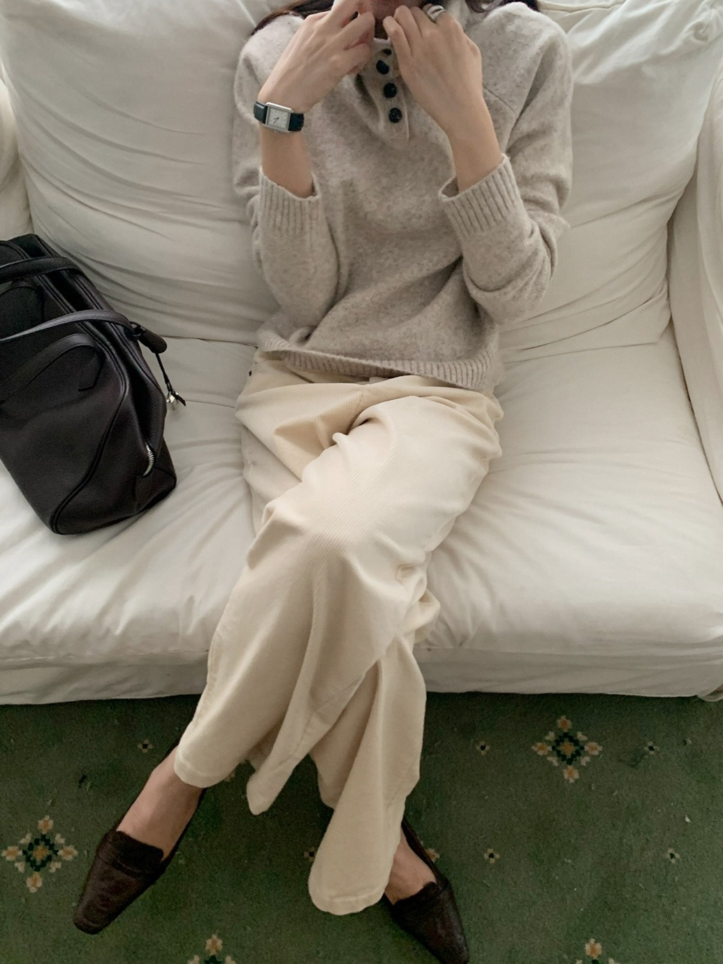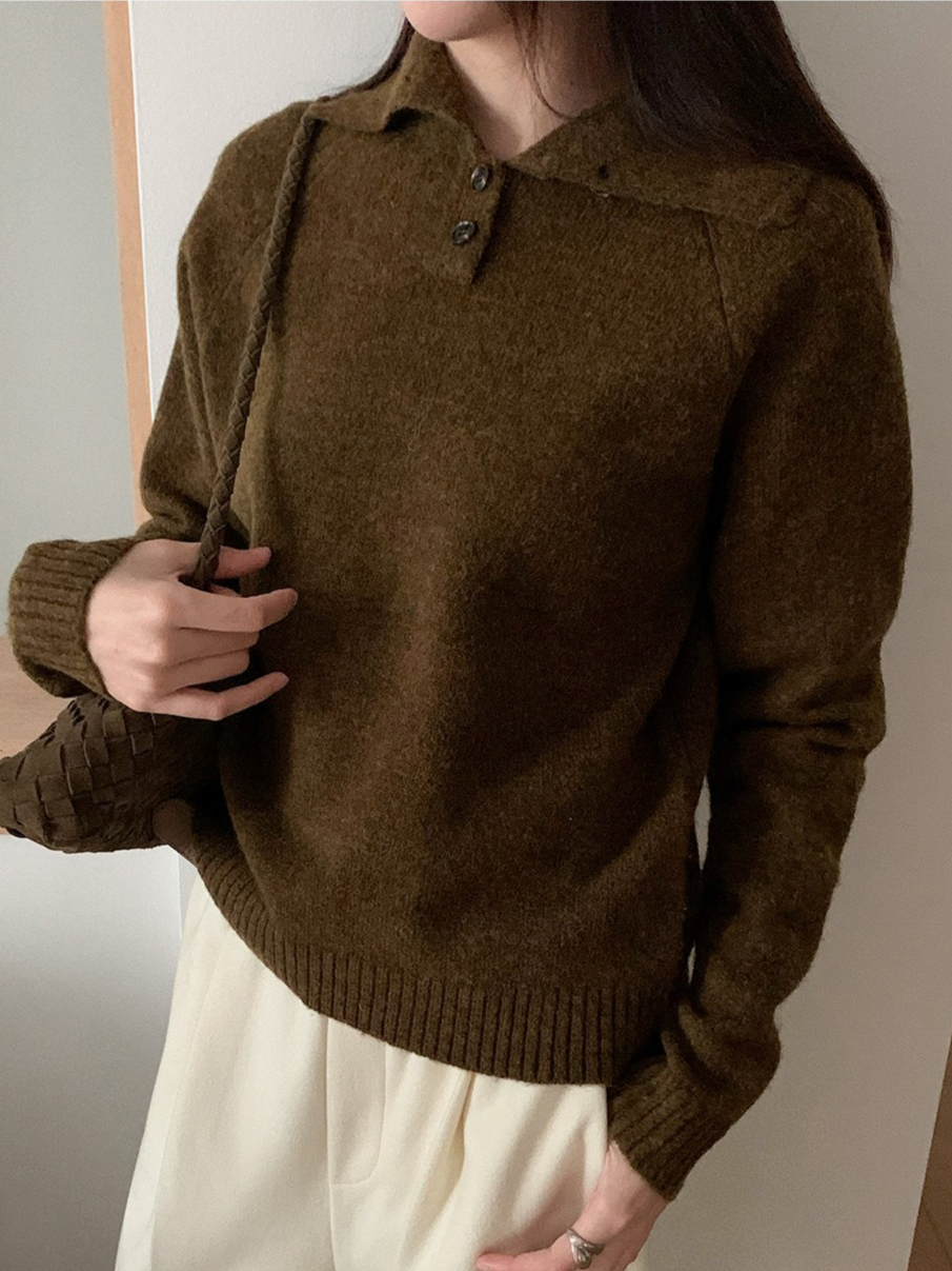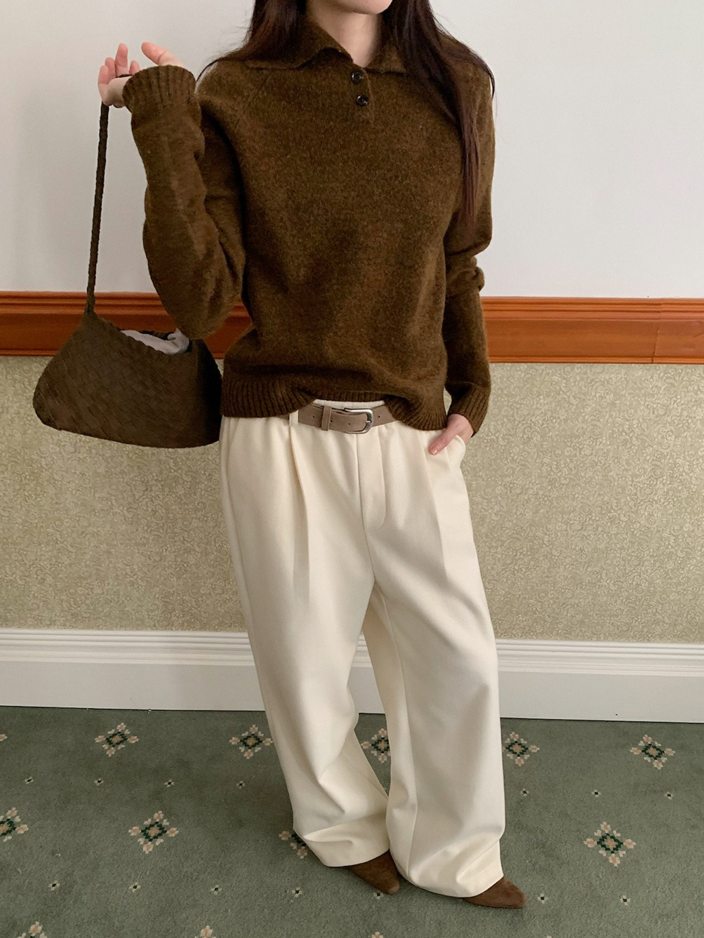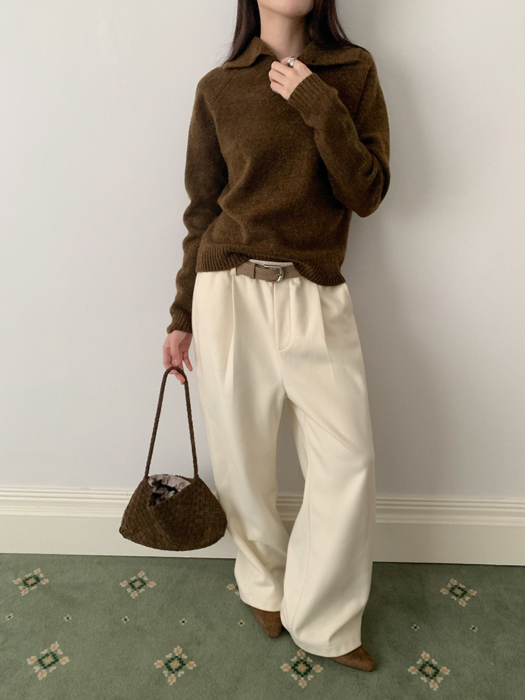 襟付きデザインとラグランスリーブが上品な抜け感を生み出すスタンドカラーラグランニット。ウール混の糸で温かさと、柔らかい編地で肌さわりも良いです。コンパクトな丈感がバランス良く、ワイドパンツやスカートとも相性抜群。ボタンを開けて抜け感をプラスしたり、襟を立ててモードに見せたり、着こなしの幅が広がる一枚あると様々なスタイリングを楽しめる一着です。