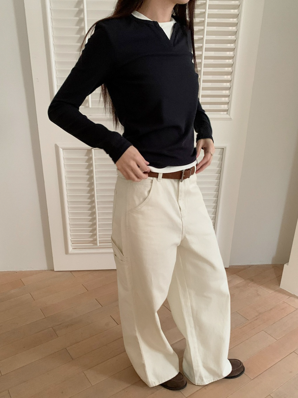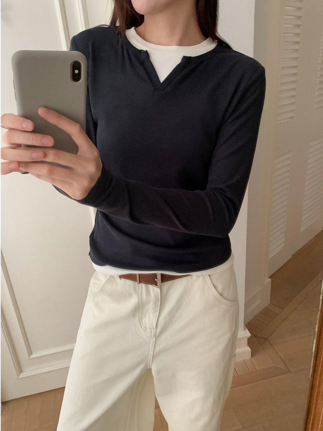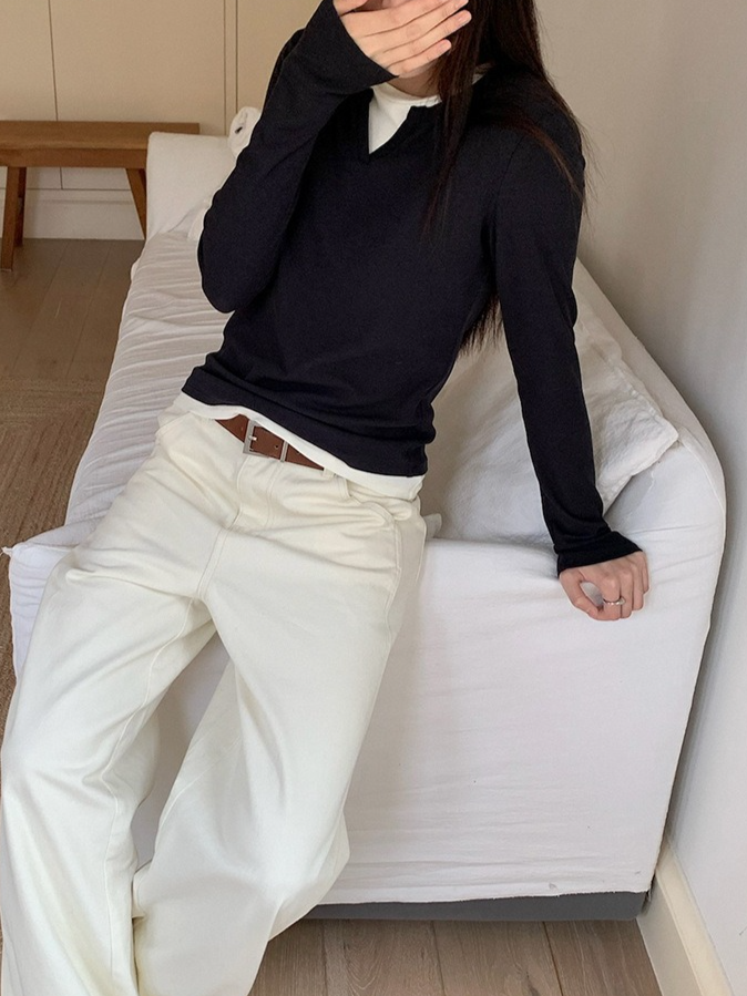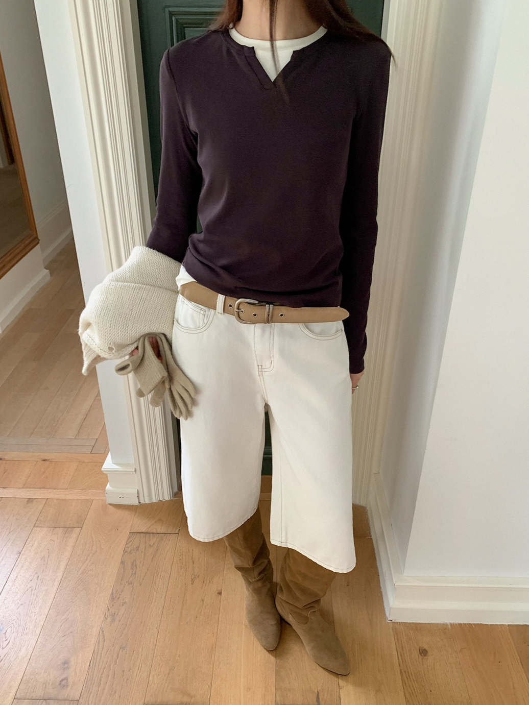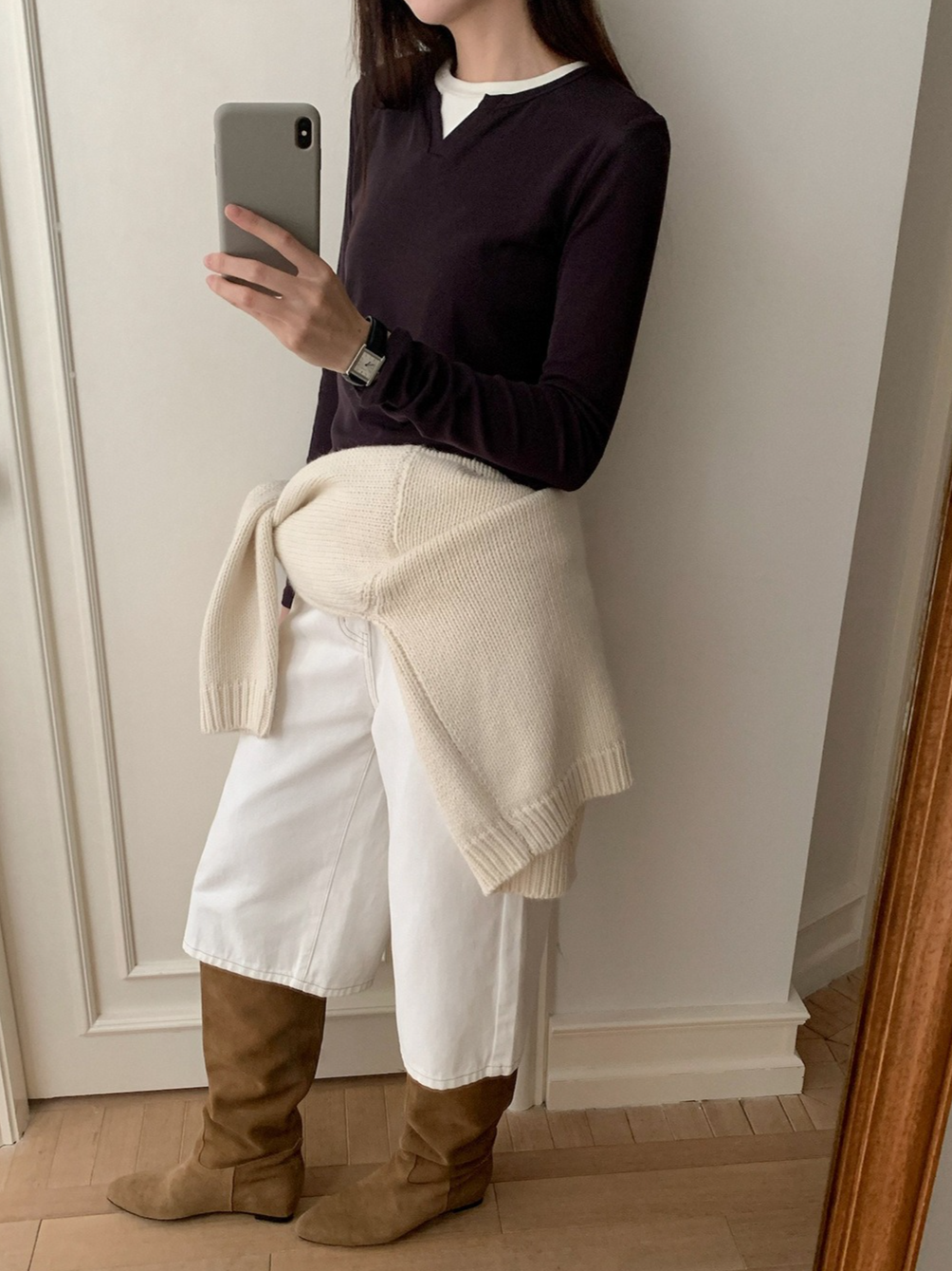 ネックラインから覗くインナー風のデザインが、さりげない抜け感を演出するフェイクツーピーススキッパーTシャツ。ソフトなリブ素材が身体にやわらかくフィットし、心地よい伸縮性でデイリーに着やすい一枚です。レイヤードしているような仕様が、シンプルな中にも抜け感をプラス。デニムやスラックスなど、合わせるボトムで様々なスタイリングを楽しめます。シーズンレスで活躍する、ミニマルで上品な大人のベーシックアイテムです。