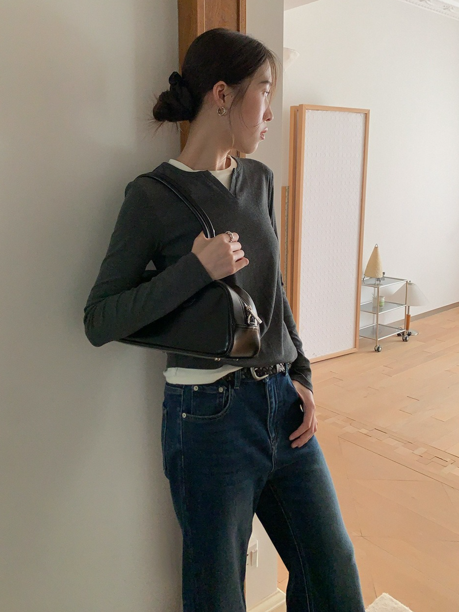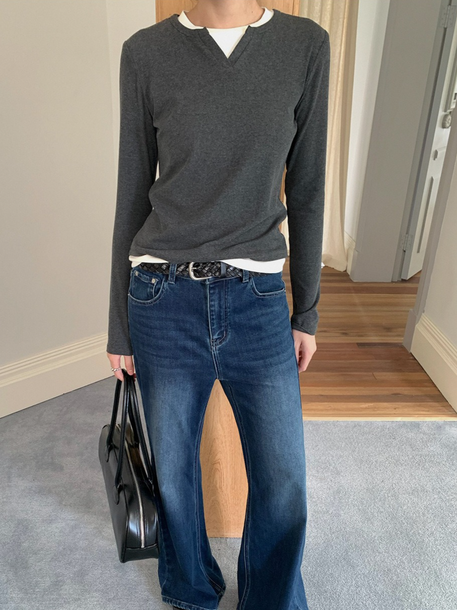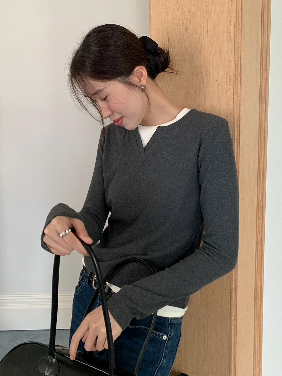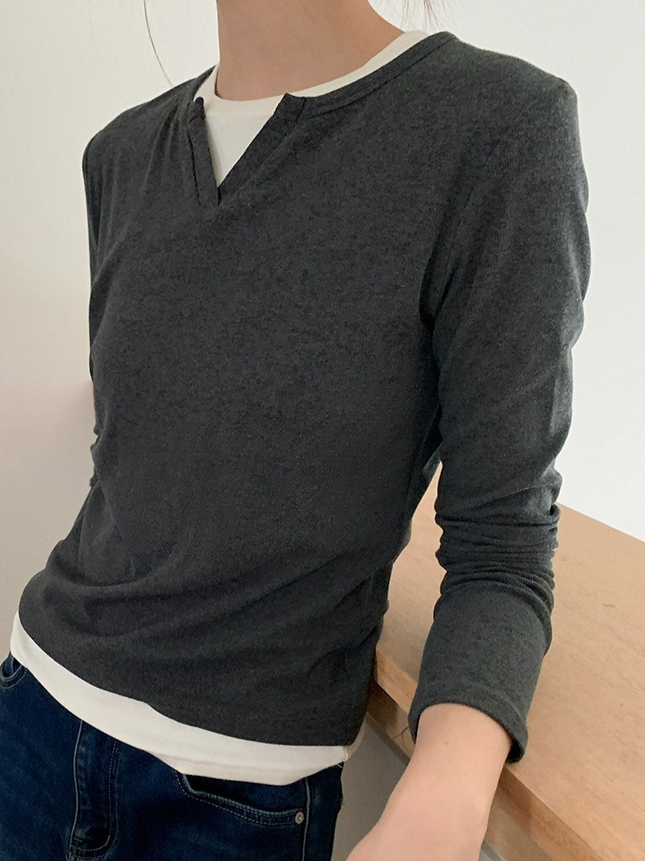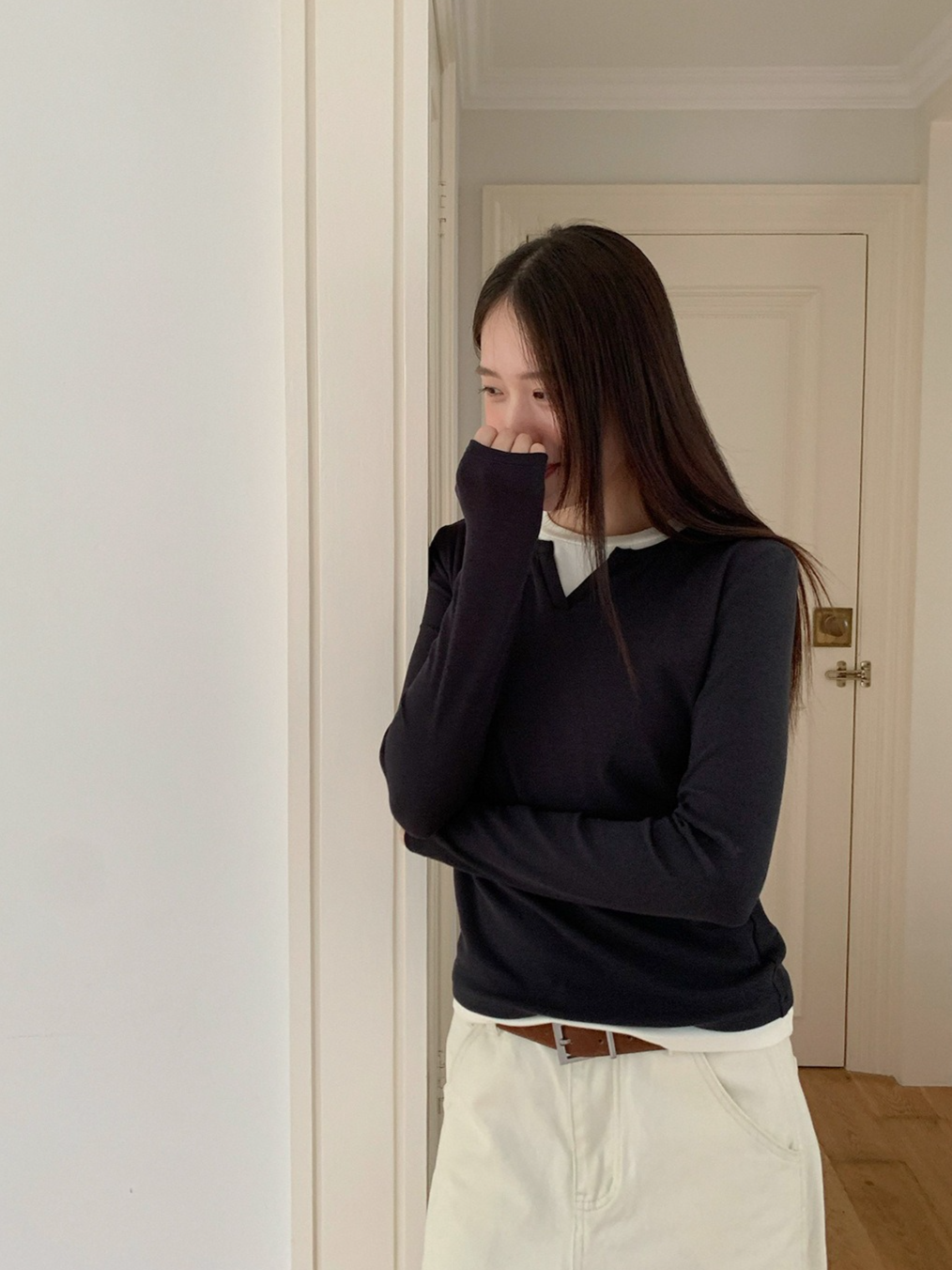 ネックラインから覗くインナー風のデザインが、さりげない抜け感を演出するフェイクツーピーススキッパーTシャツ。ソフトなリブ素材が身体にやわらかくフィットし、心地よい伸縮性でデイリーに着やすい一枚です。レイヤードしているような仕様が、シンプルな中にも抜け感をプラス。デニムやスラックスなど、合わせるボトムで様々なスタイリングを楽しめます。シーズンレスで活躍する、ミニマルで上品な大人のベーシックアイテムです。
