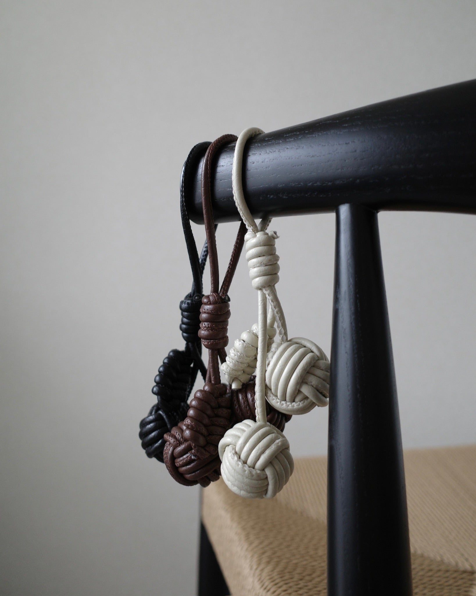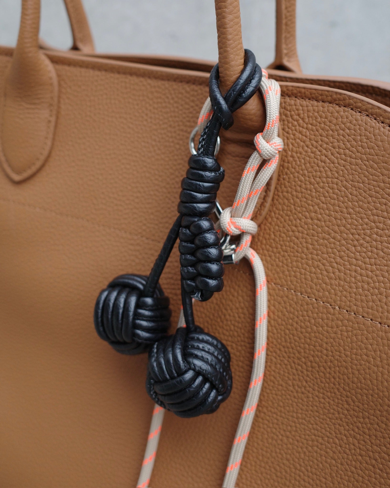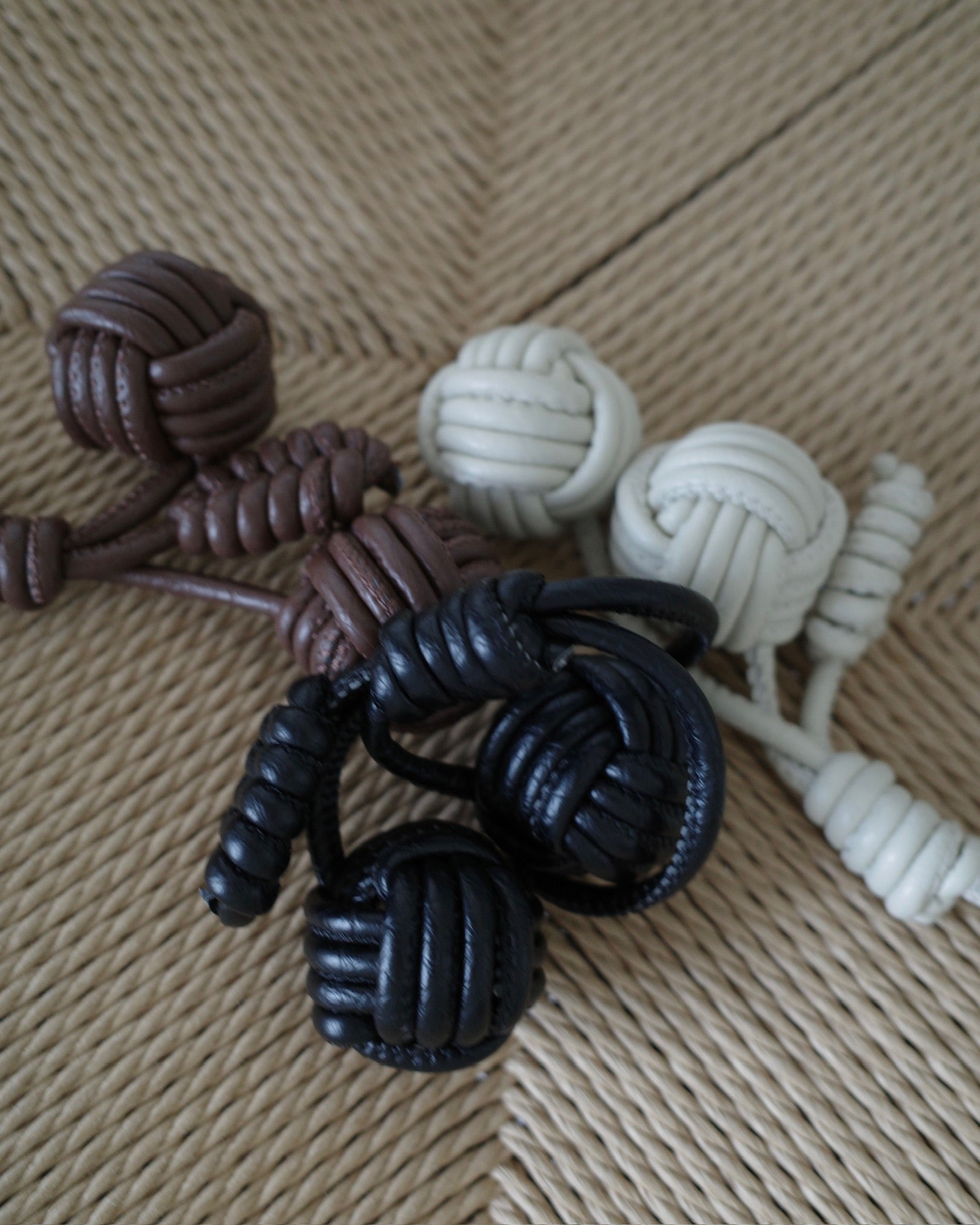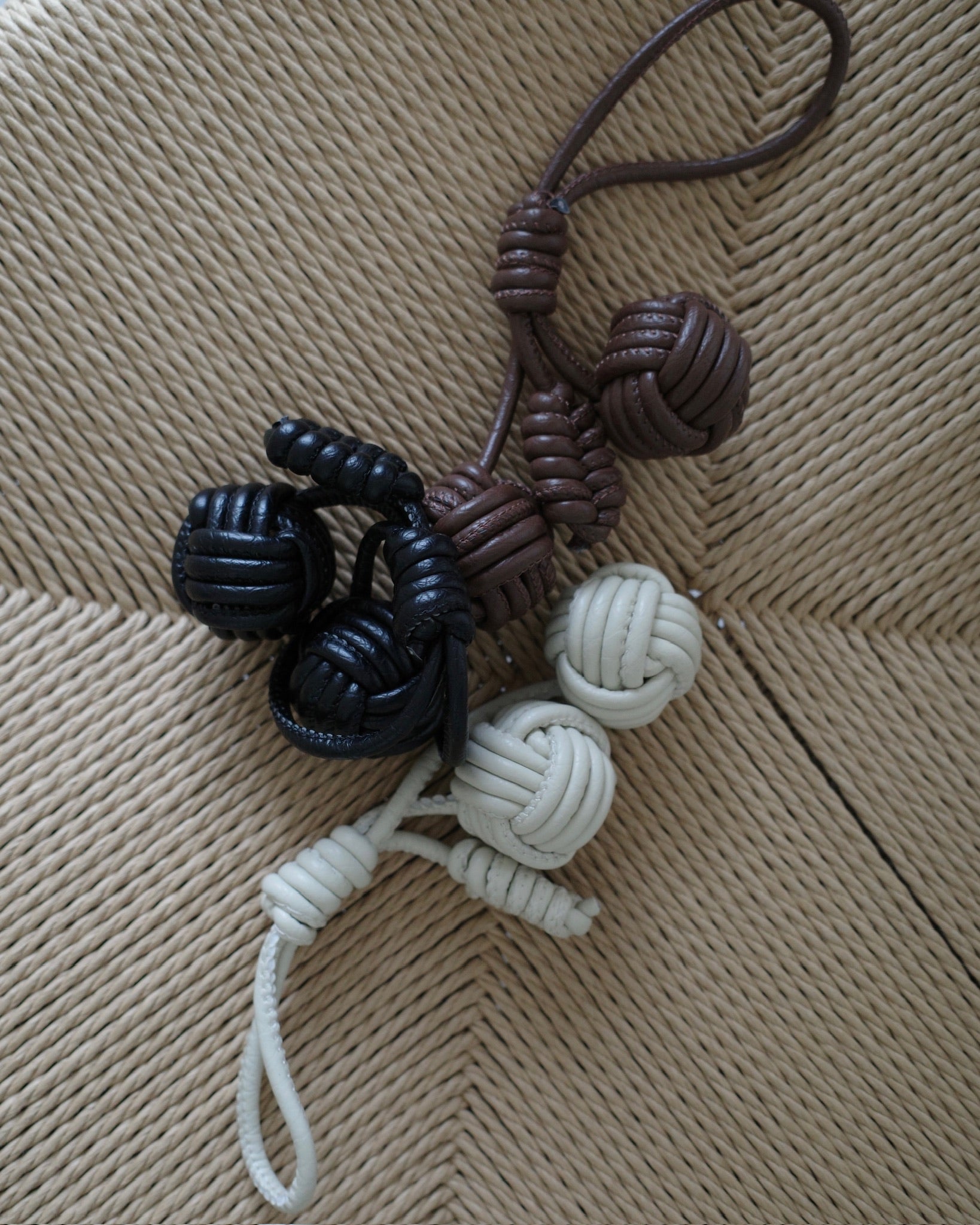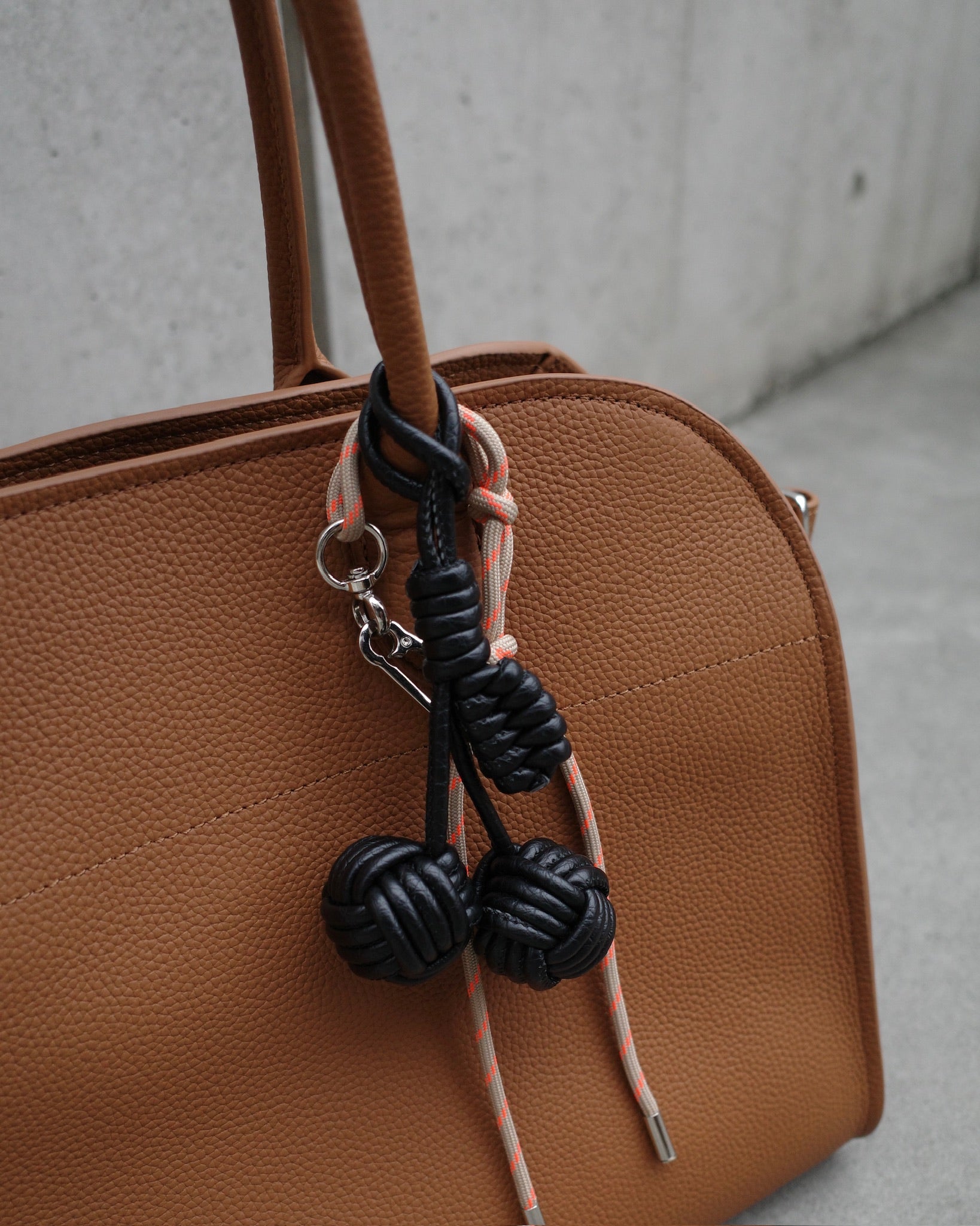 ラウンド編み込みデザインが印象的な、ツインオーブフェイクレザーチャーム。丸みのあるフォルムとレザーの風合いが、バッグや鍵にエッジをプラス。自然に馴染む落ち着いたカラー展開も魅力です。パラコードチャームなど、他のチャームと合わせてオリジナルな組み合わせを楽しんで頂くのもおすすめです。