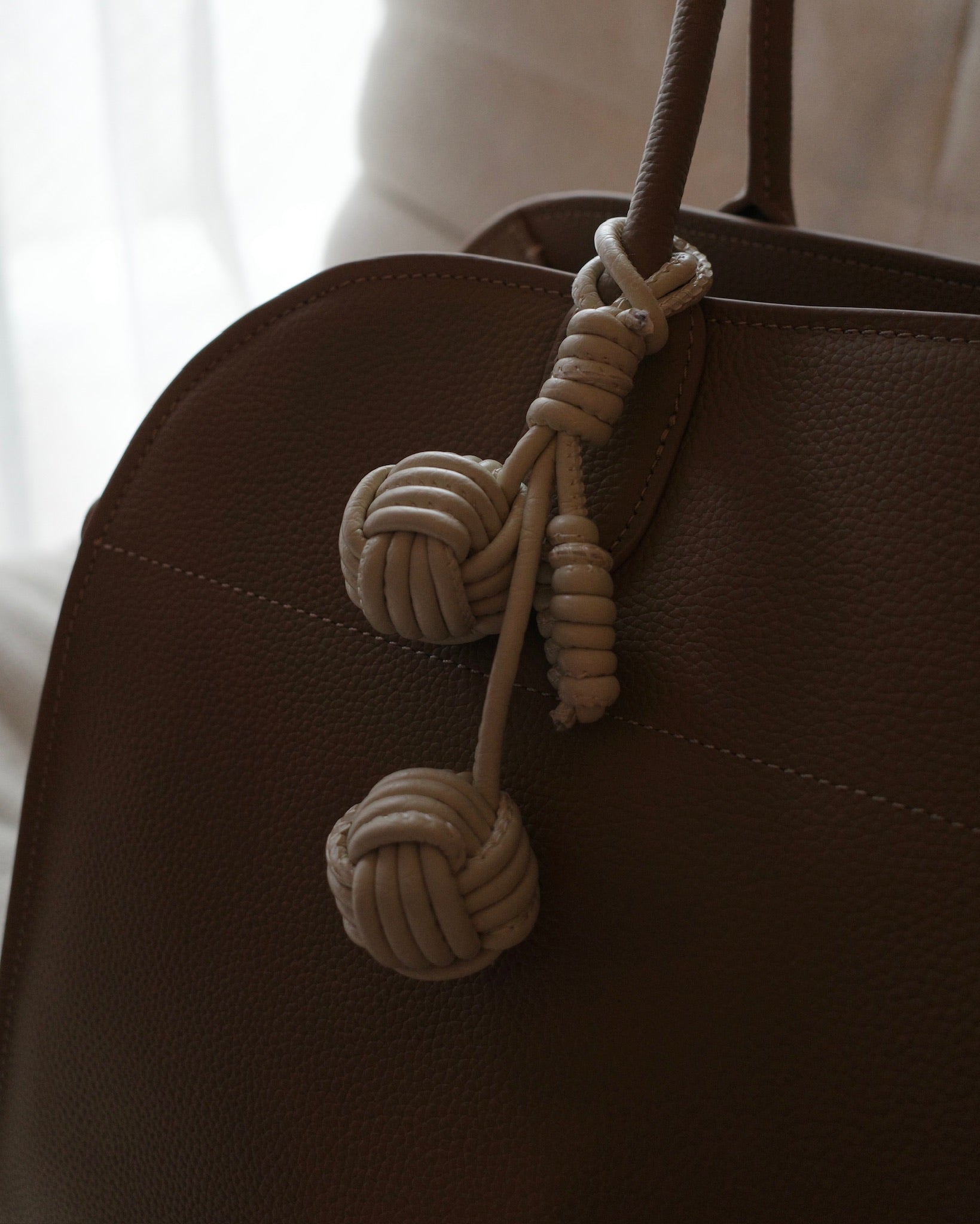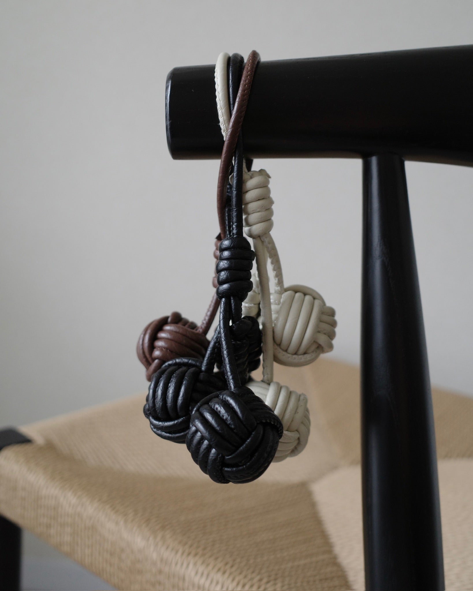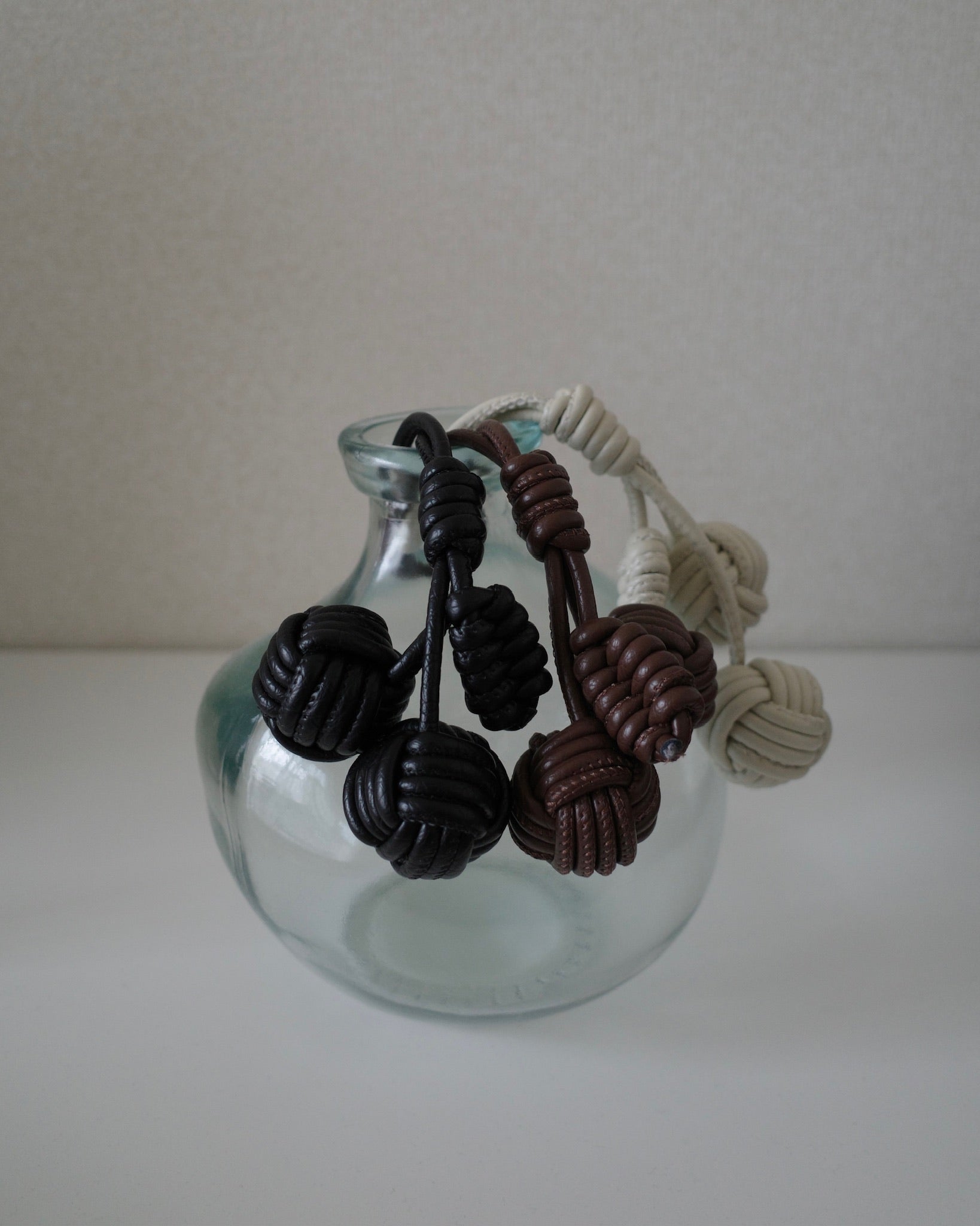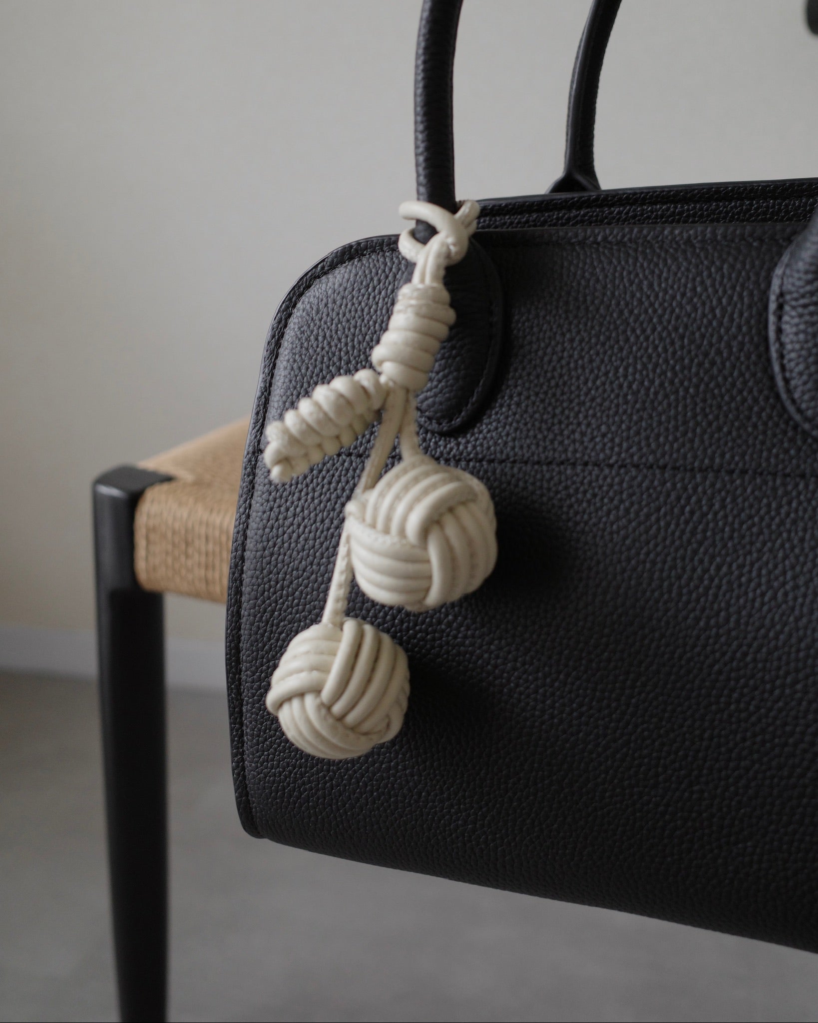 ラウンド編み込みデザインが印象的な、ツインオーブフェイクレザーチャーム。丸みのあるフォルムとレザーの風合いが、バッグや鍵にエッジをプラス。自然に馴染む落ち着いたカラー展開も魅力です。パラコードチャームなど、他のチャームと合わせてオリジナルな組み合わせを楽しんで頂くのもおすすめです。